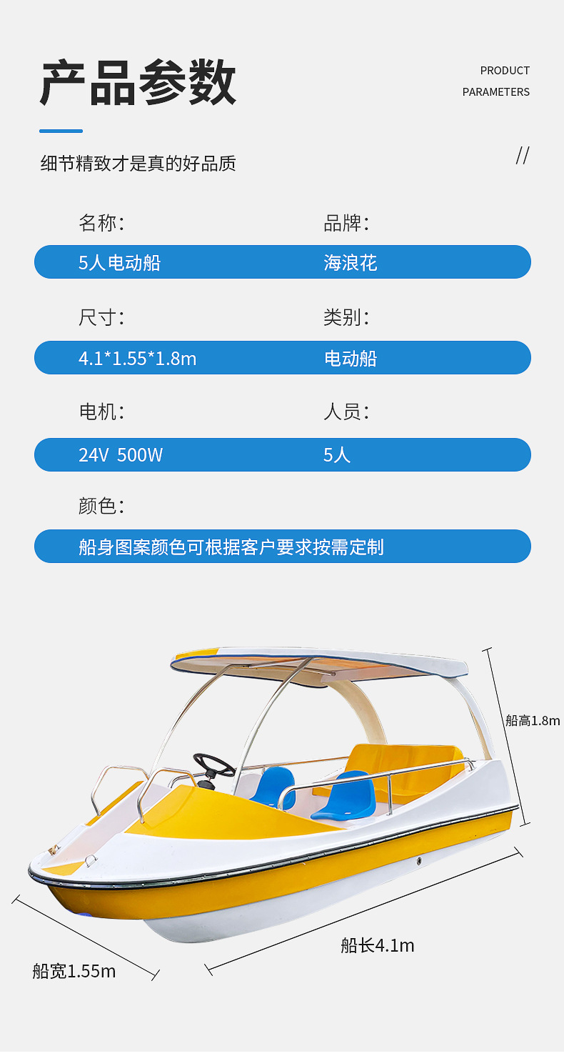 5人电动游乐船自排水公园景区休闲游览船 水上乐园电动观光船游船