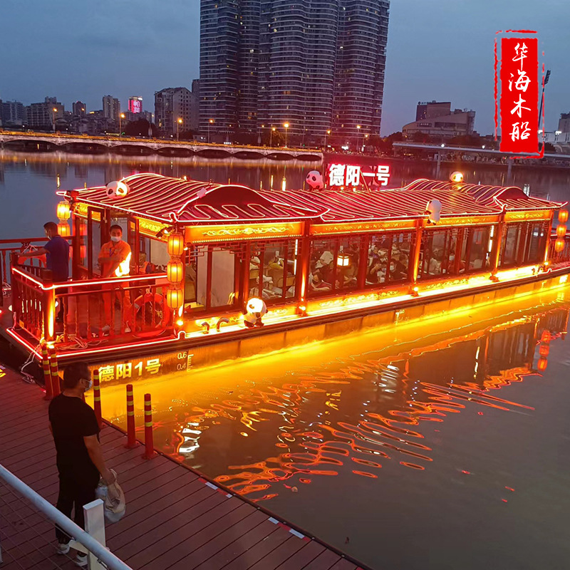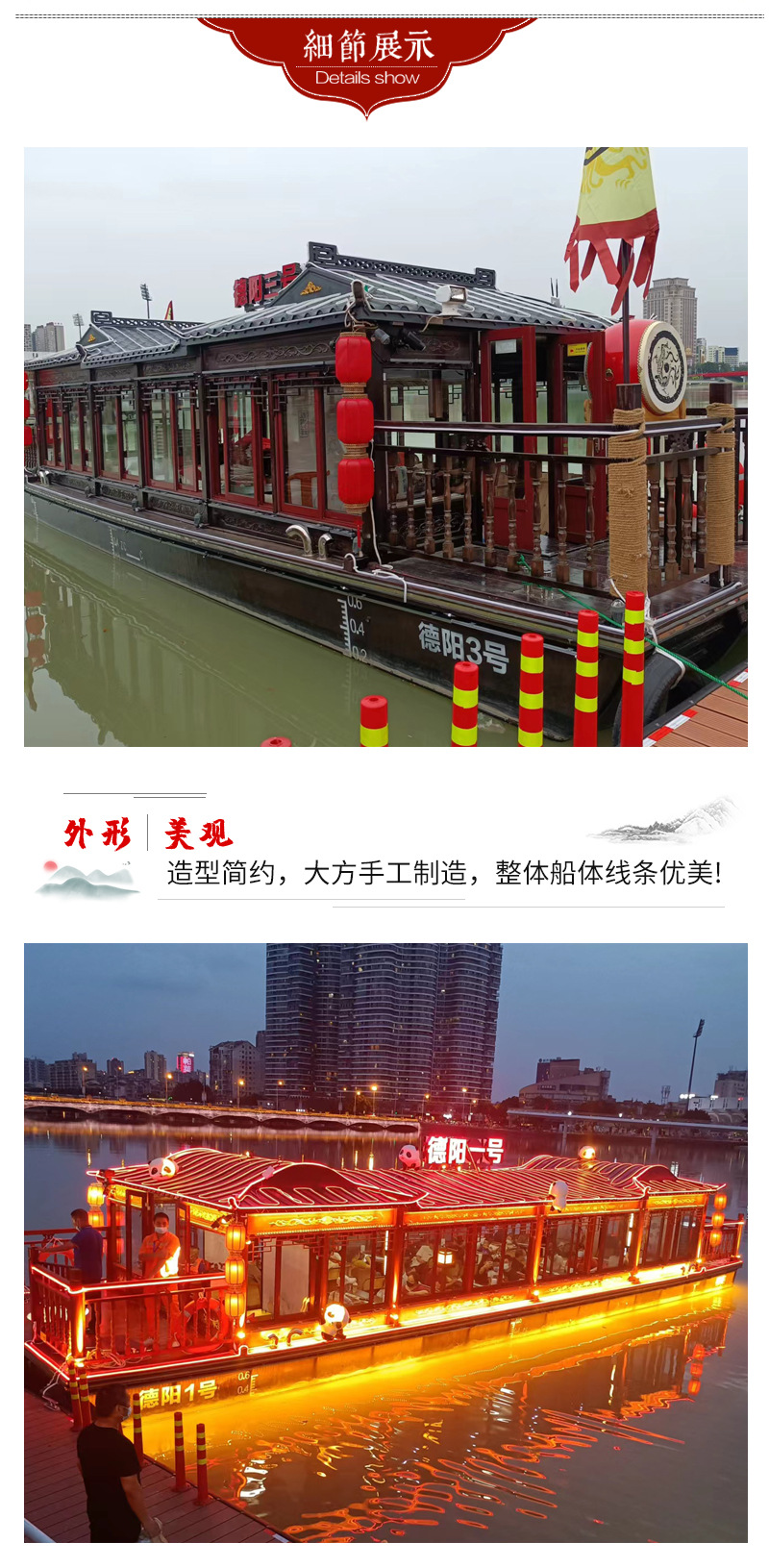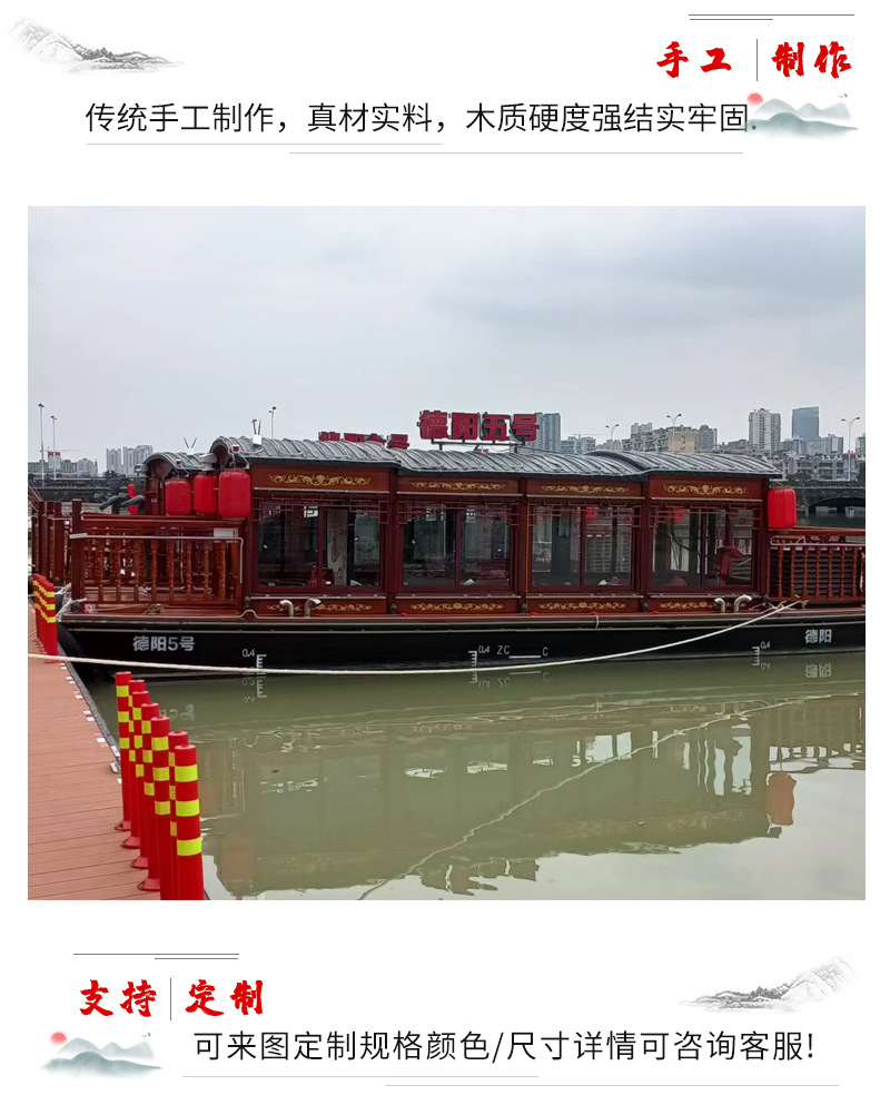 电动画舫船公园观光船中式景区游船餐饮船水上钢质游览船