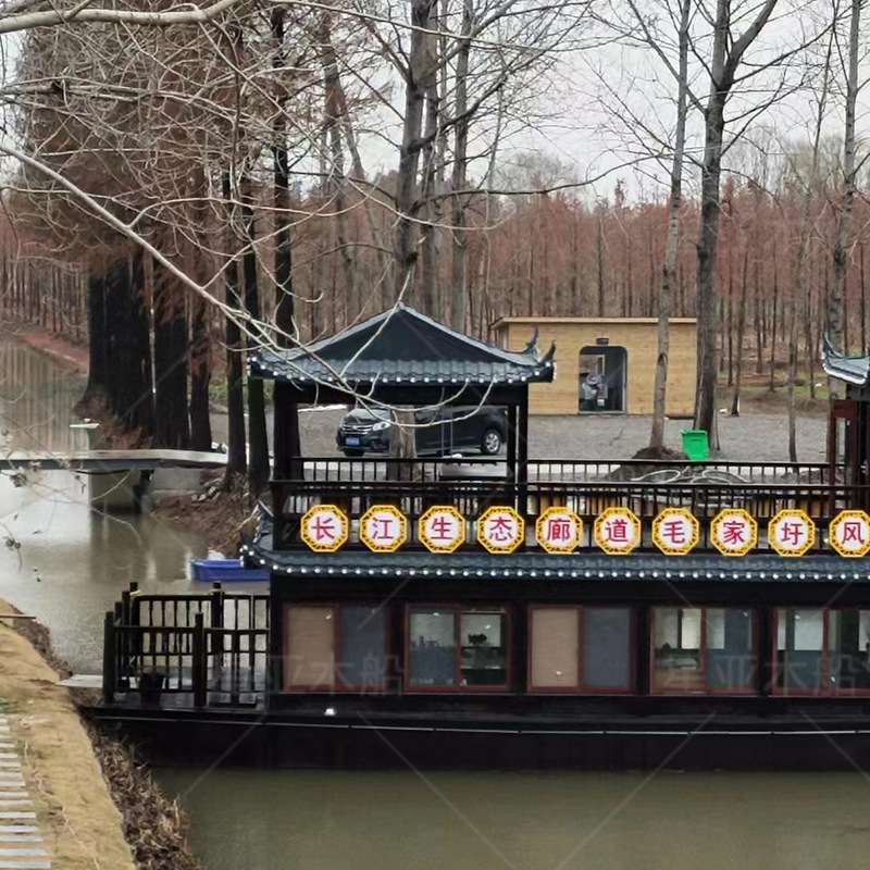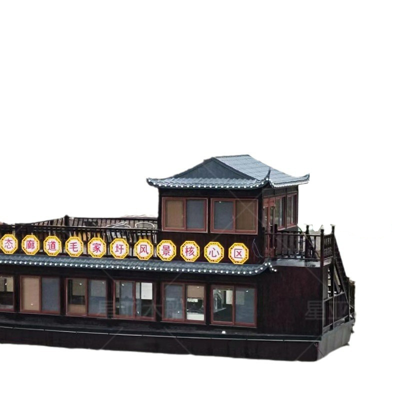 水上餐饮船实木双层电动旅游观光画舫宾馆游乐船画舫船观光船