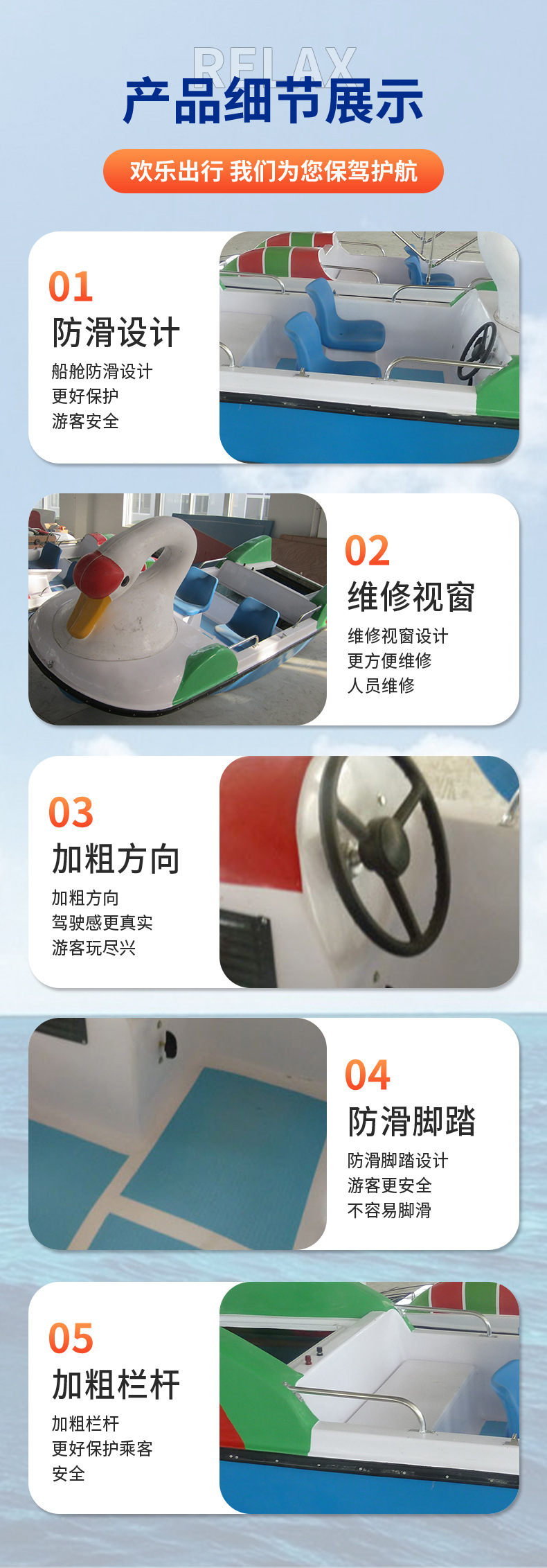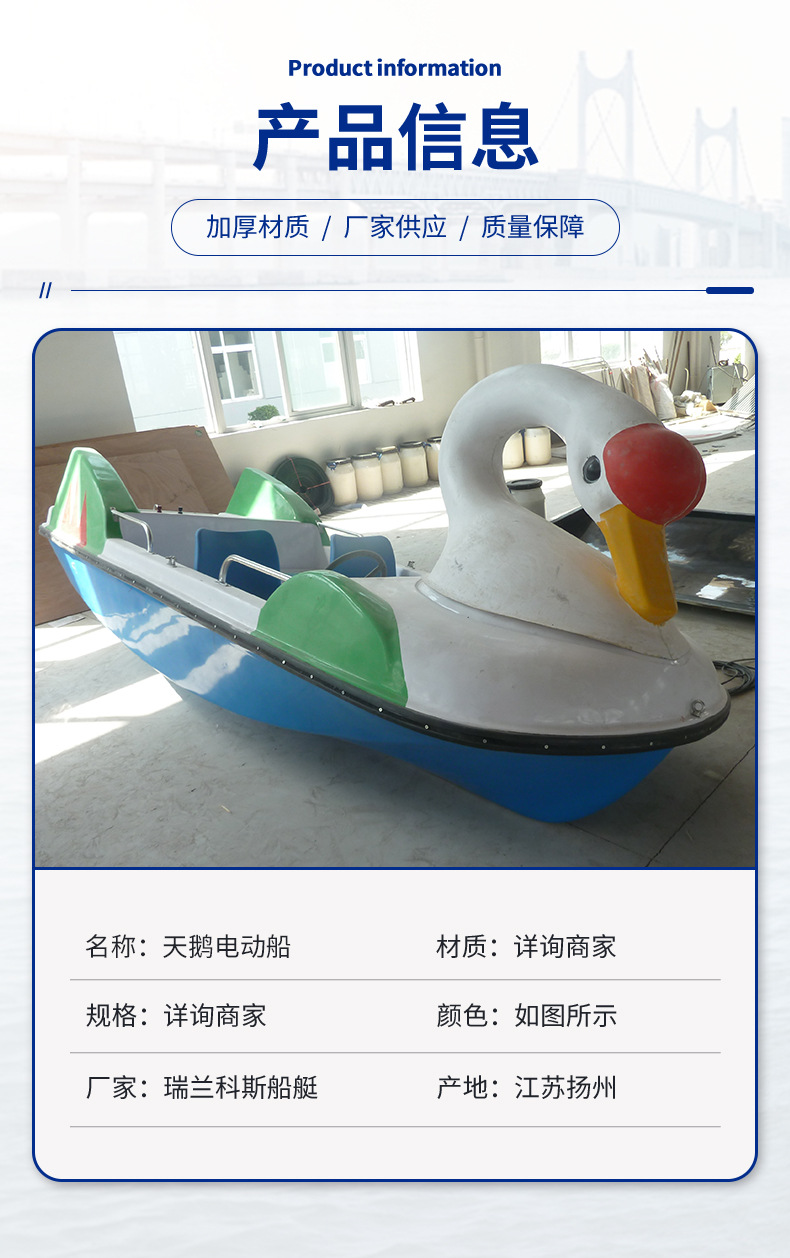 天鹅电动船 公园景区水上观光游乐船自排水4人高天鹅电动船游船