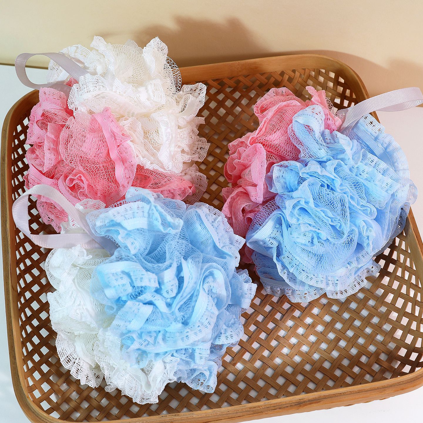 批发彩色蕾丝浴花浴球家用男女洗澡球沐浴球搓澡花拉背条洗澡套装