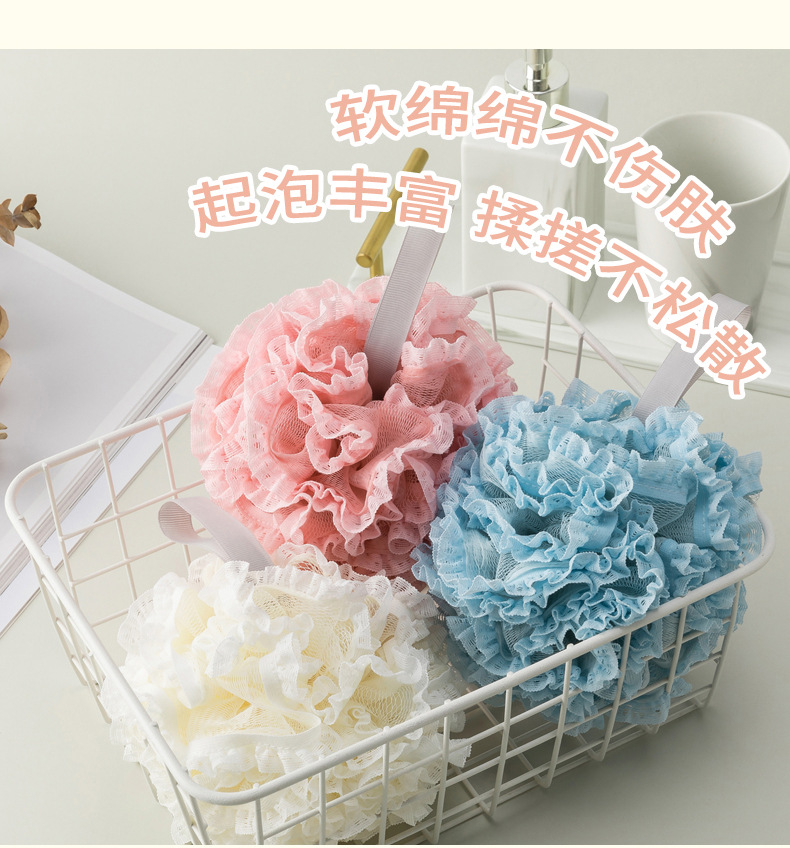 蕾丝花边沐浴球大号60克沐浴花球超柔软不散花耐用泡泡球洗澡神器