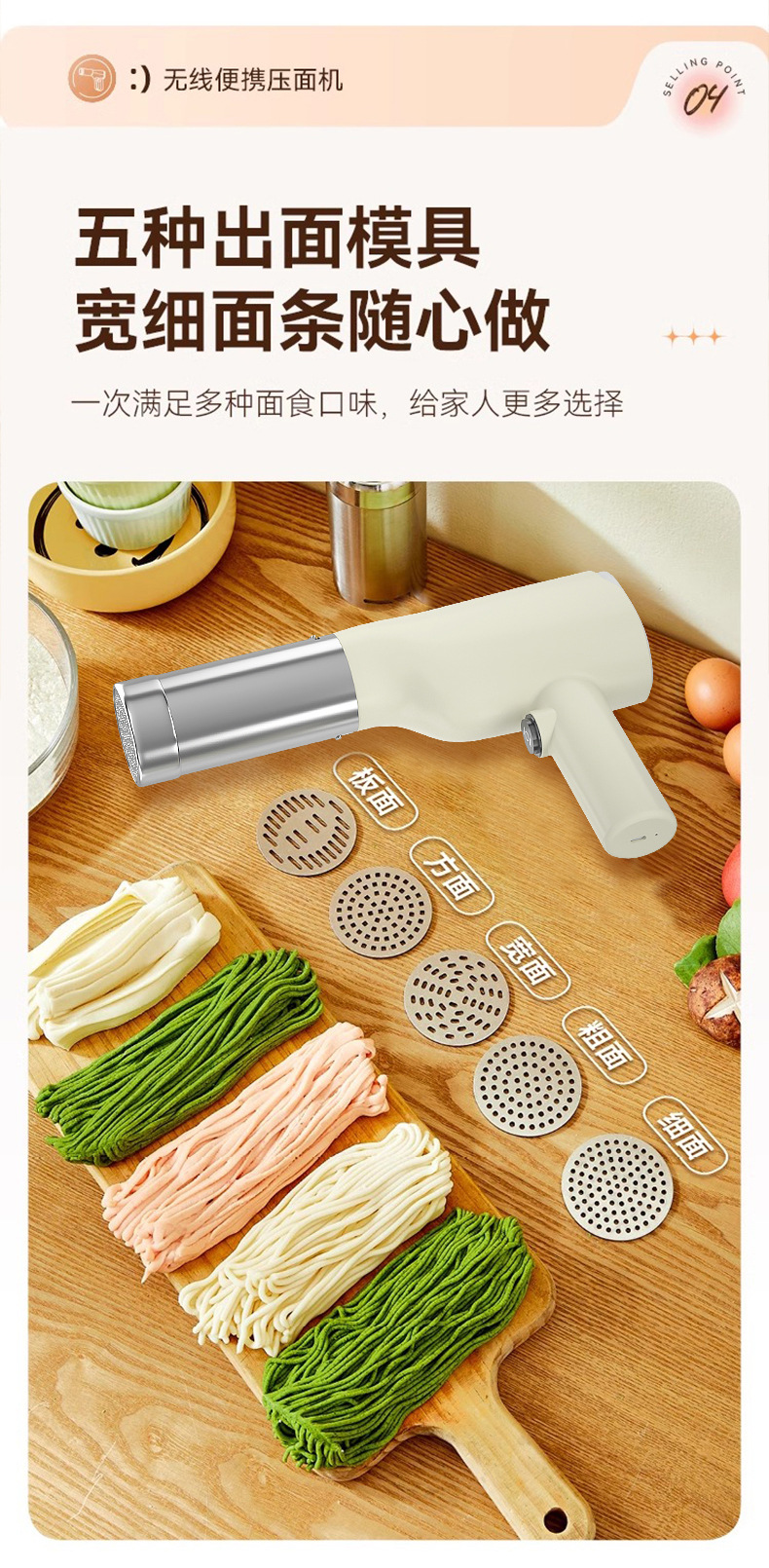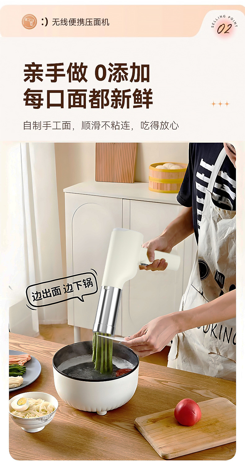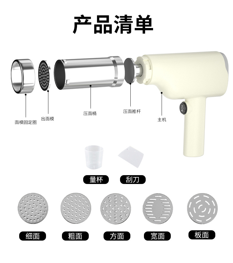 新款不锈钢手持面条机全自动无线多功能家用小型电动挤面压面条机