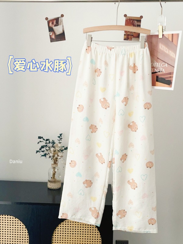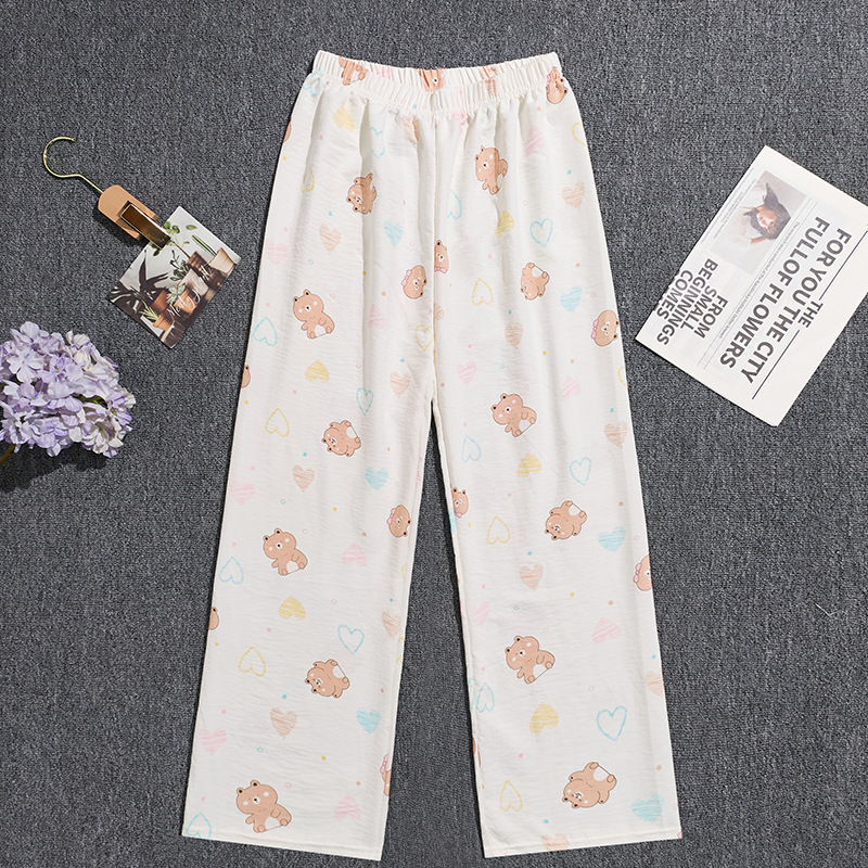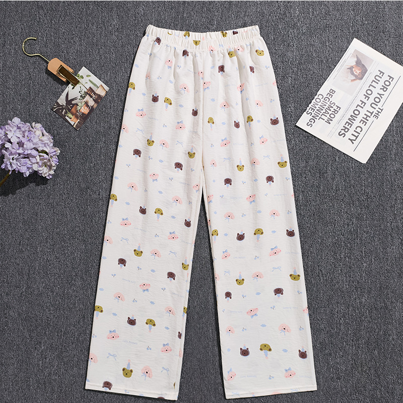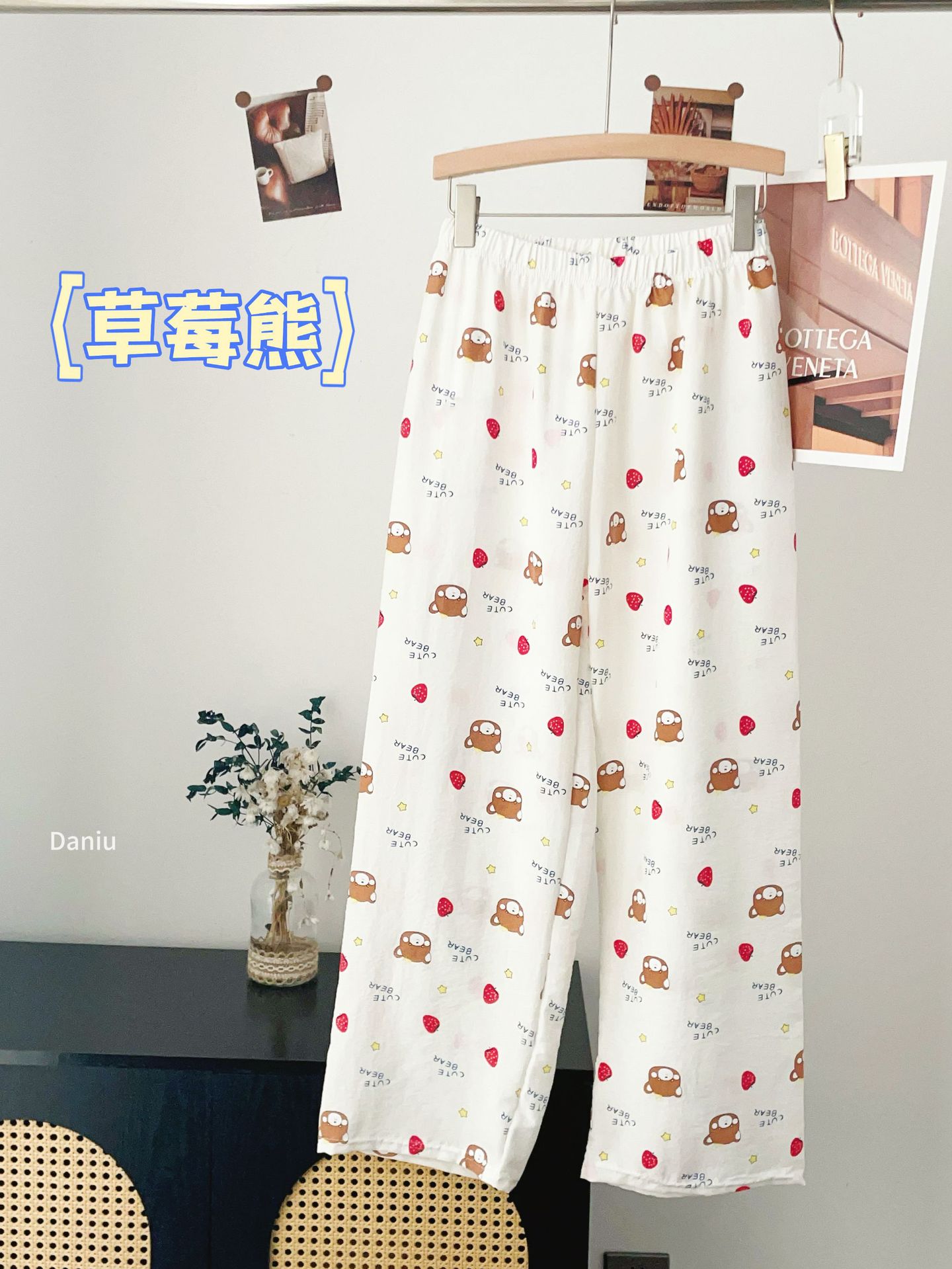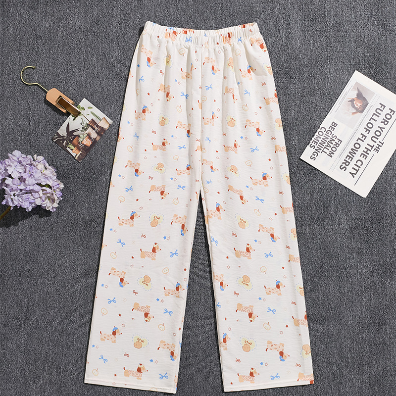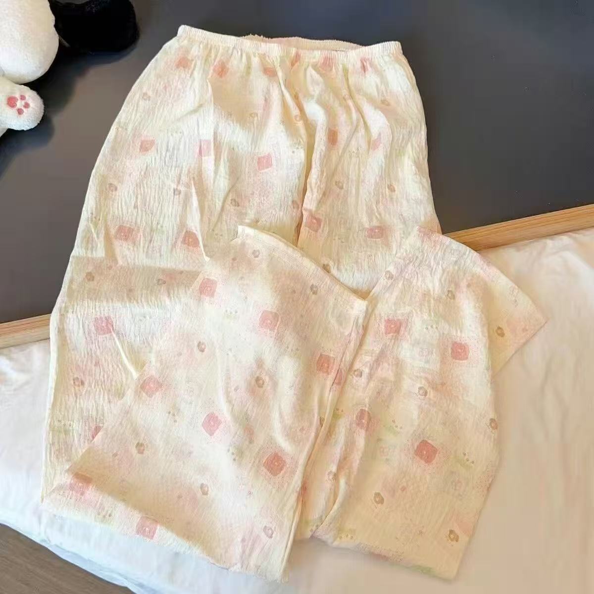 大码宽松胖mm薄款夏季睡裤女云朵棉长裤春秋可外穿卡通遛弯家居裤
