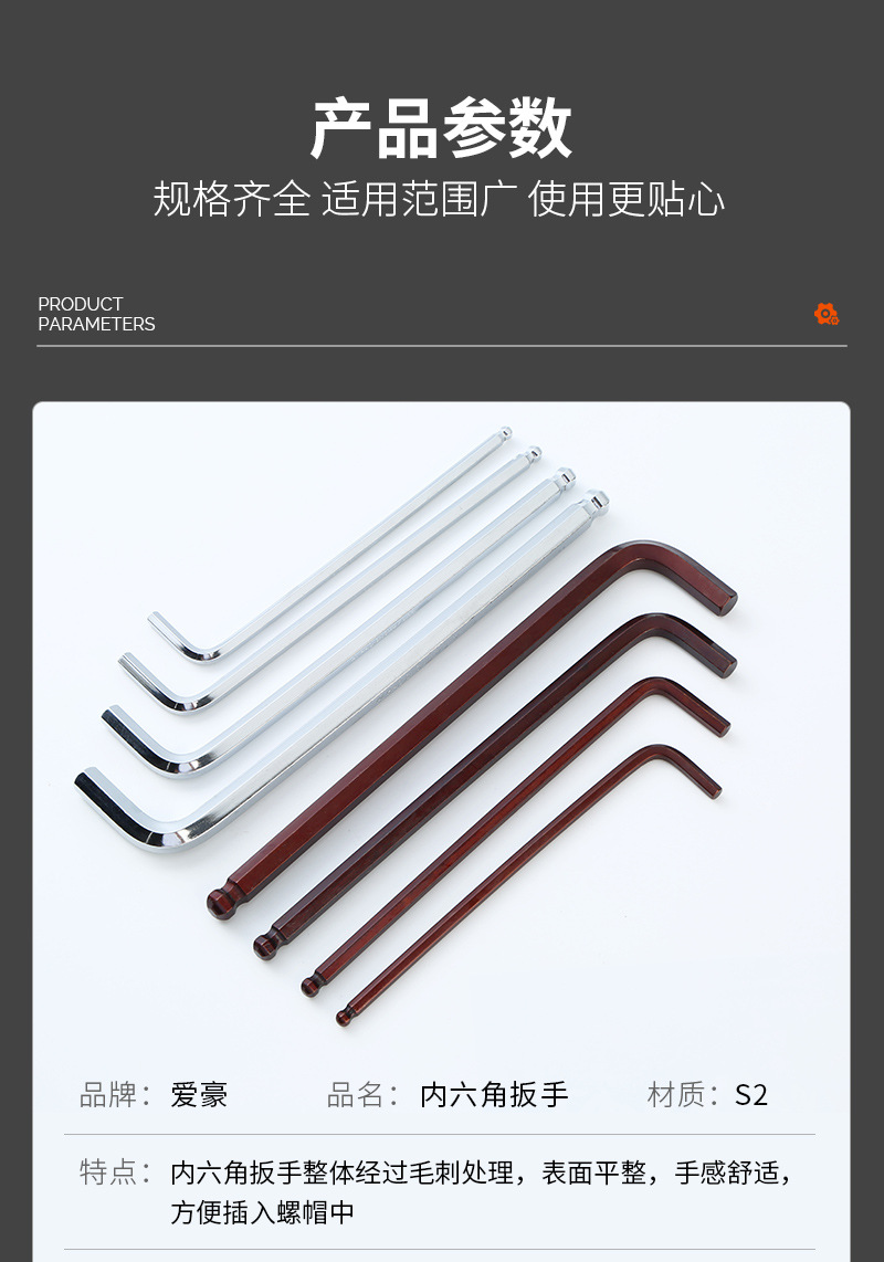 球头S2内六角扳手S2古铜色发红内六角扳手S2镜面内六角扳手内六方