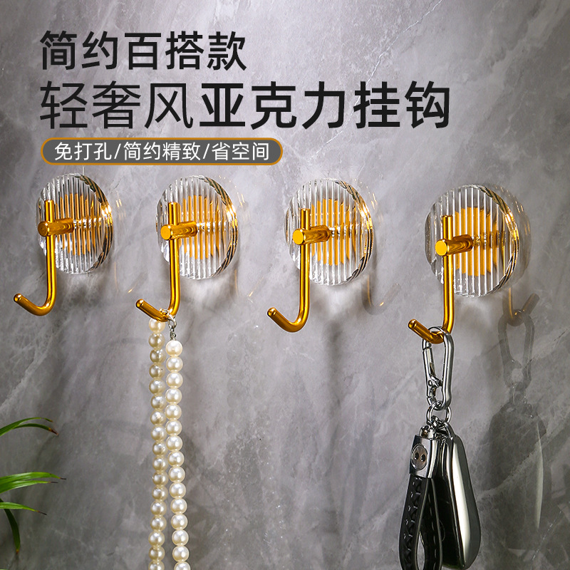 轻奢亚克力挂钩免打孔粘钩强力粘胶卫生间浴室门后毛巾挂衣钩跨境