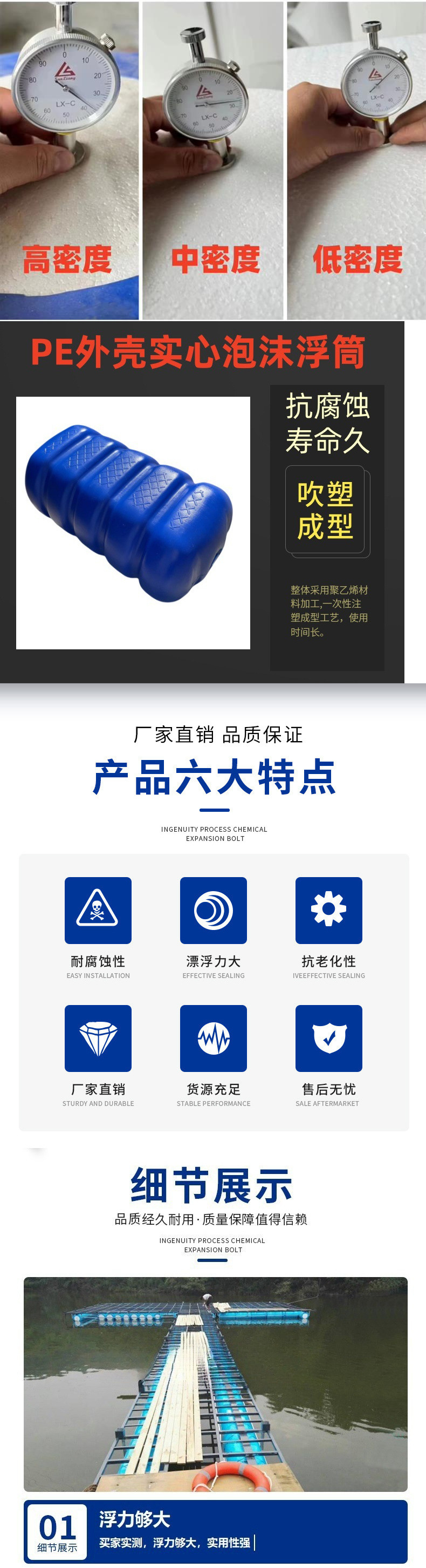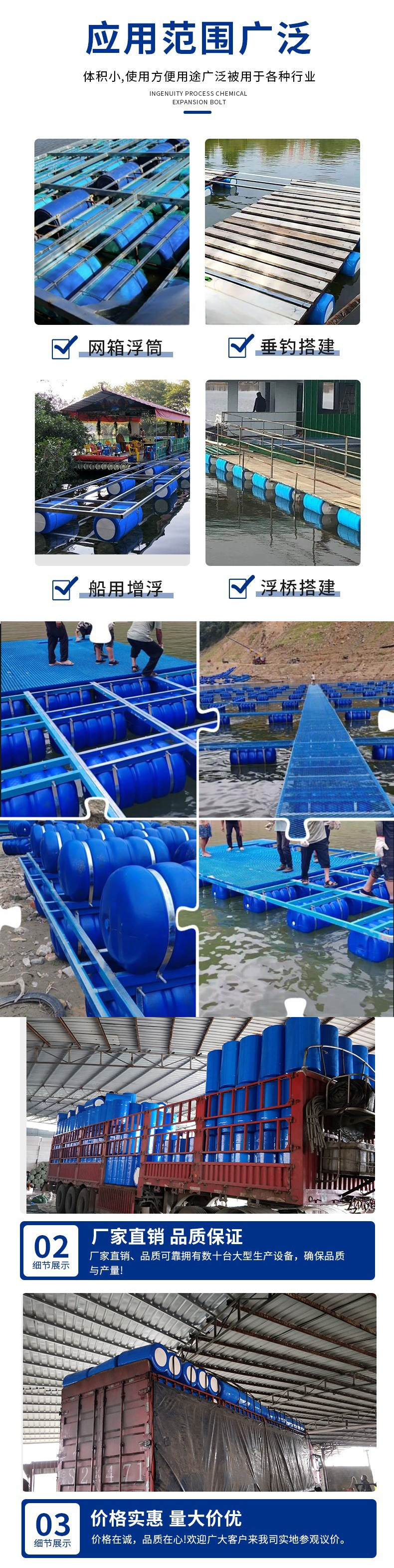 塑料浮筒水上平台码头浮桶浮桥栈道浮球浮台养殖网箱钓鱼泡沫浮漂