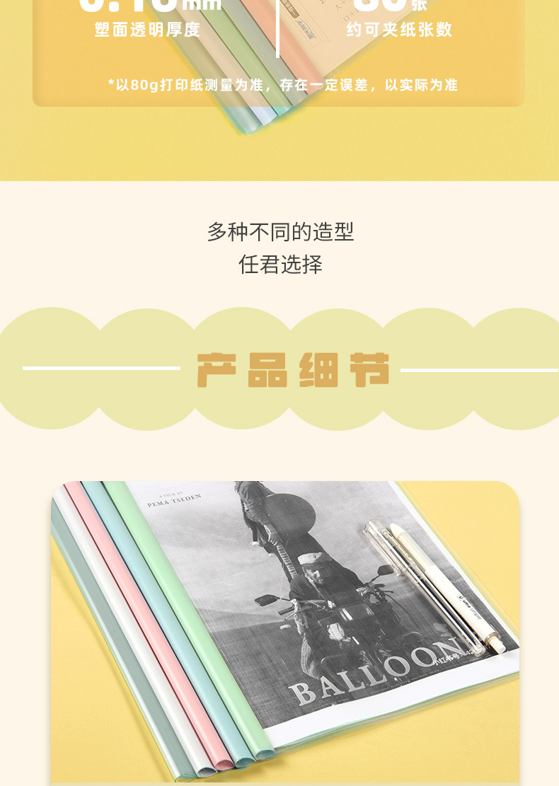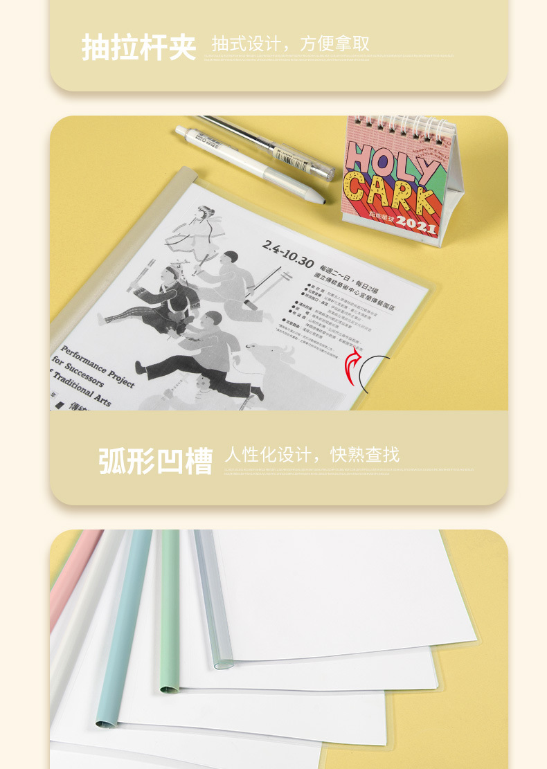 水滴形A4透明抽杆文件夹拉杆夹加厚报告文件夹学生资料简历档案夹