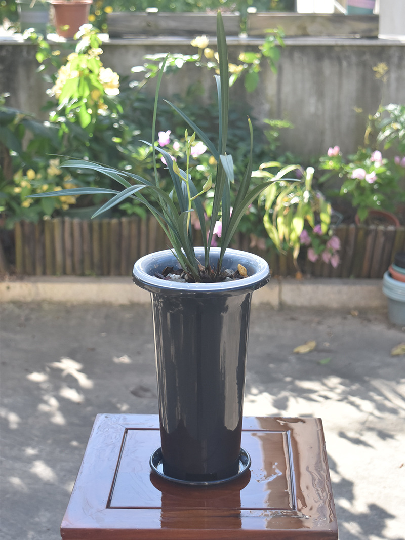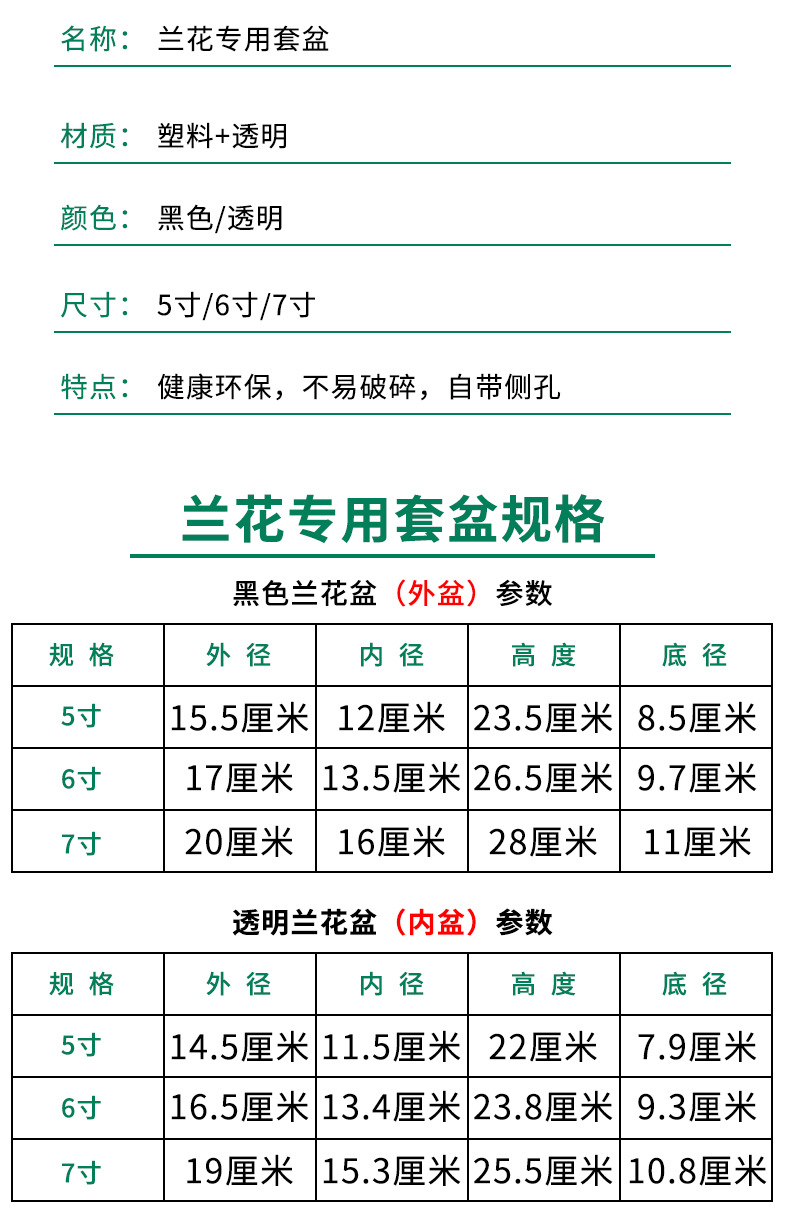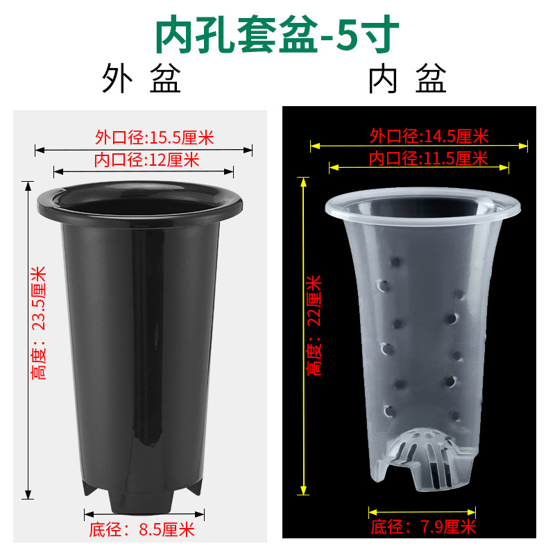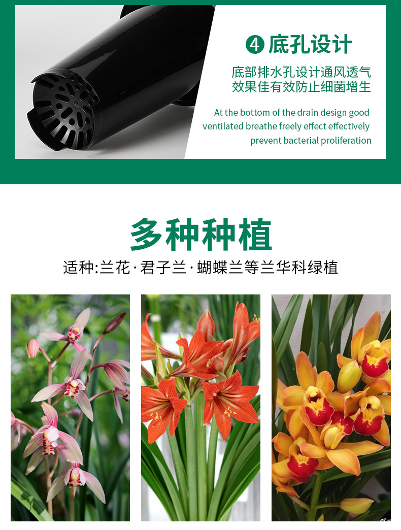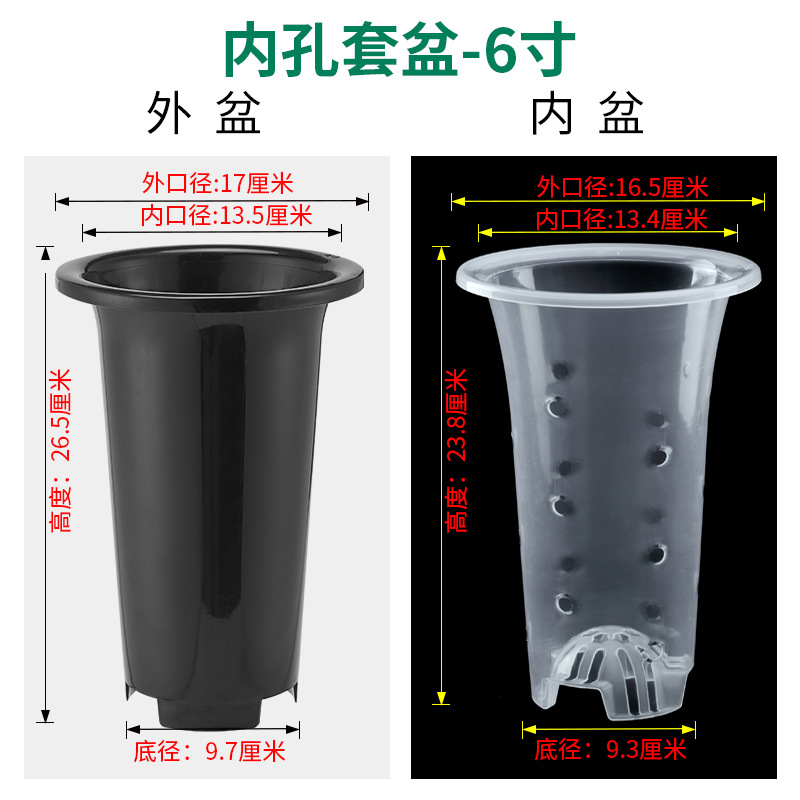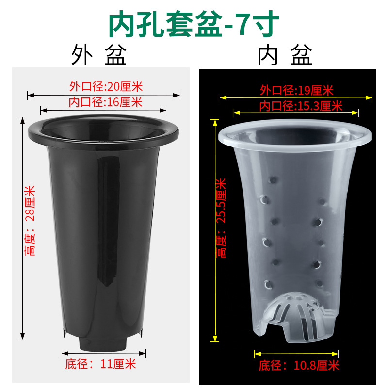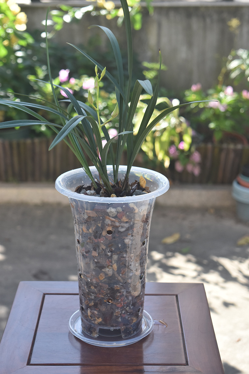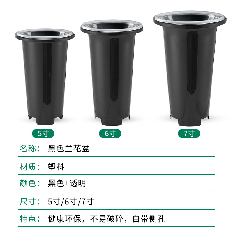 塑料兰花盆花卉绿植黑色透明盆简约兰科大号透气养根花盆兰花套盆