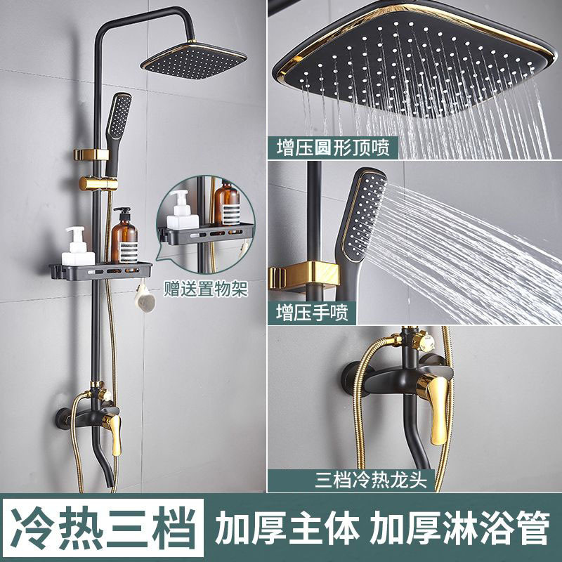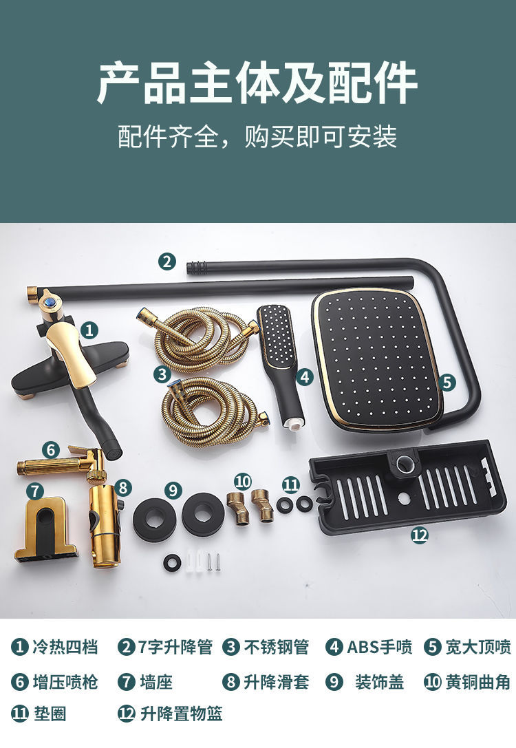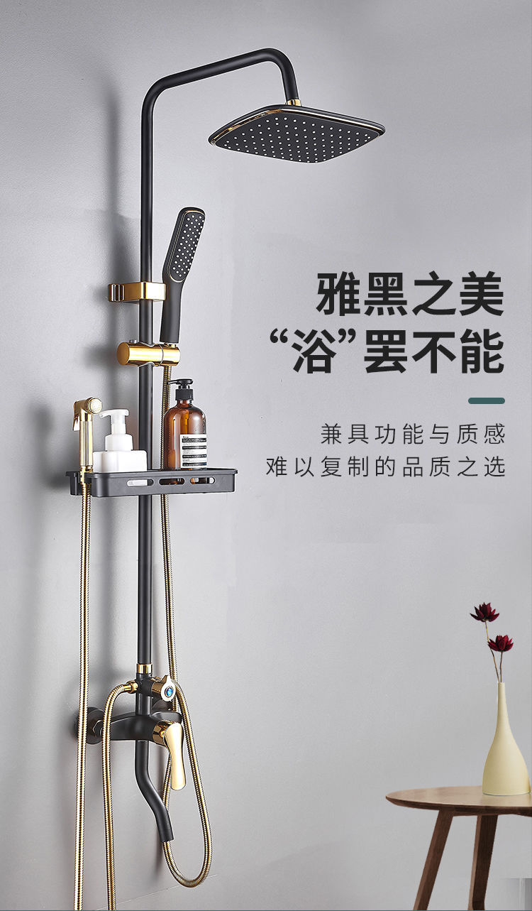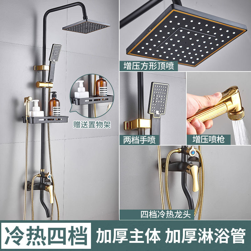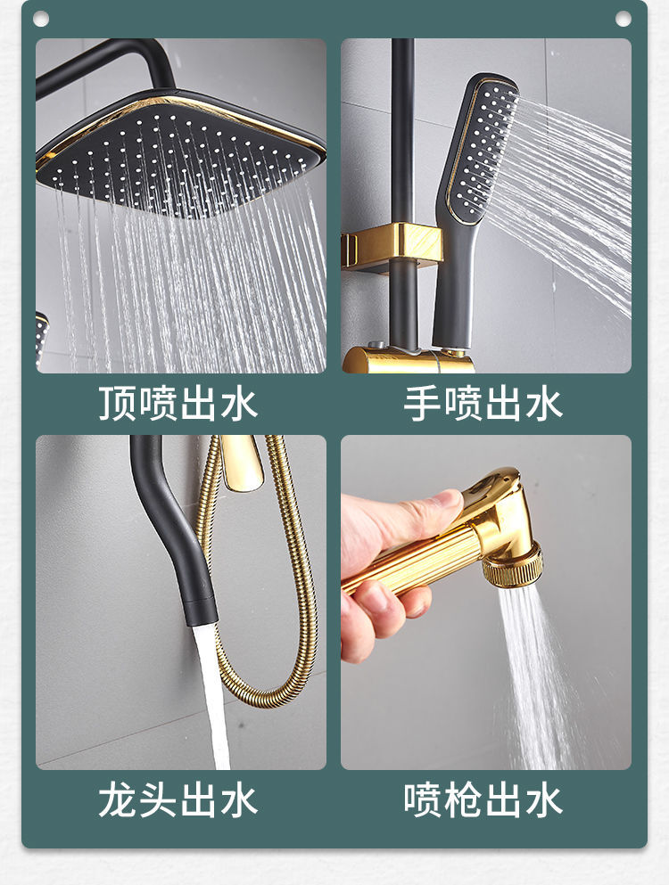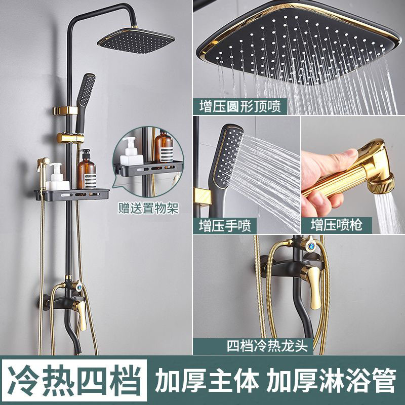 黑金增压花洒一整套淋浴花洒轻奢套装高档四档全套浴室花洒