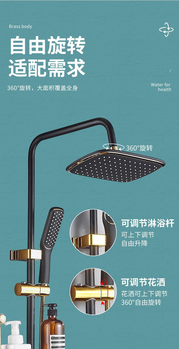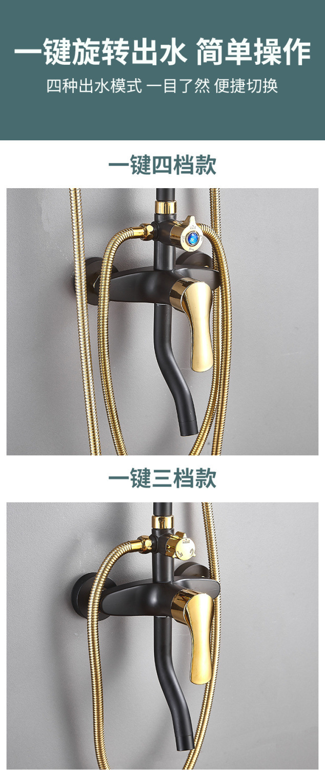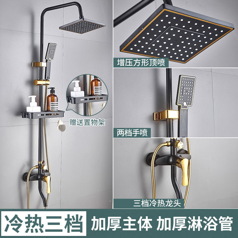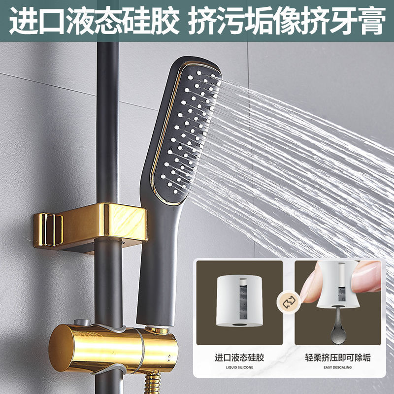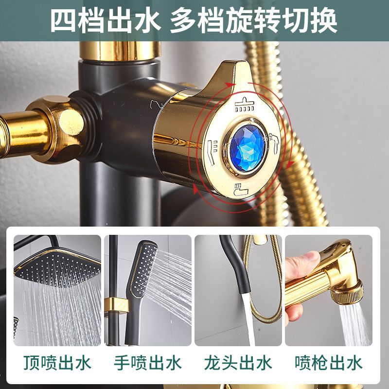 黑金增压花洒一整套淋浴花洒轻奢套装高档四档全套浴室花洒