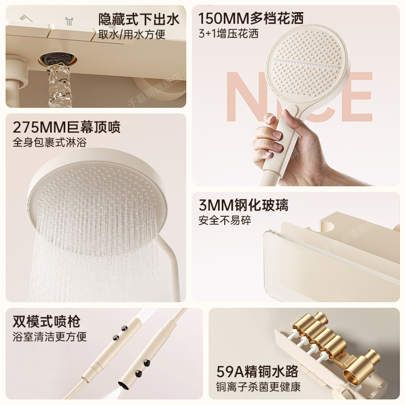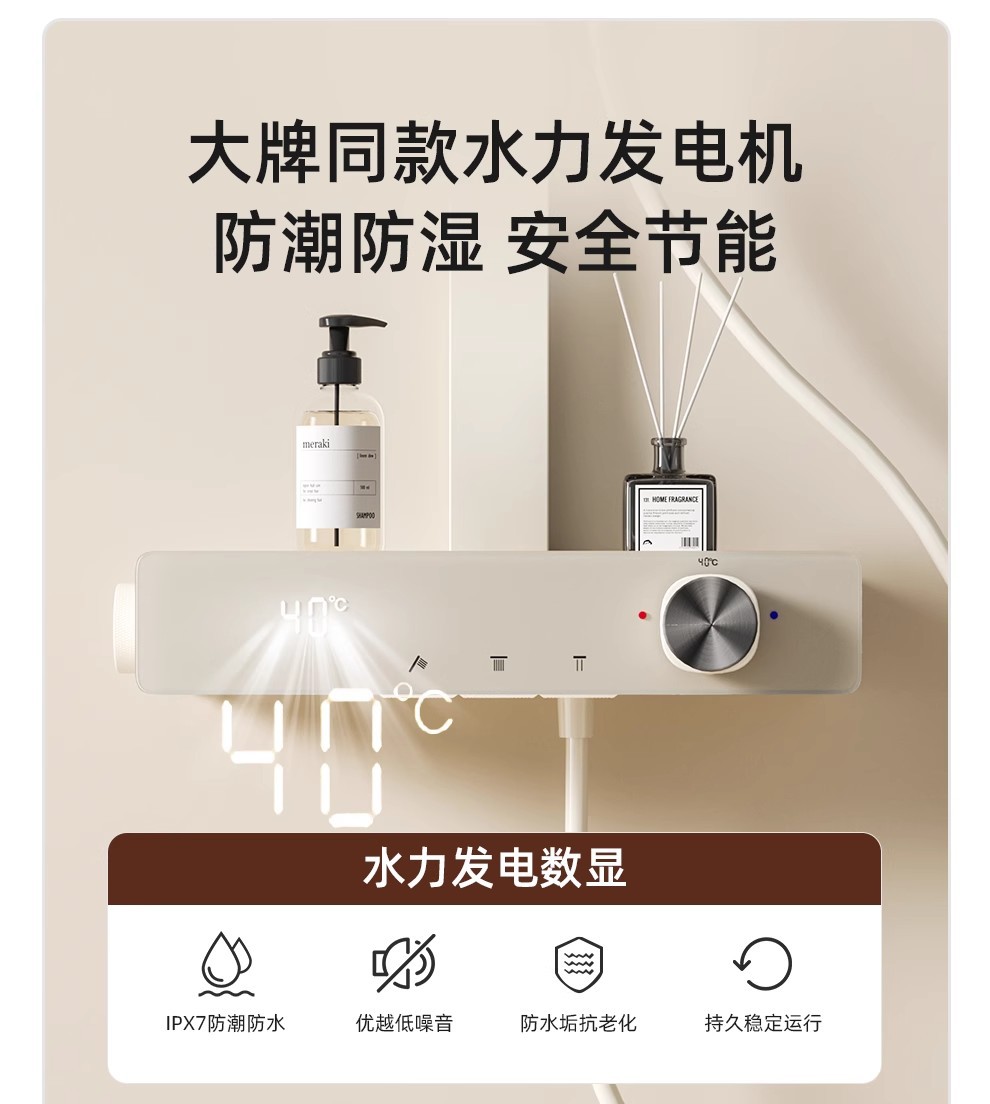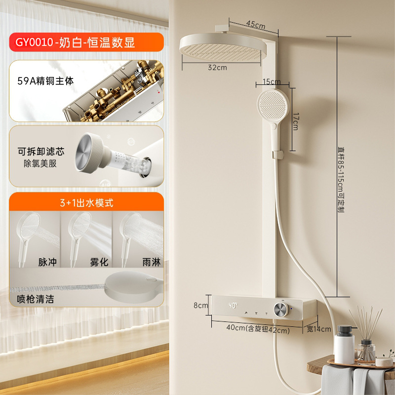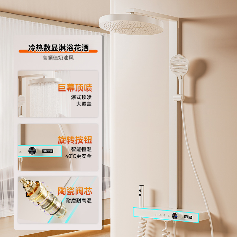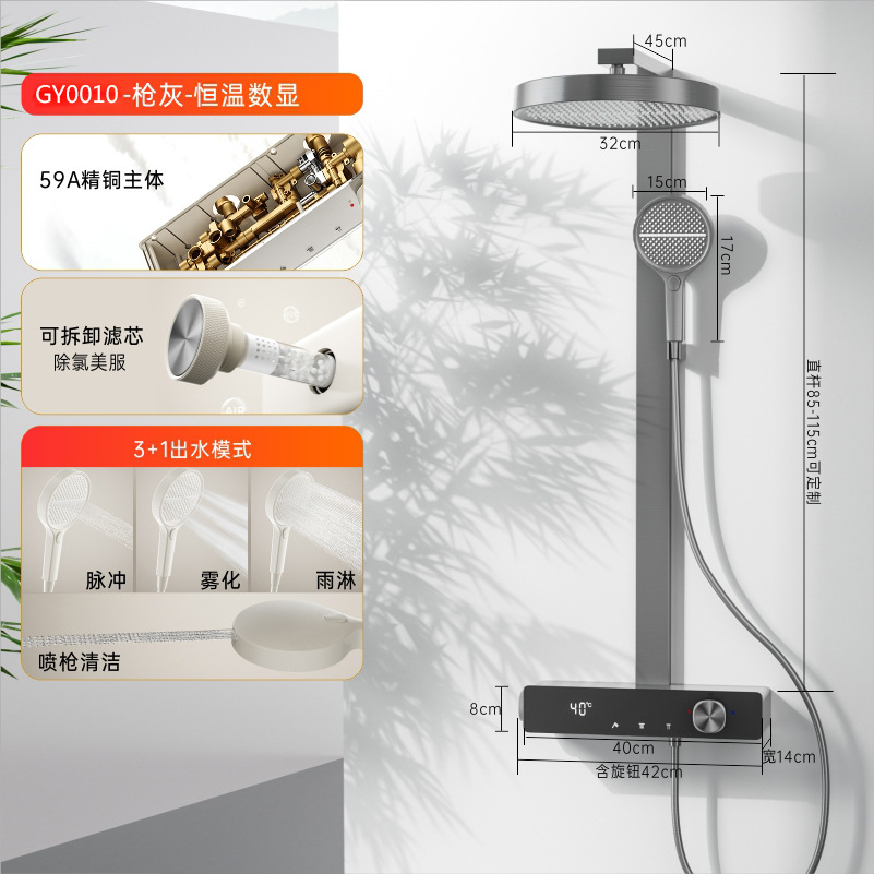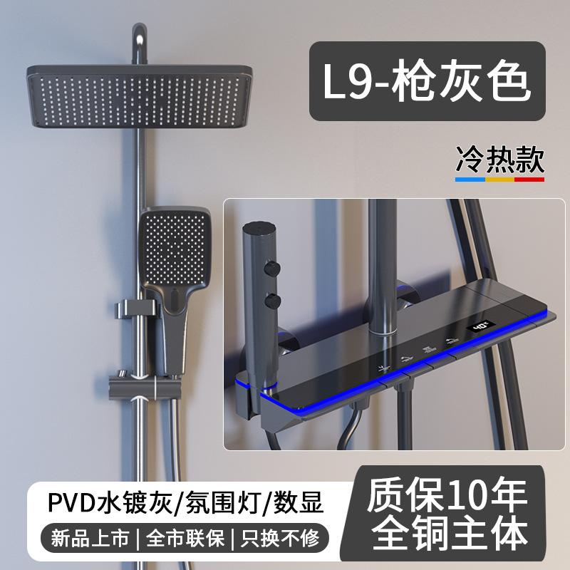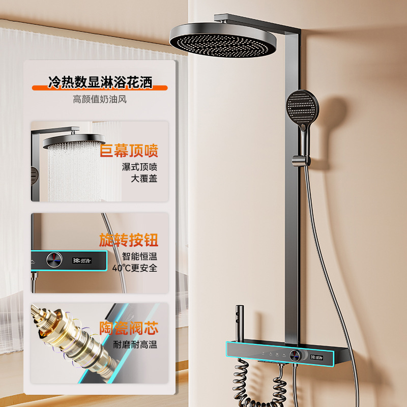 花洒全套一整套枪灰淋浴花洒套装卫生间冷热洗澡钢琴数显增压喷头