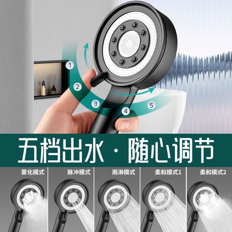 五档增压淋雨淋浴花洒喷头套装家用加压洗澡沐浴热水器软管莲蓬头
