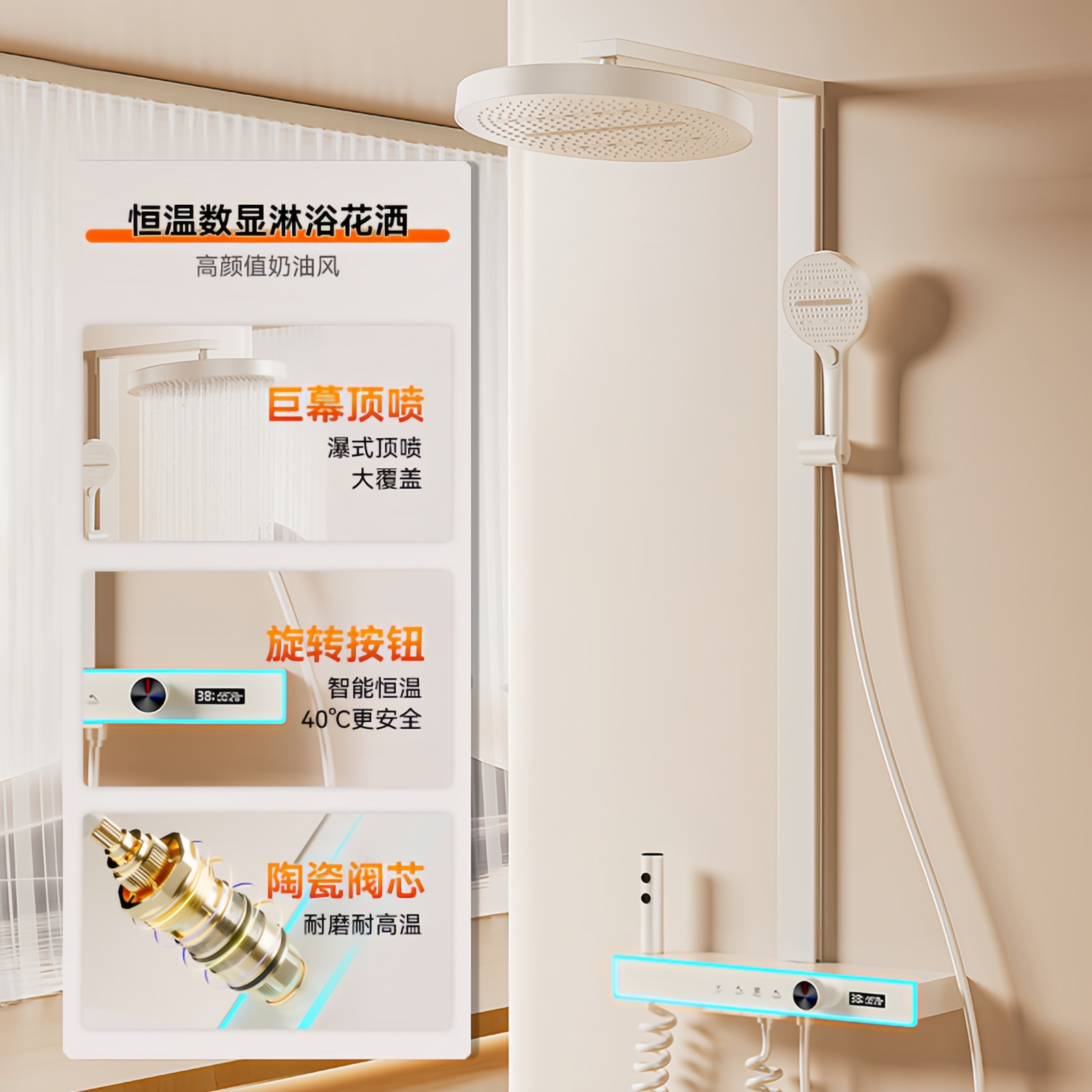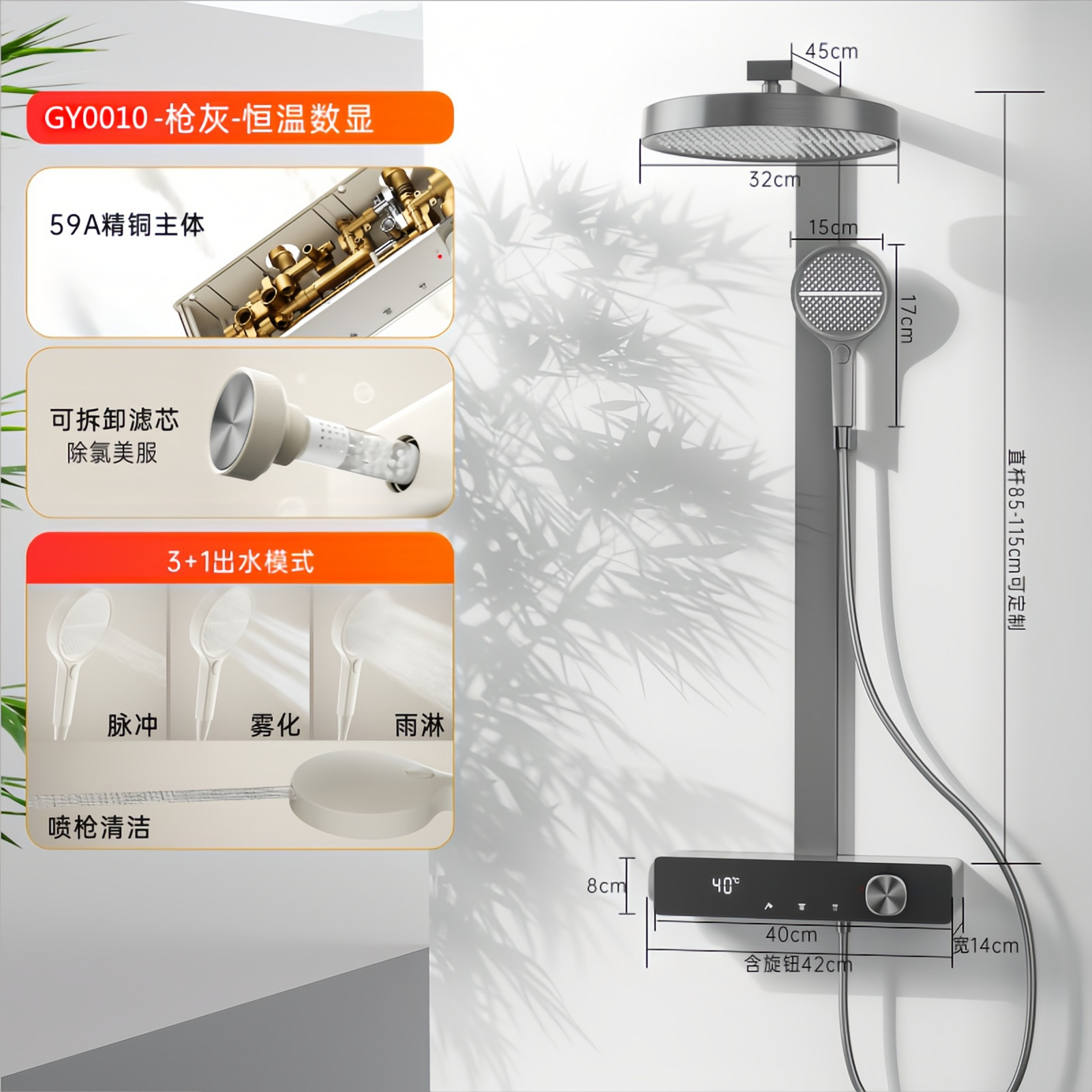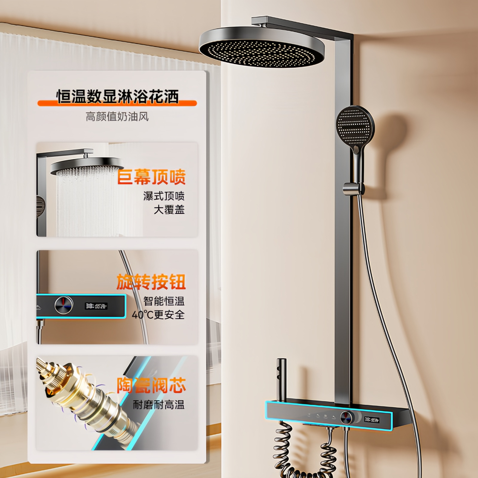 外贸花洒淋浴一整套全铜套装恒温家用数显氛围灯增压花酒包安装