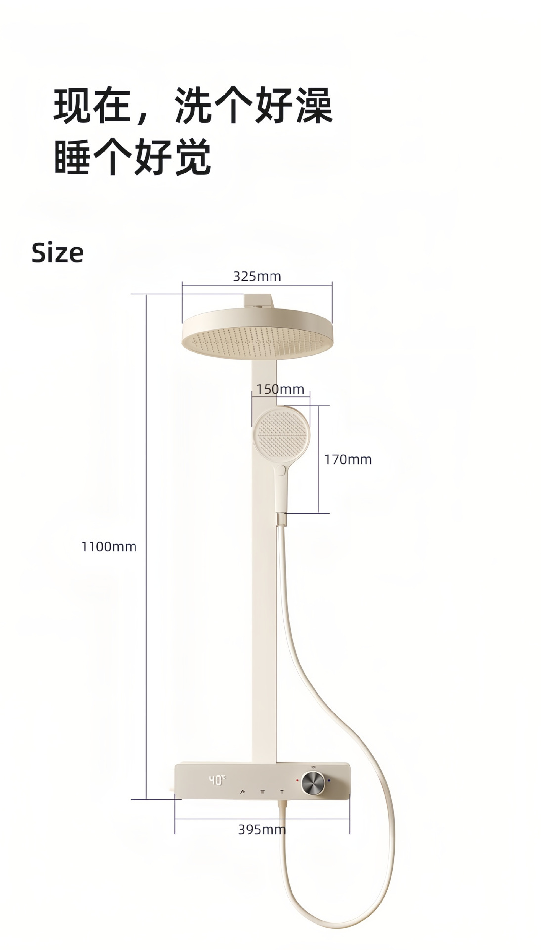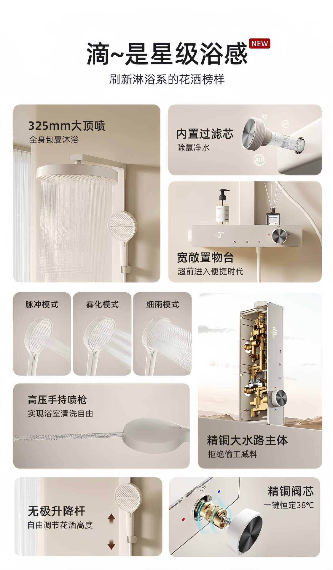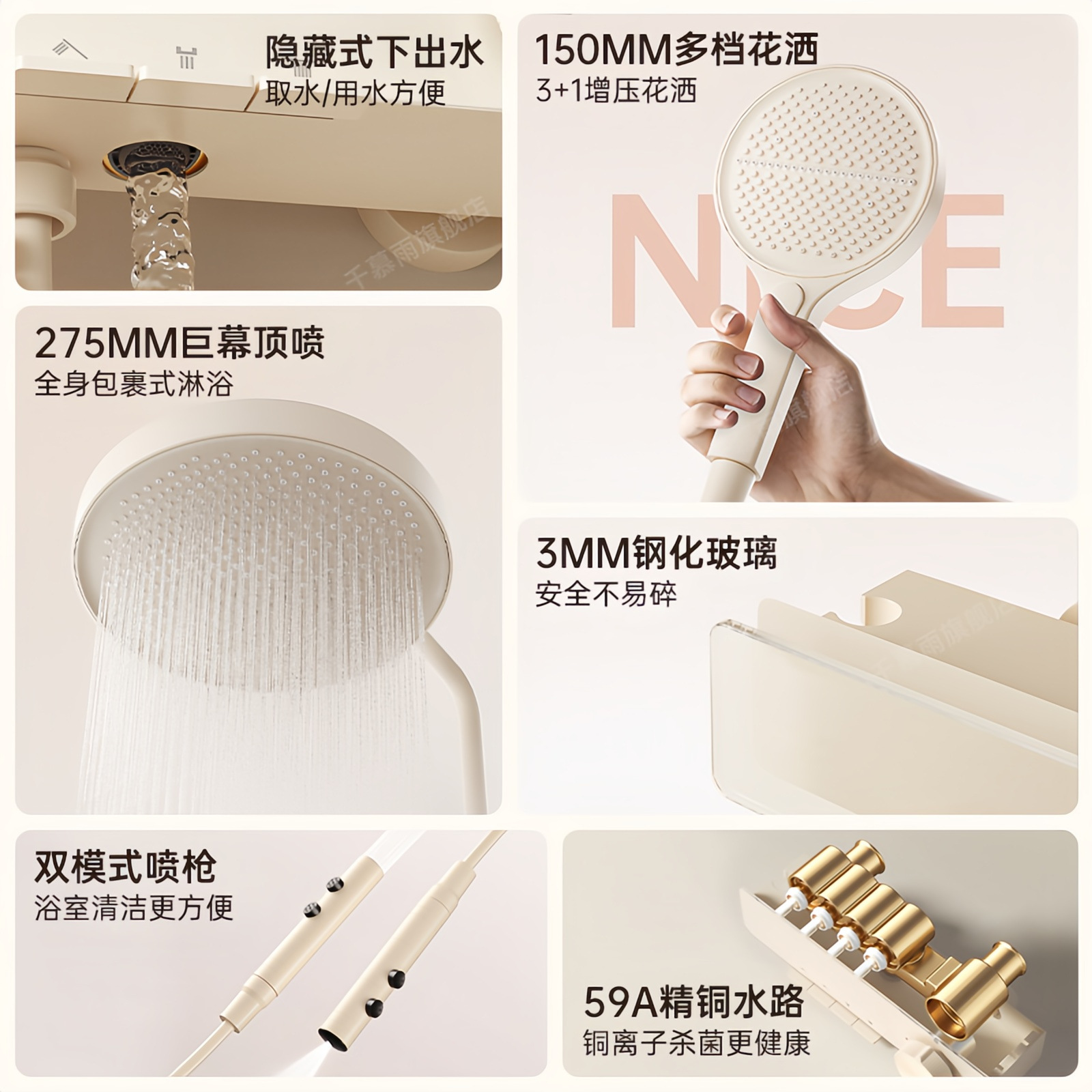 外贸花洒淋浴一整套全铜套装恒温家用数显氛围灯增压花酒包安装