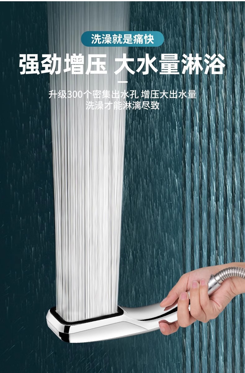 300孔 增压花洒淋浴喷头方形手持花洒头增压莲蓬头节水花洒头套装