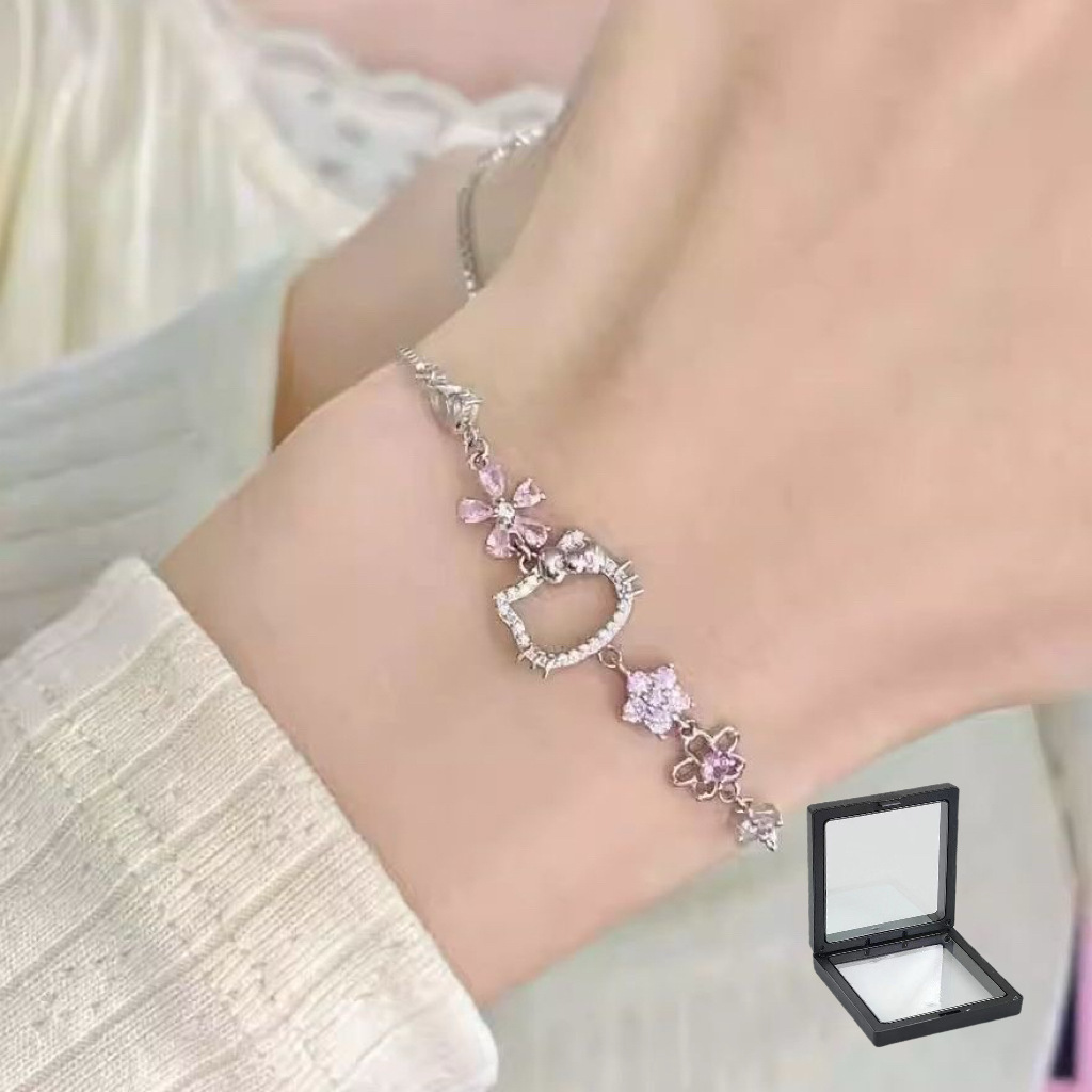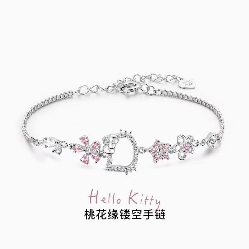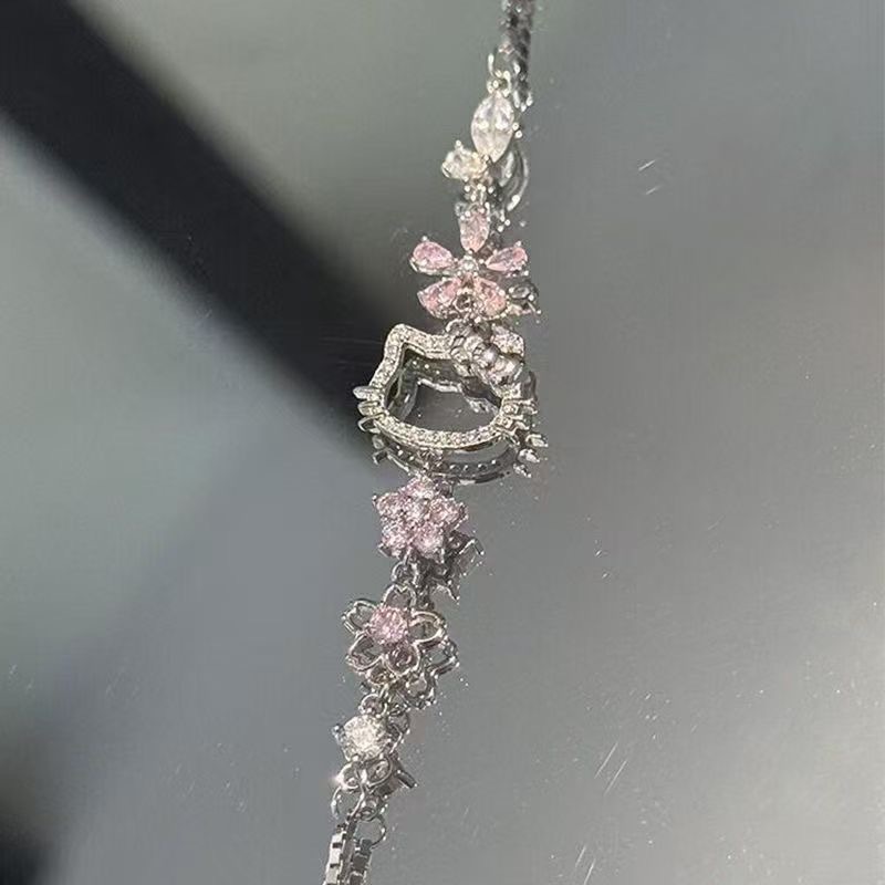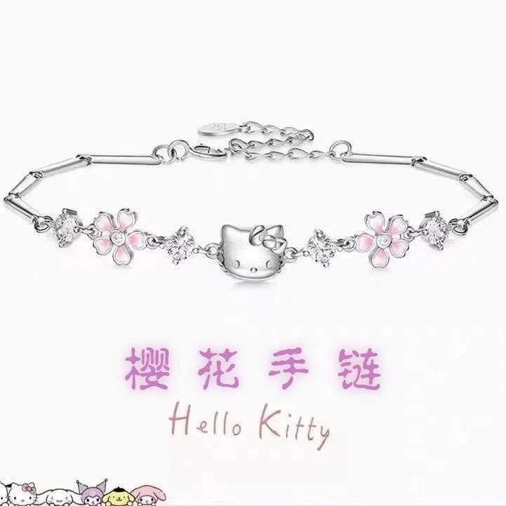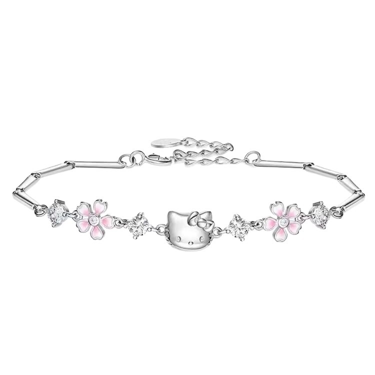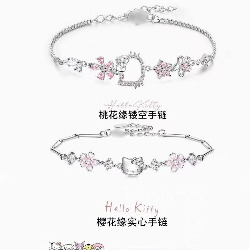 可爱三丽鸥hellokitty粉钻樱花手链女轻奢高颜值小众设计饰品批发