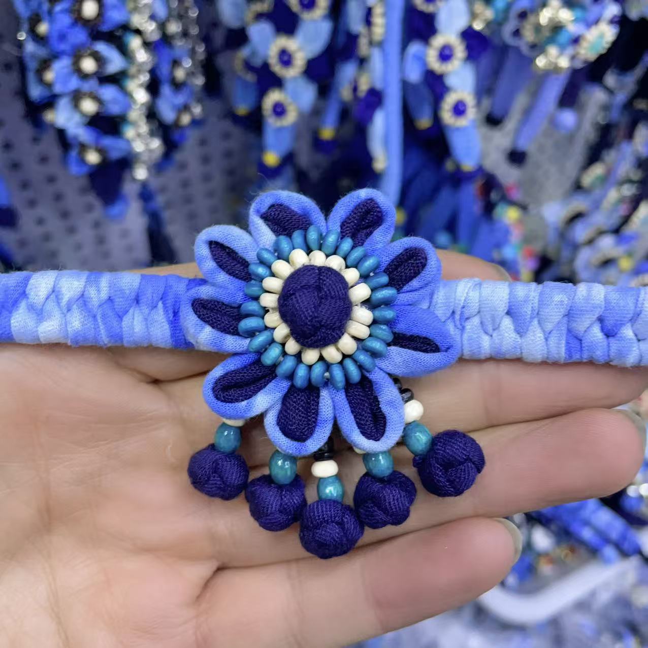 蓝染手链云南大理民族风扎染蓝染布手链手绳手镯特色手工编织