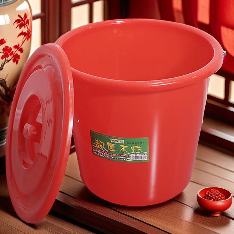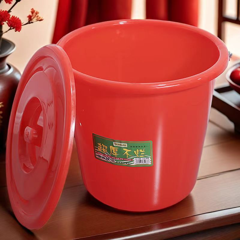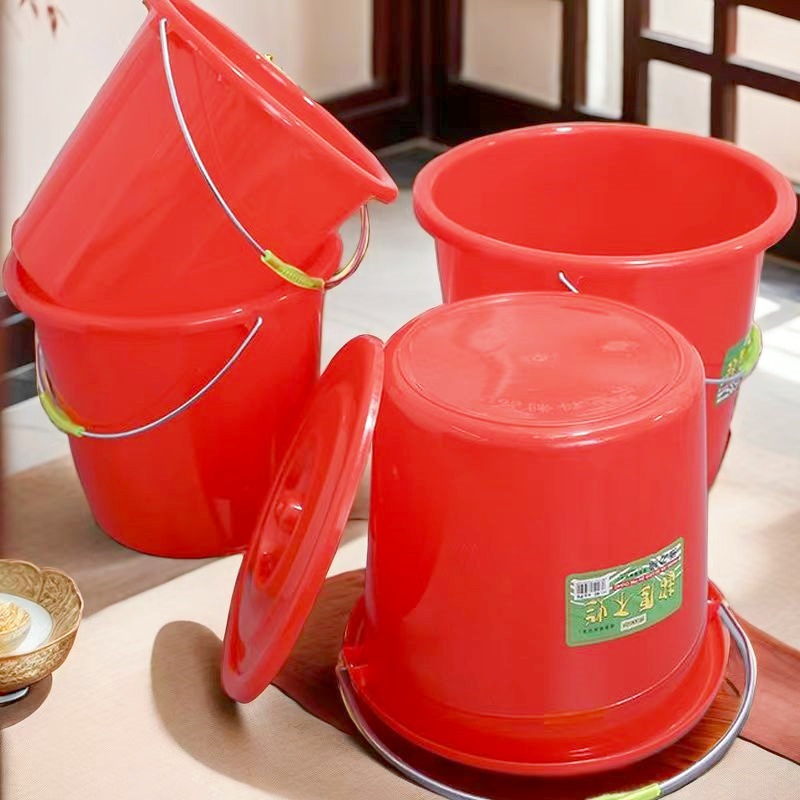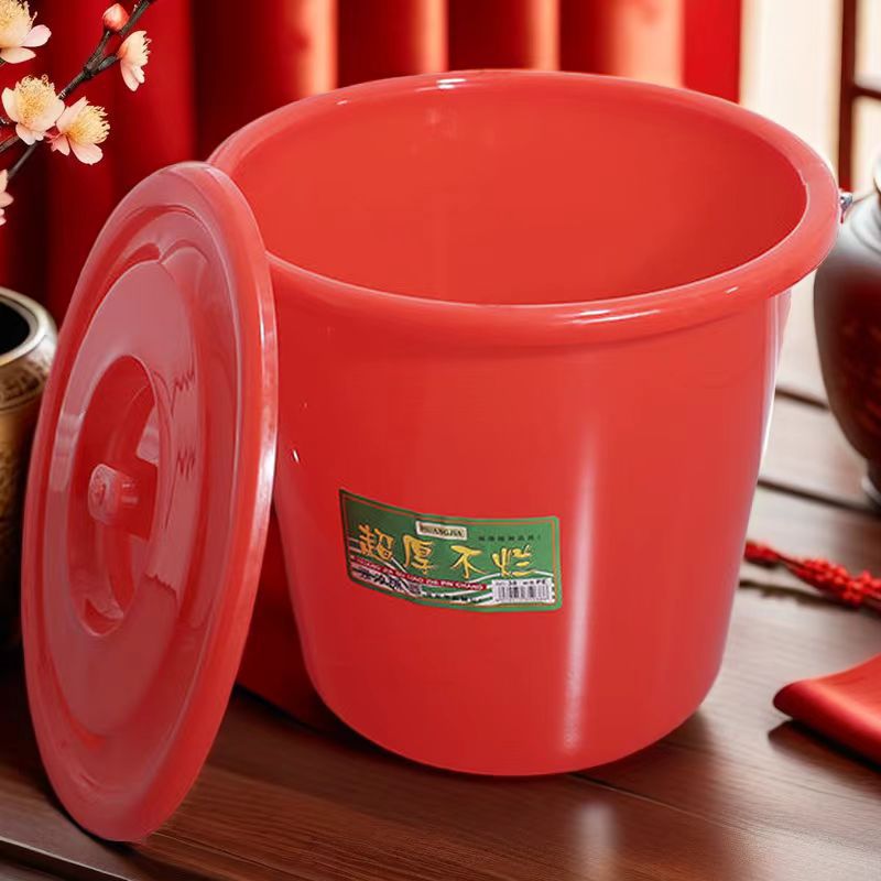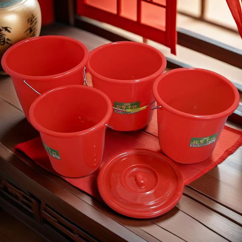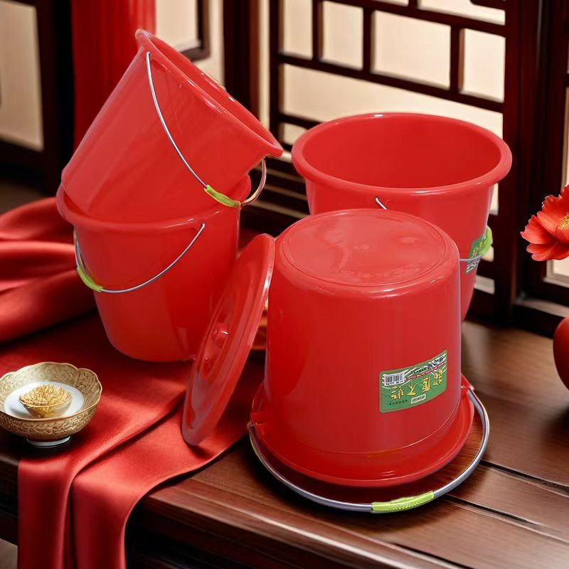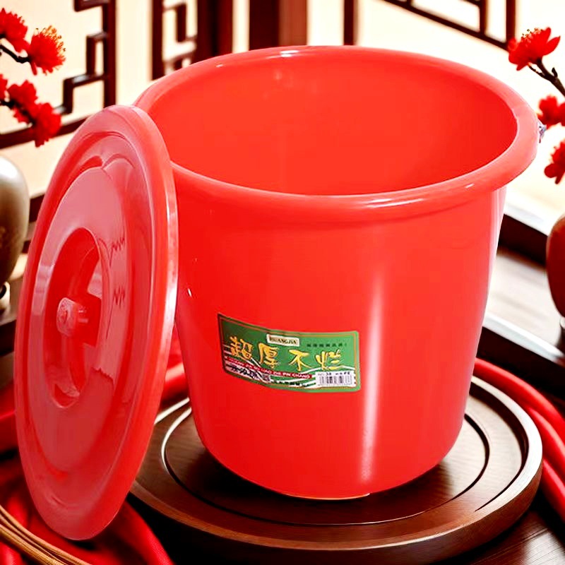 加厚红色喜字水桶大小号塑料储水桶家用洗脚洗车清洁洗衣带盖圆桶
