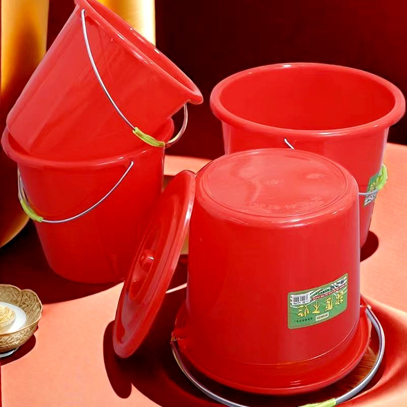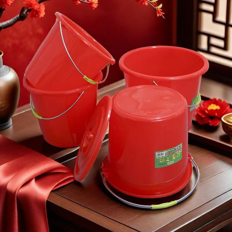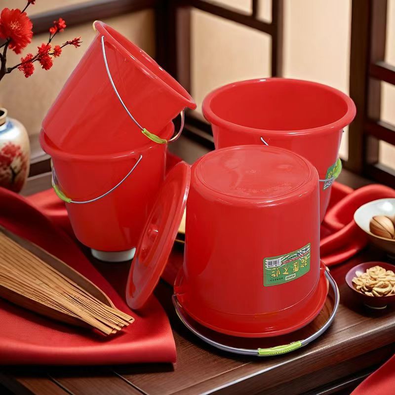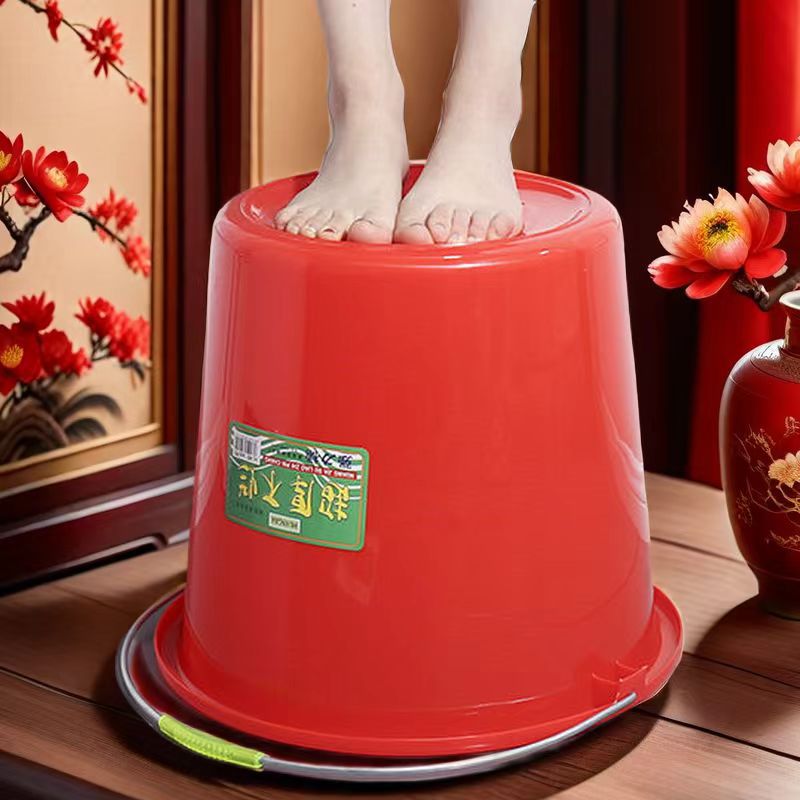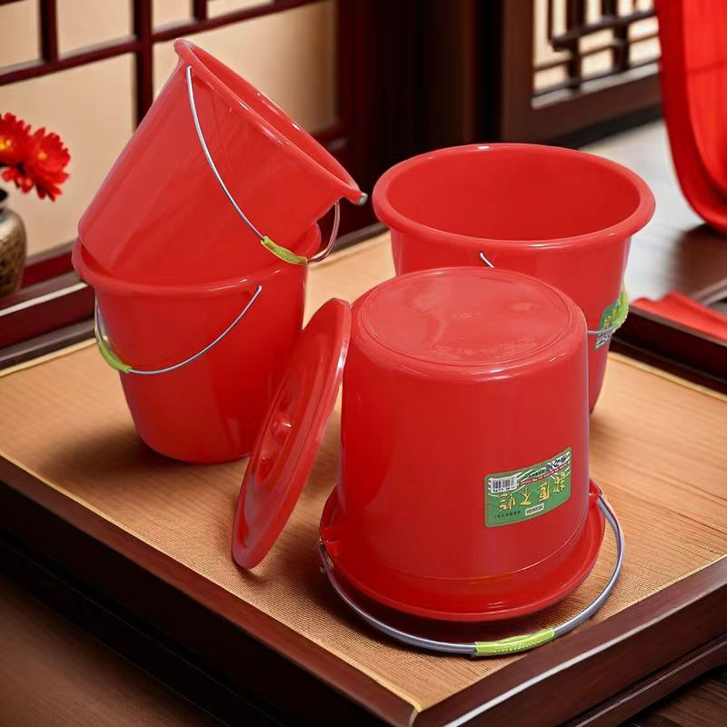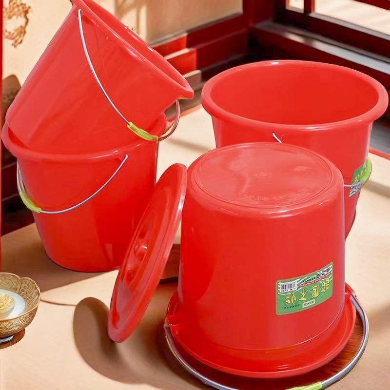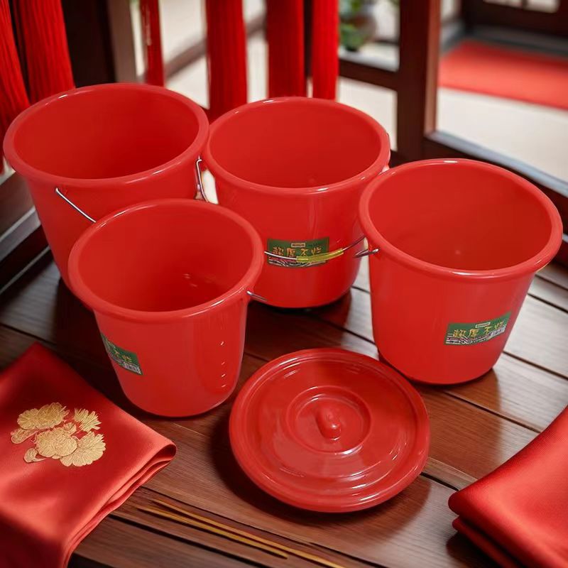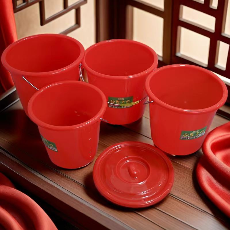 加厚红色喜字水桶大小号塑料储水桶家用洗脚洗车清洁洗衣带盖圆桶