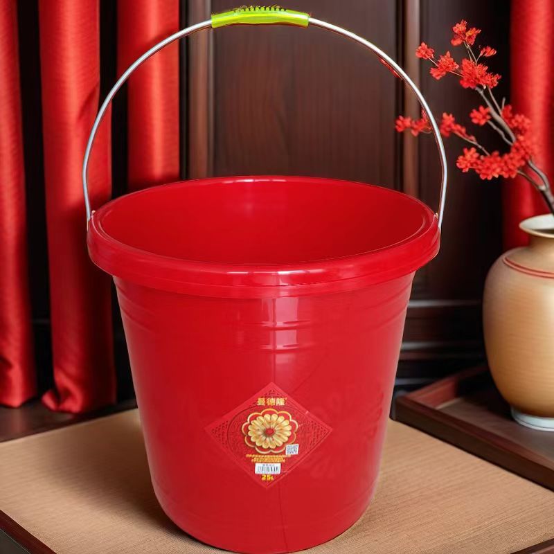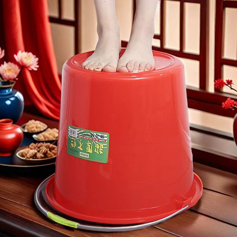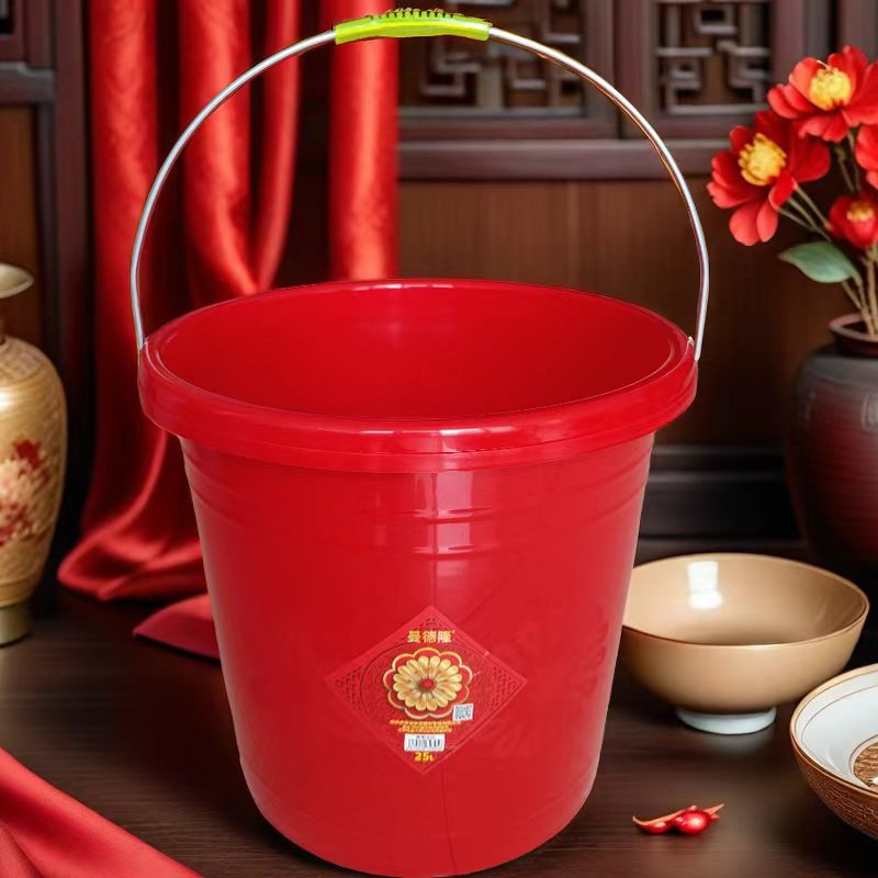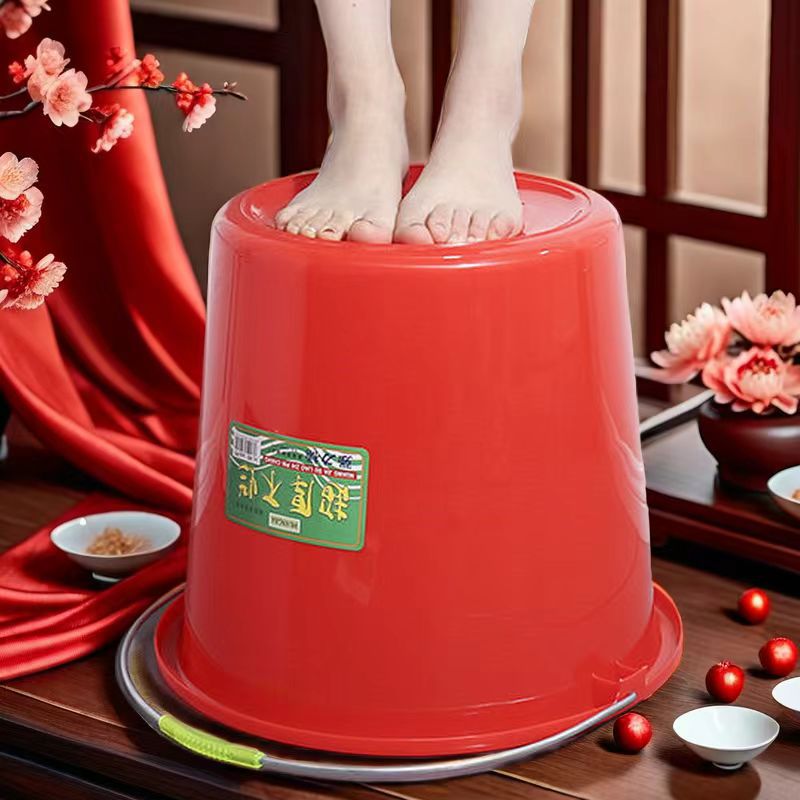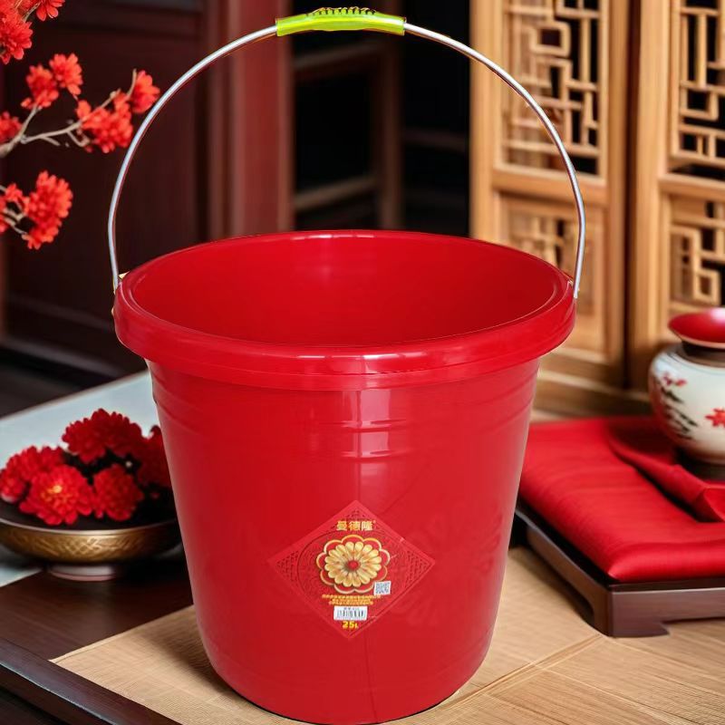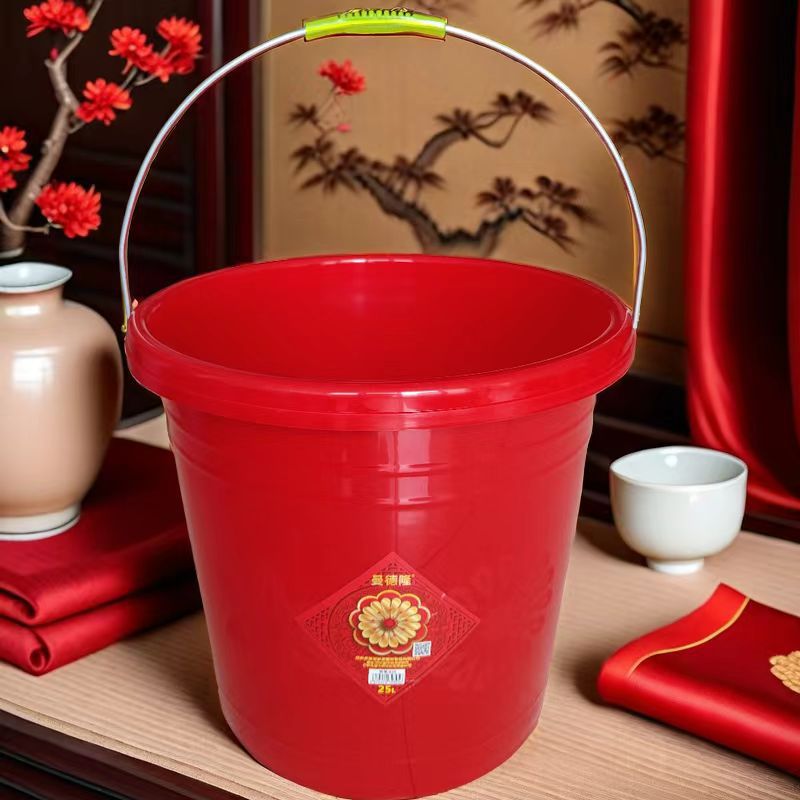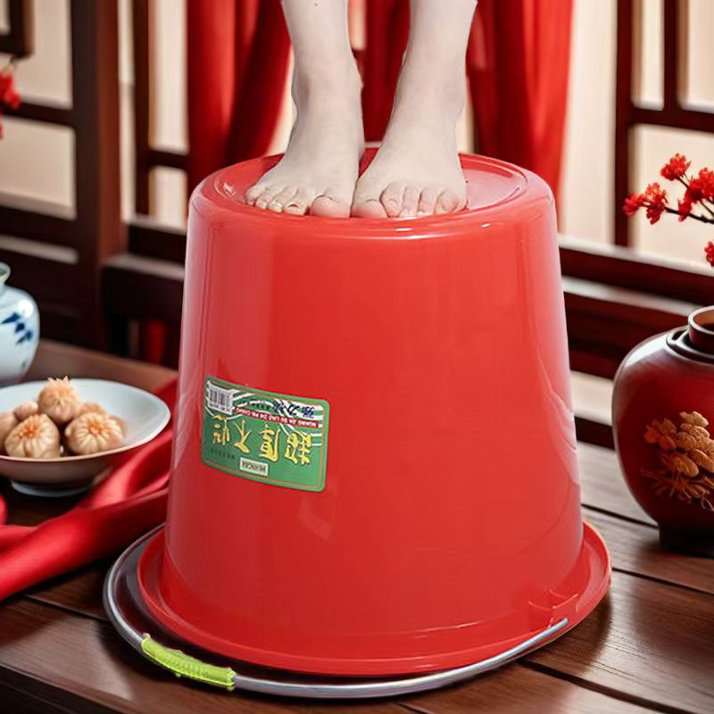 加厚红色喜字水桶大小号塑料储水桶家用洗脚洗车清洁洗衣带盖圆桶