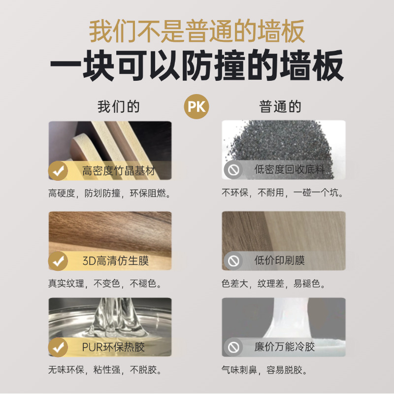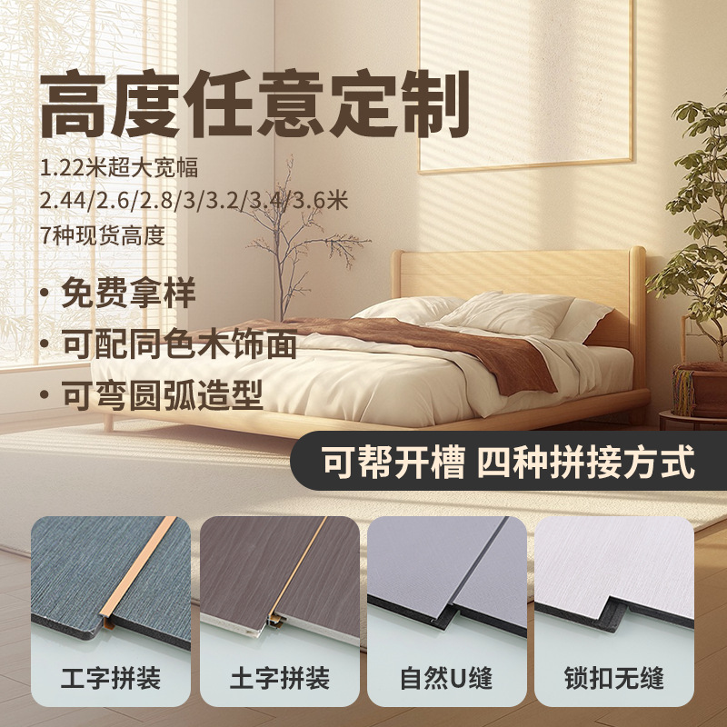 碳晶板大理石无缝家装工装快装竹炭木墙板轻奢酒店民宿快装护墙板