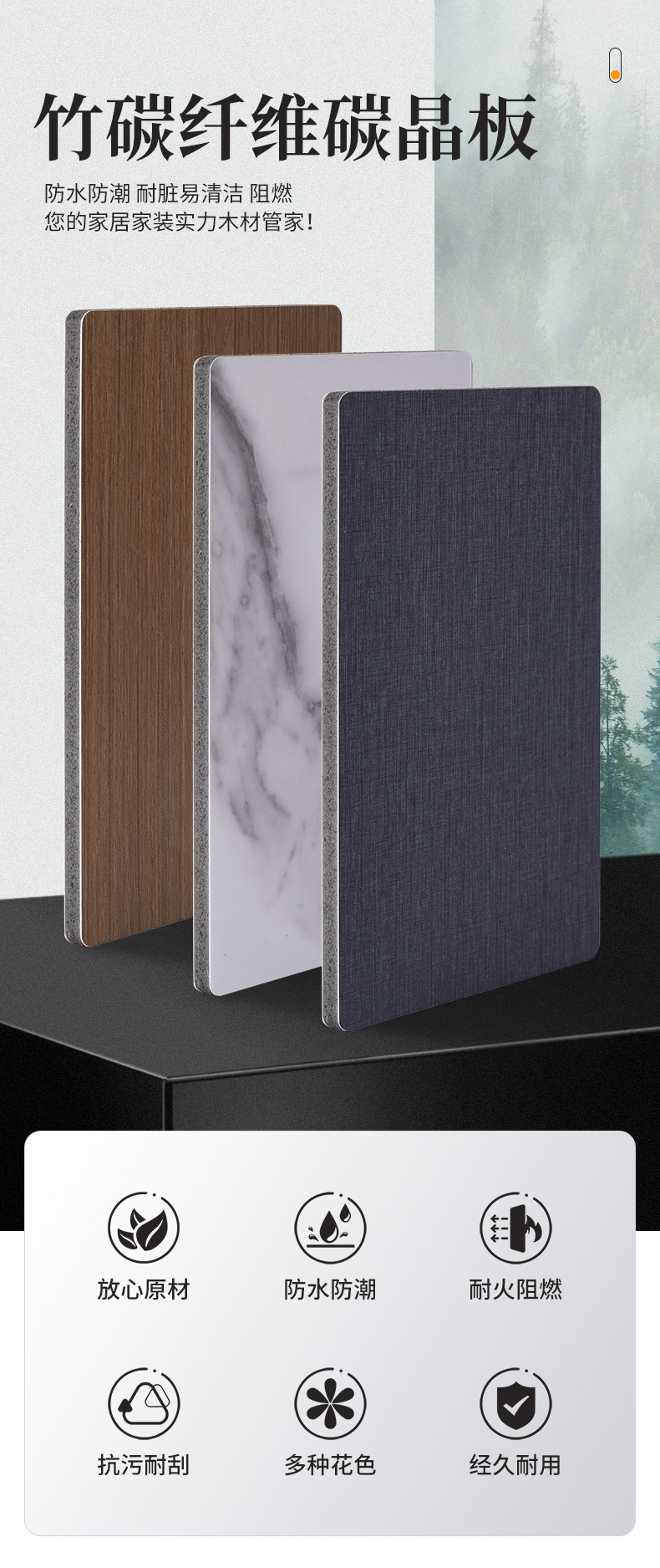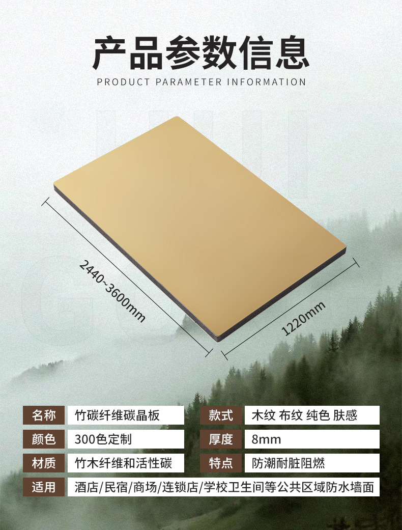 竹炭纤维碳晶板木饰面竹木纤维护墙板酒店家装背景环保室内装饰板