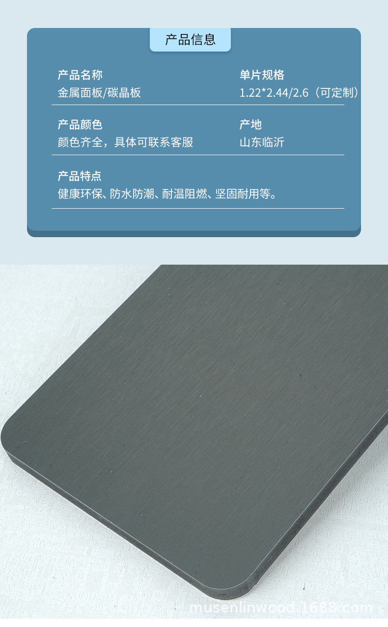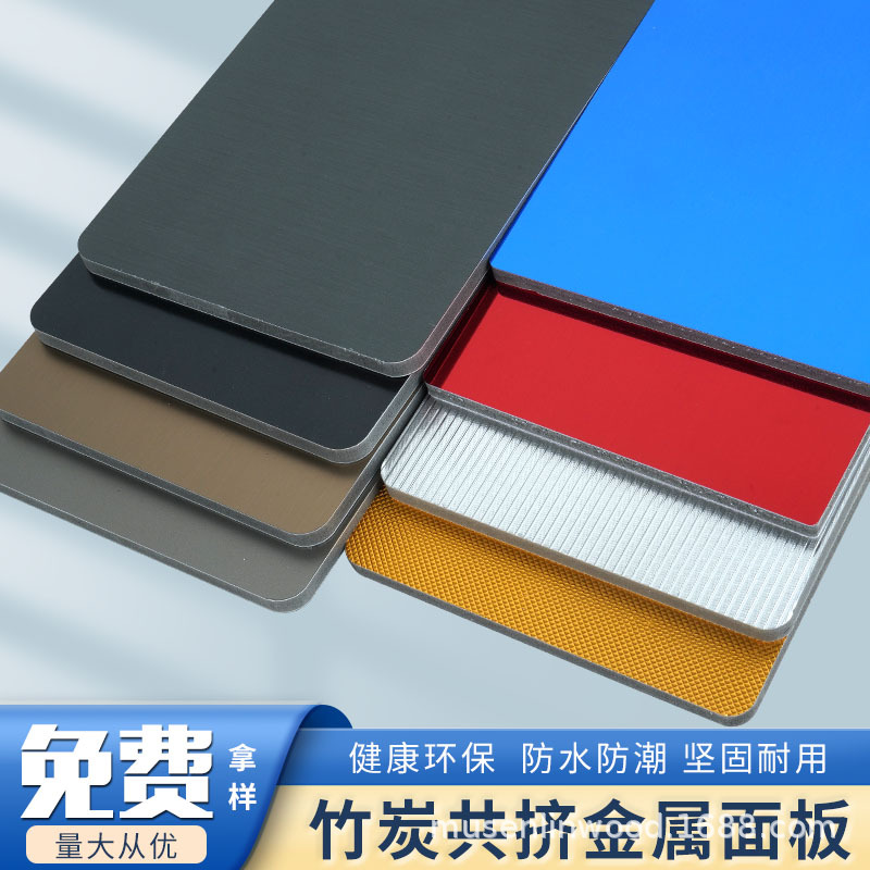 竹炭木饰面板碳晶板竹木纤维金属pet集成护墙板木饰面实心防水