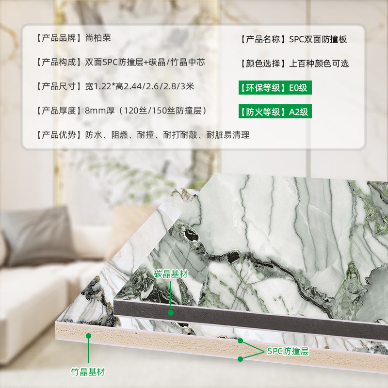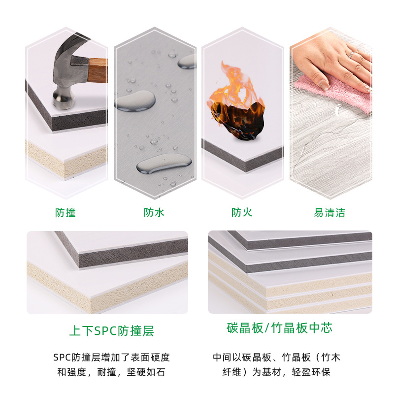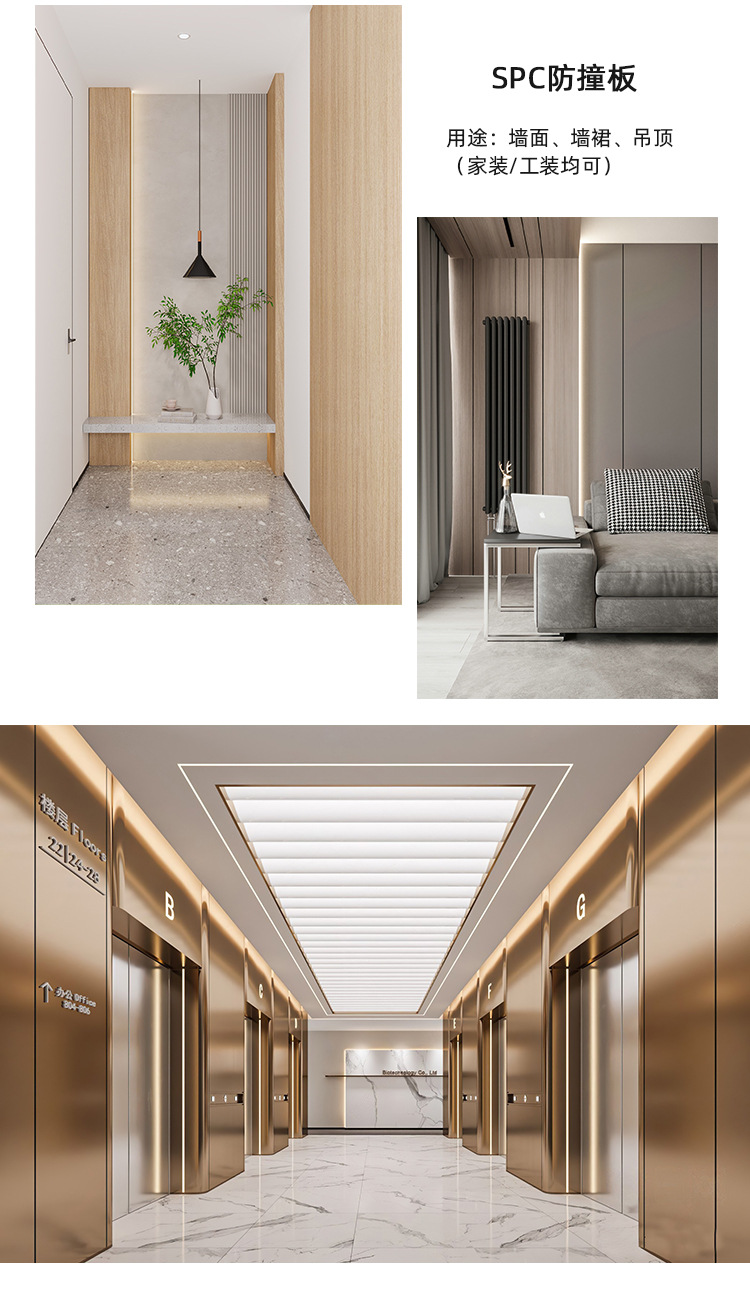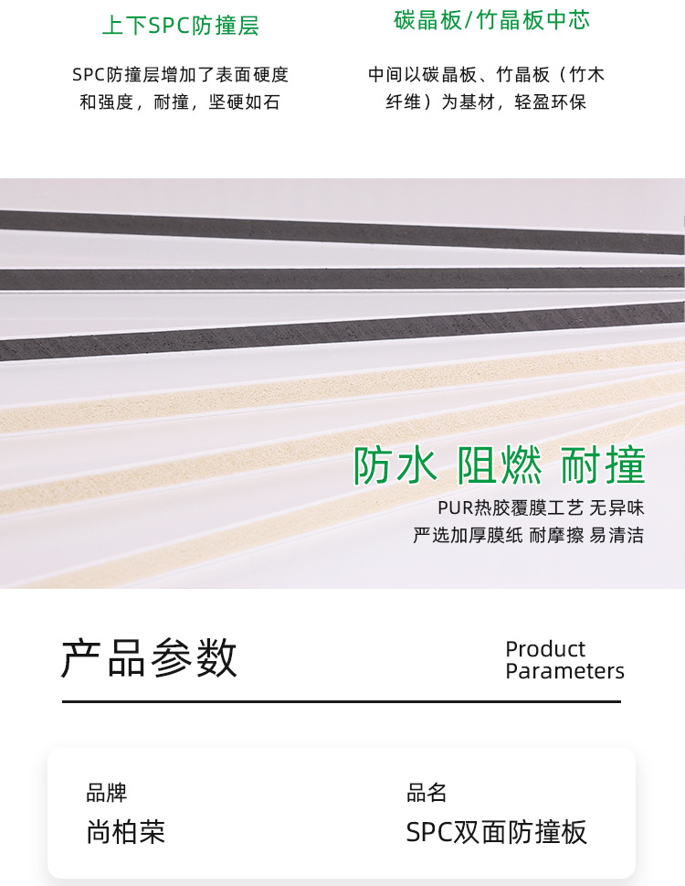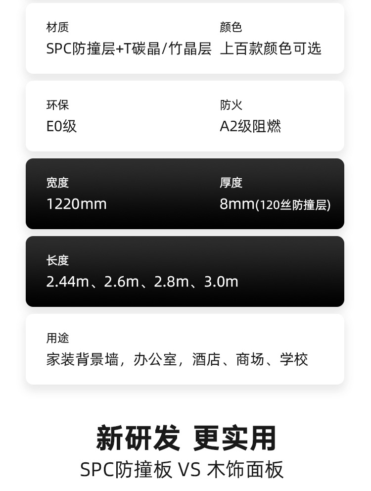 SPC防撞板轻奢简约背景墙木饰面板抗撞碳晶板竹木纤维护墙饰面板