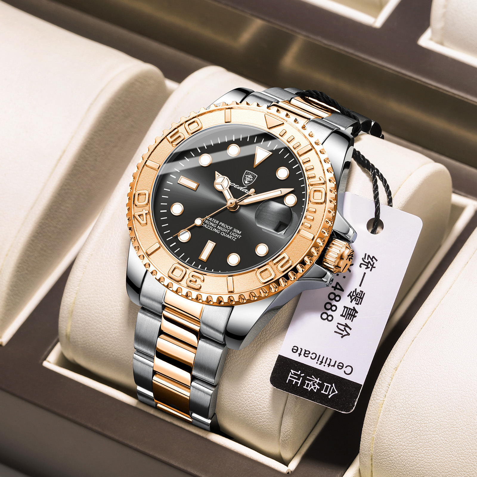 瑞士品牌新款防水夜光男士手表时尚石英腕表直播外贸爆款一件代发