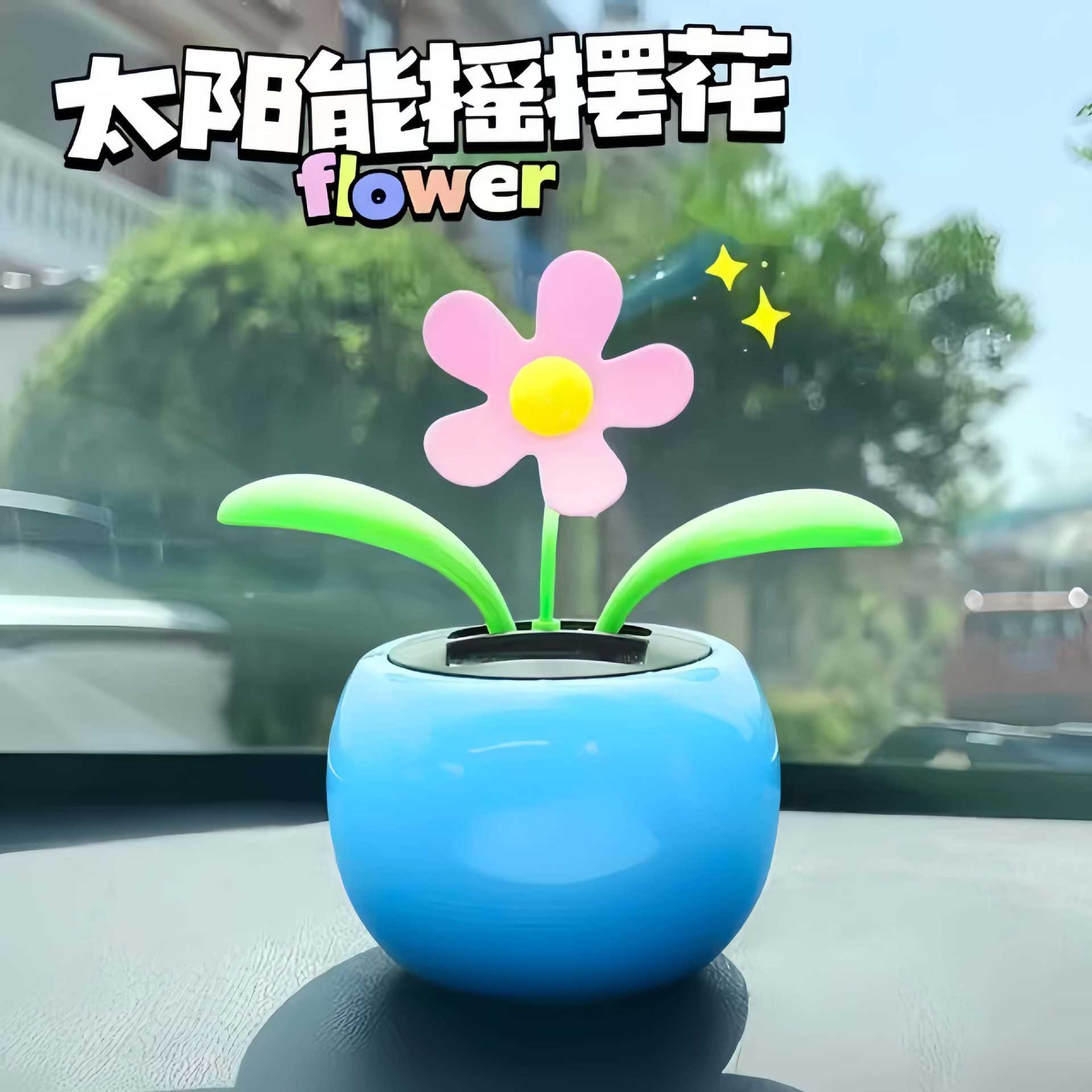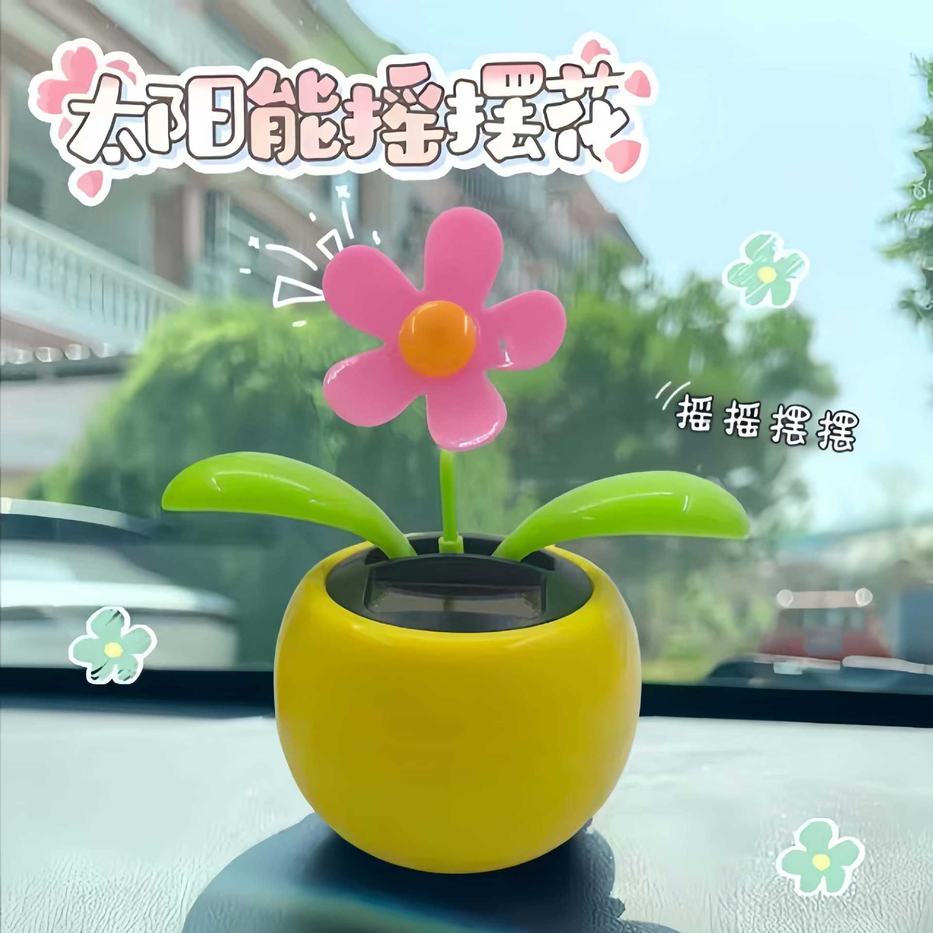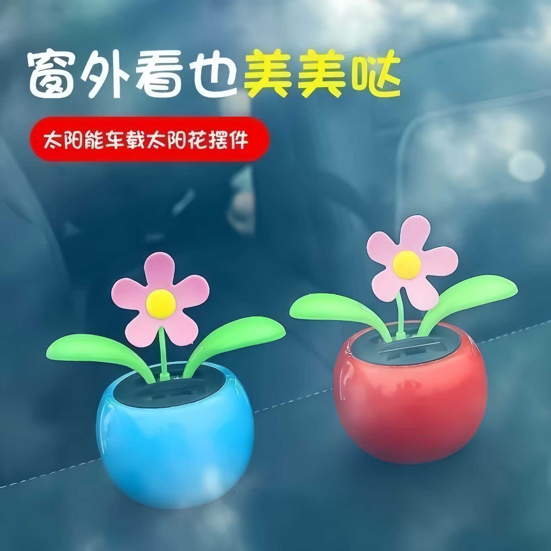 汽车内摆件创意网红可爱太阳能摇摆苹果花小车上车载装饰品太阳花