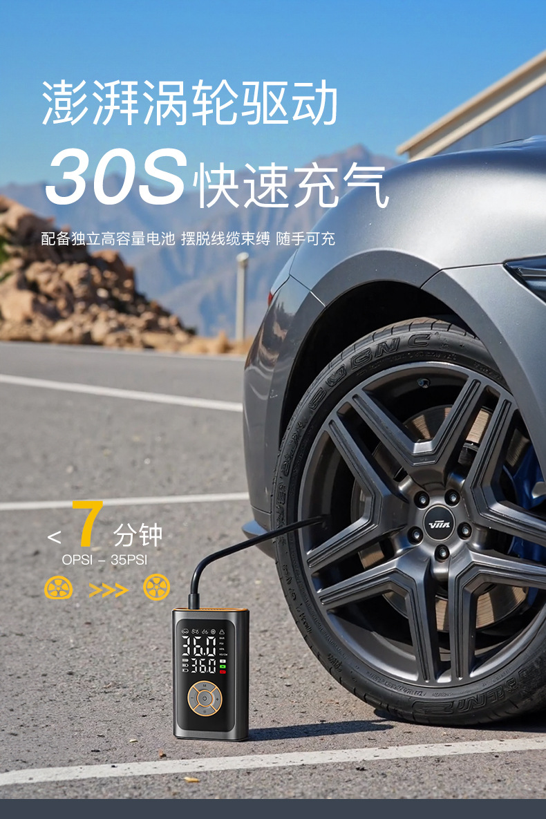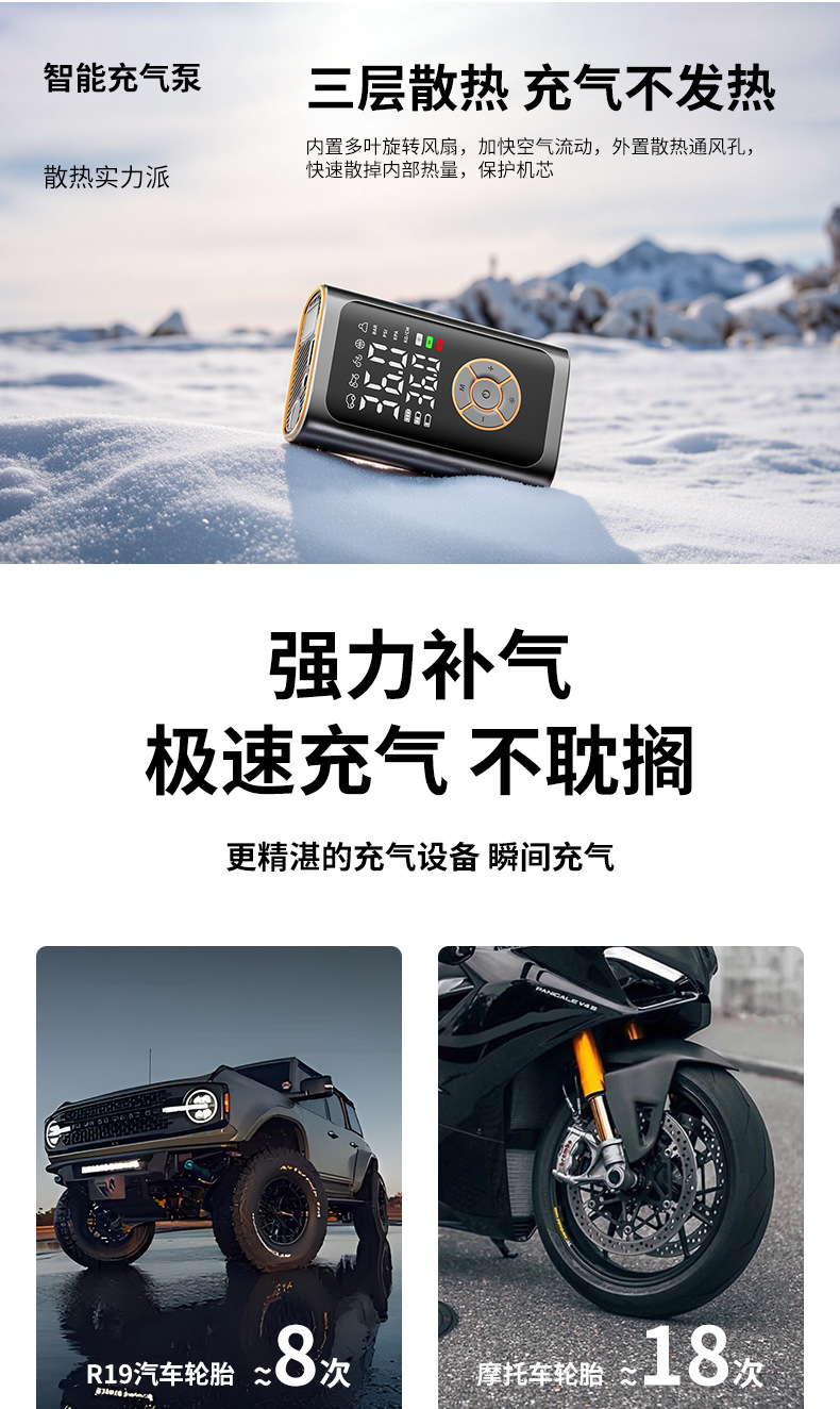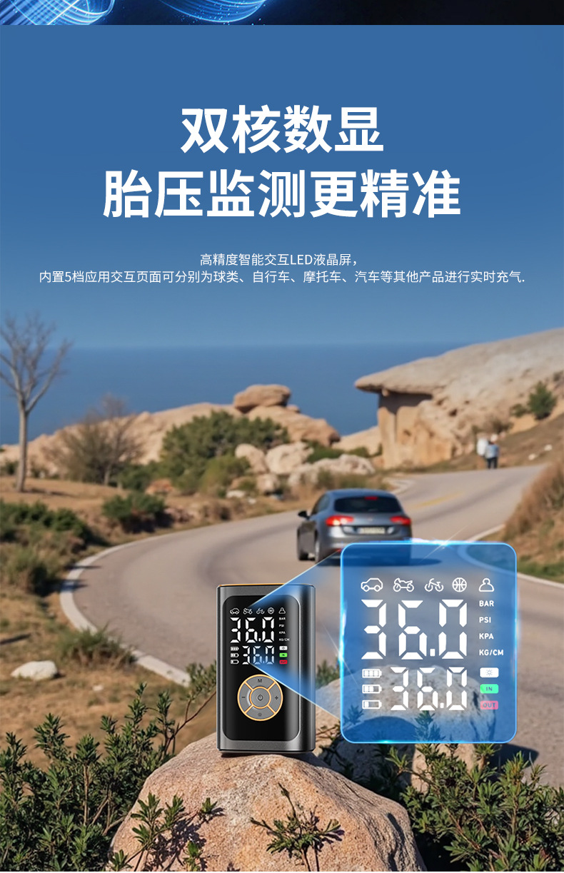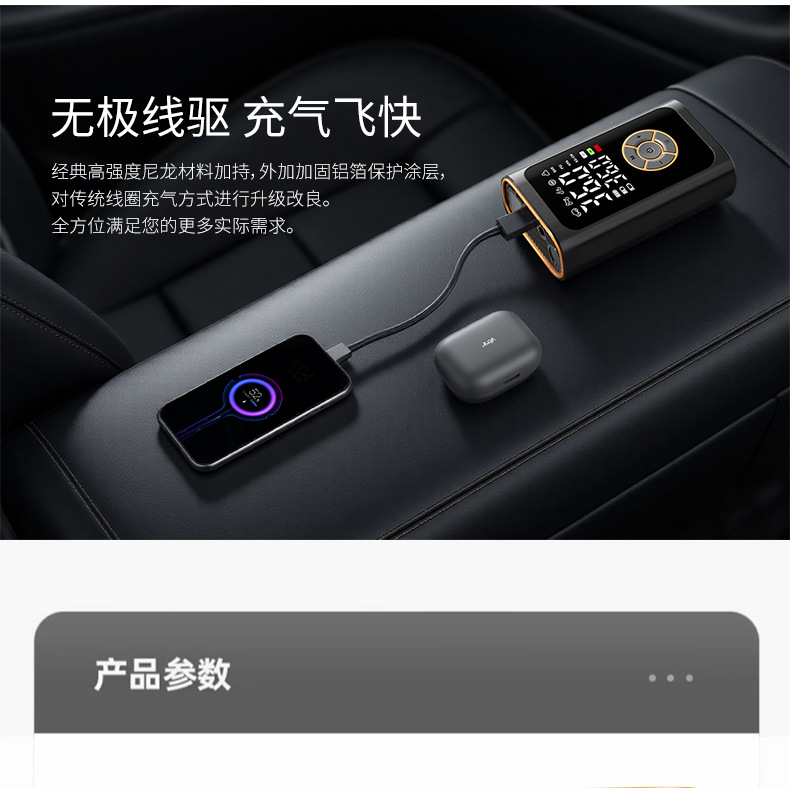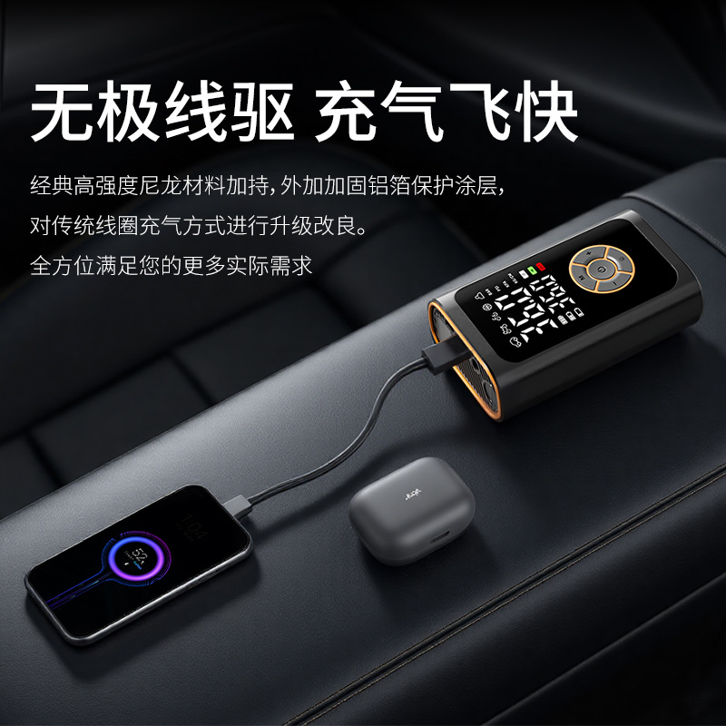 便携车载智能汽车充气泵无线数显打气筒多功能轮胎用打气泵充电宝