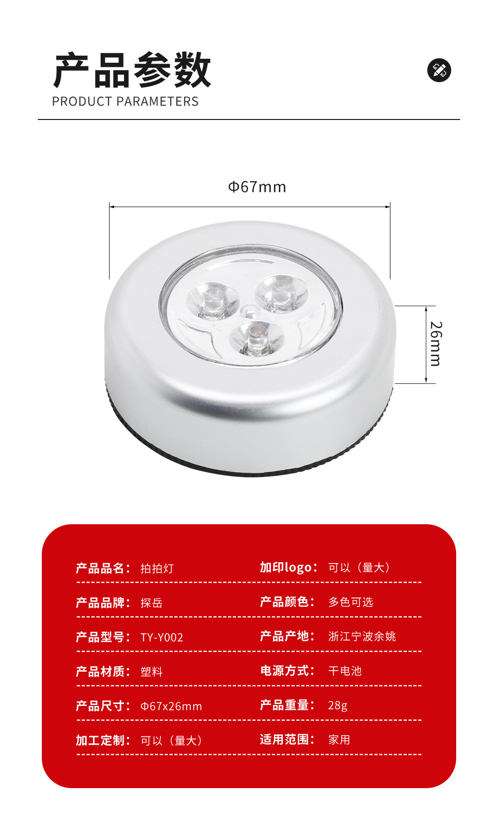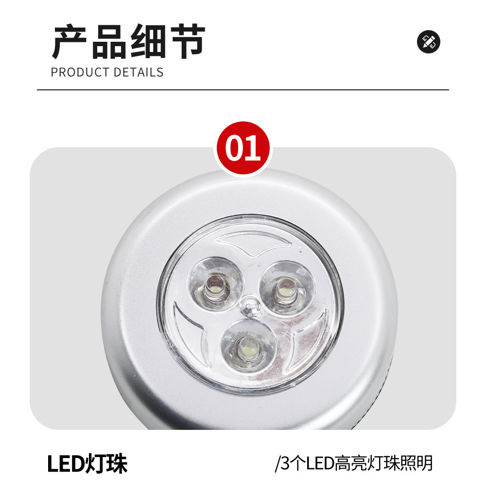 3LED圆形小夜灯带背胶壁柜灯干电池款应急照明灯触摸灯