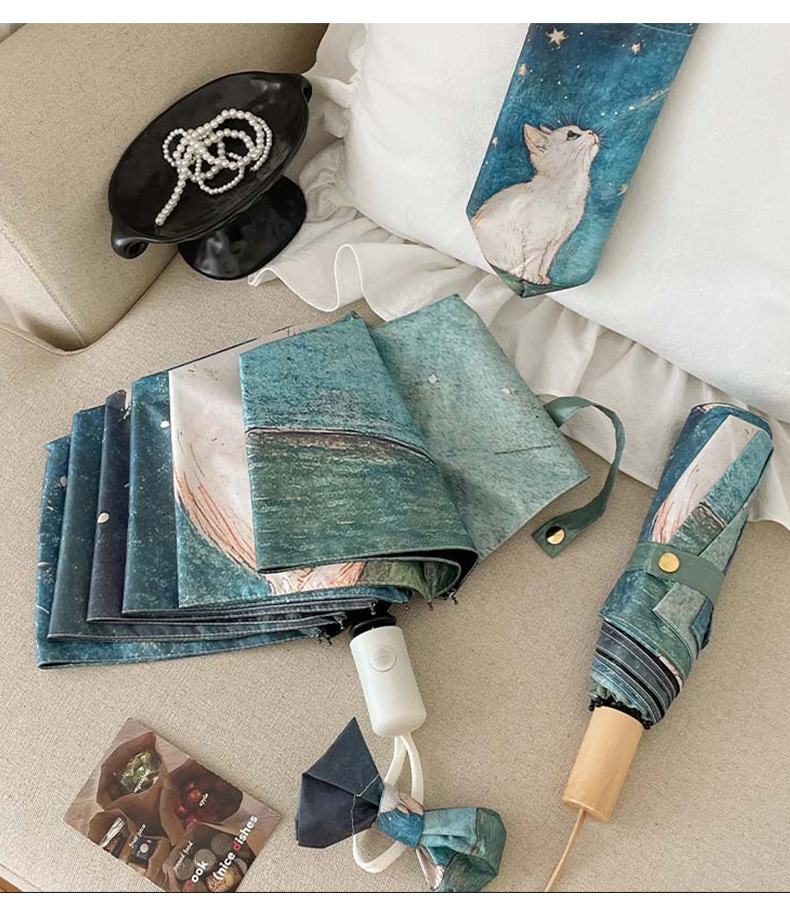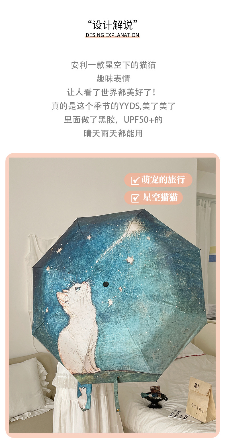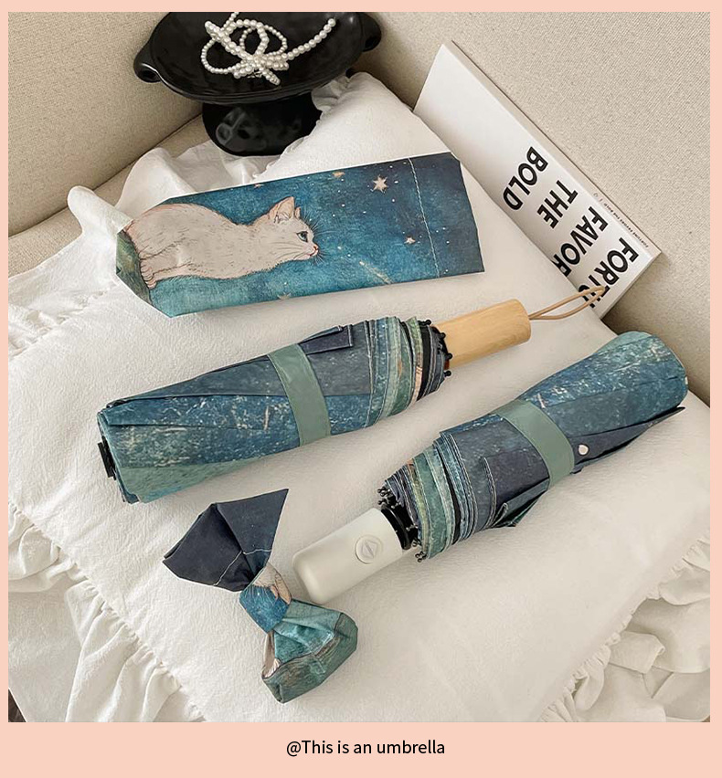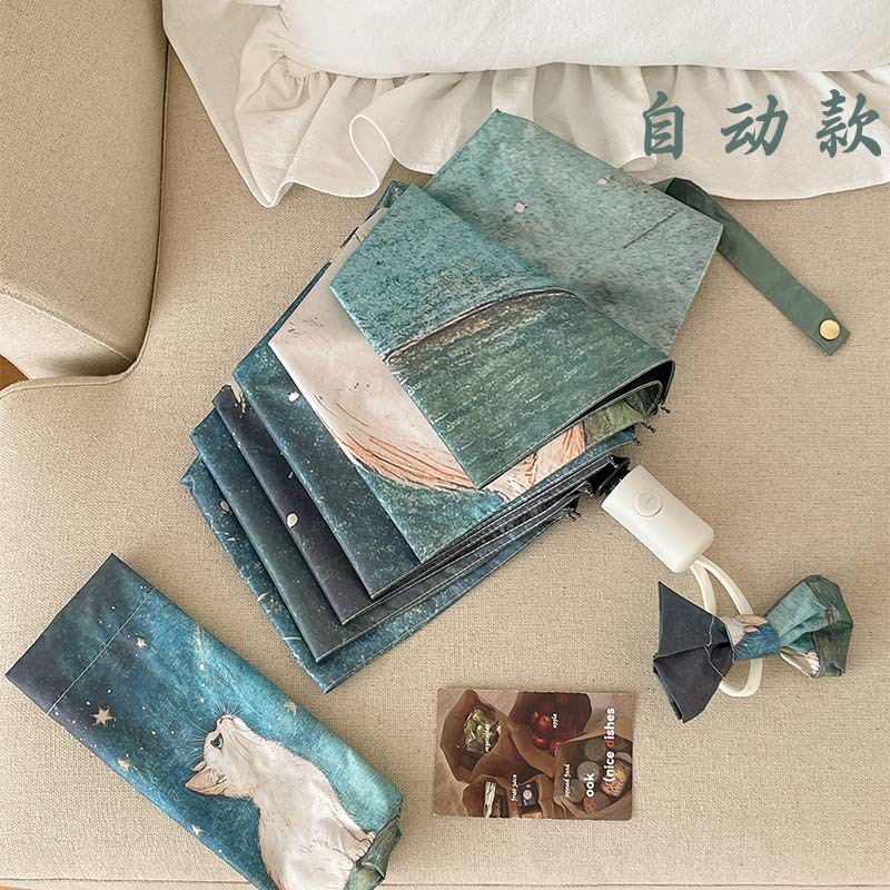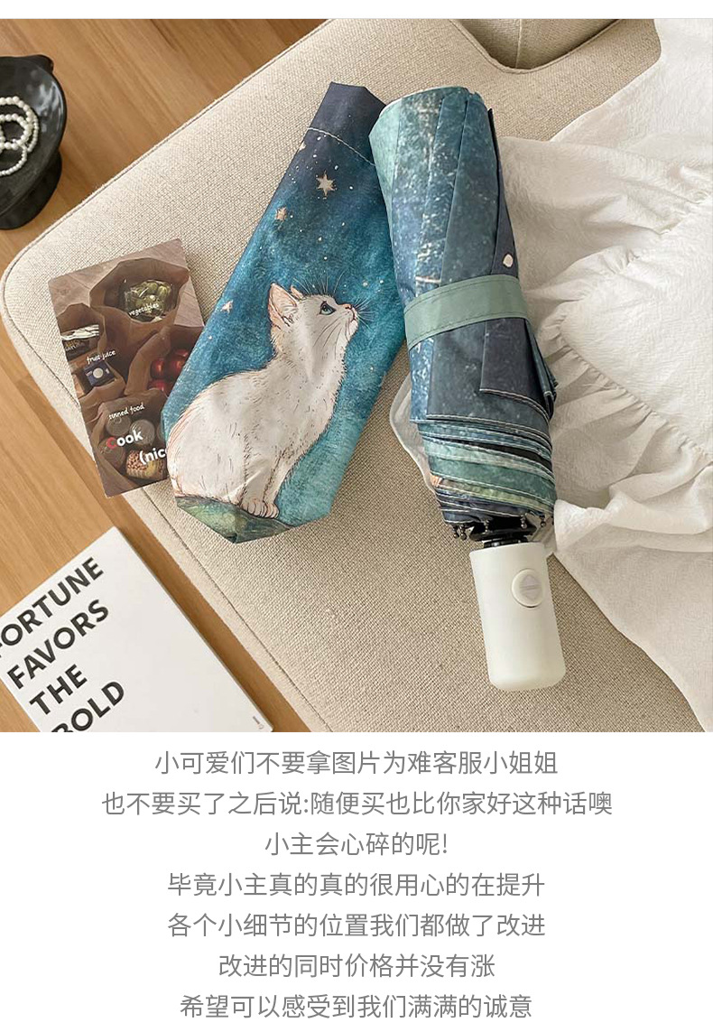 可爱猫咪全自动晴雨伞两用折叠伞遮阳伞女防晒防紫外线三折伞手开