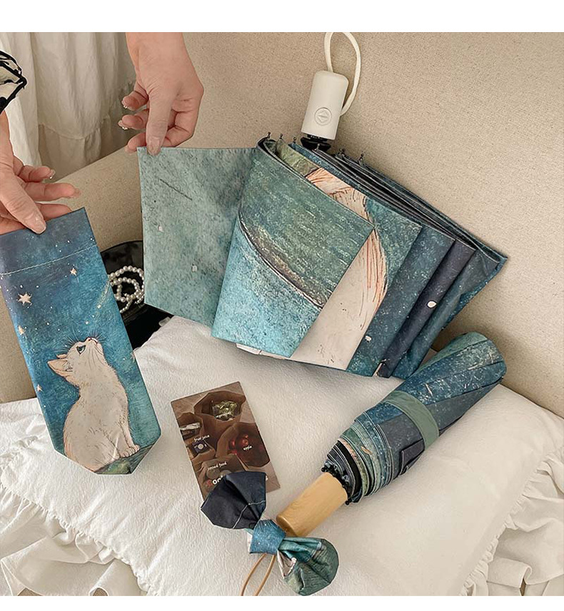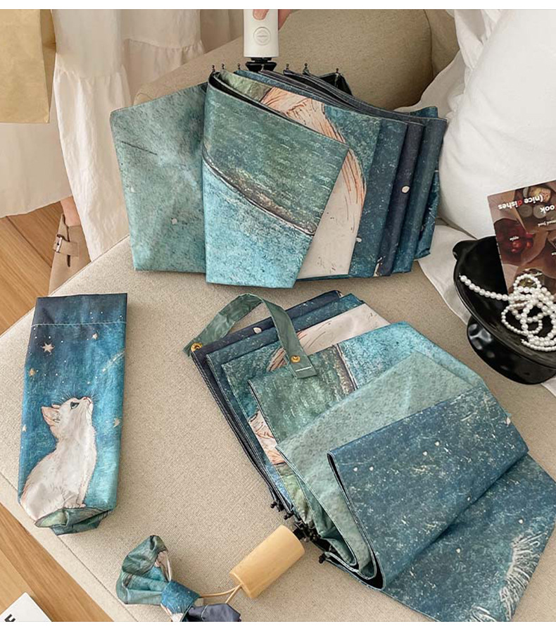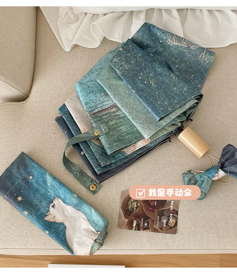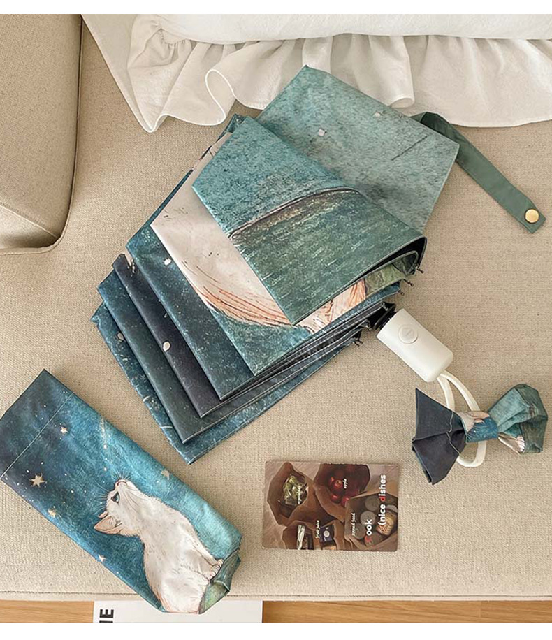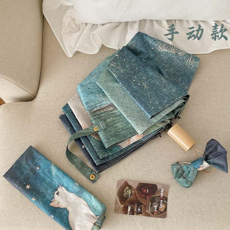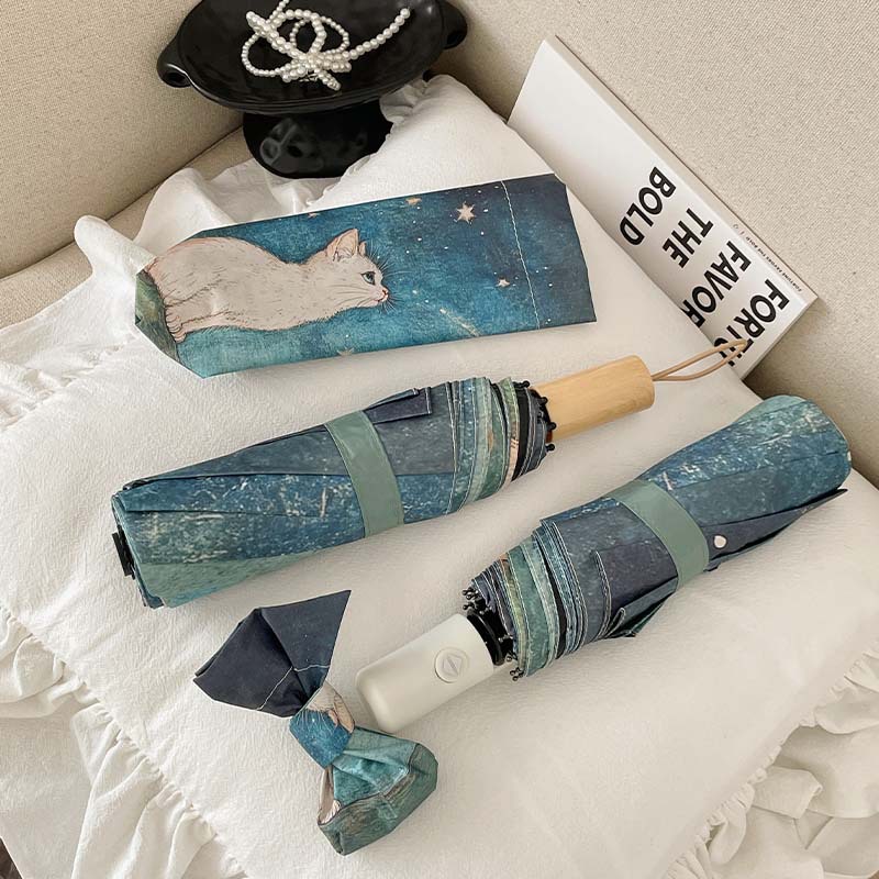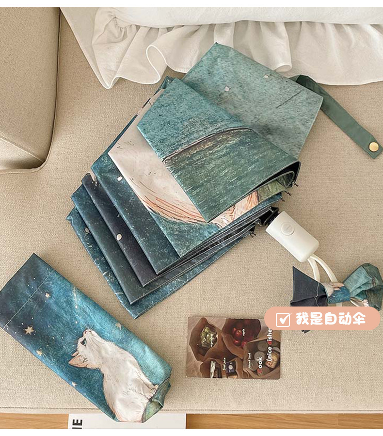 可爱猫咪全自动晴雨伞两用折叠伞遮阳伞女防晒防紫外线三折伞手开