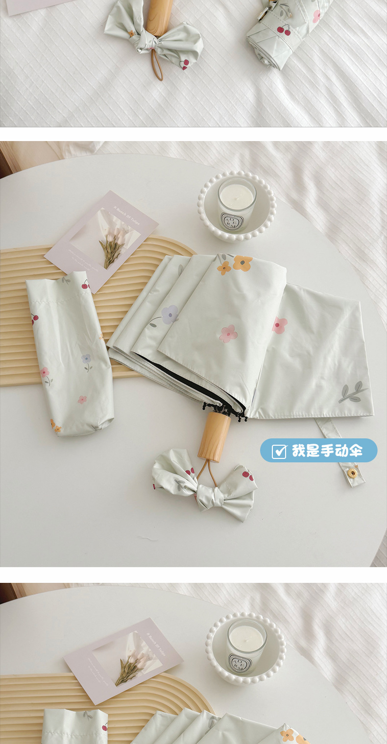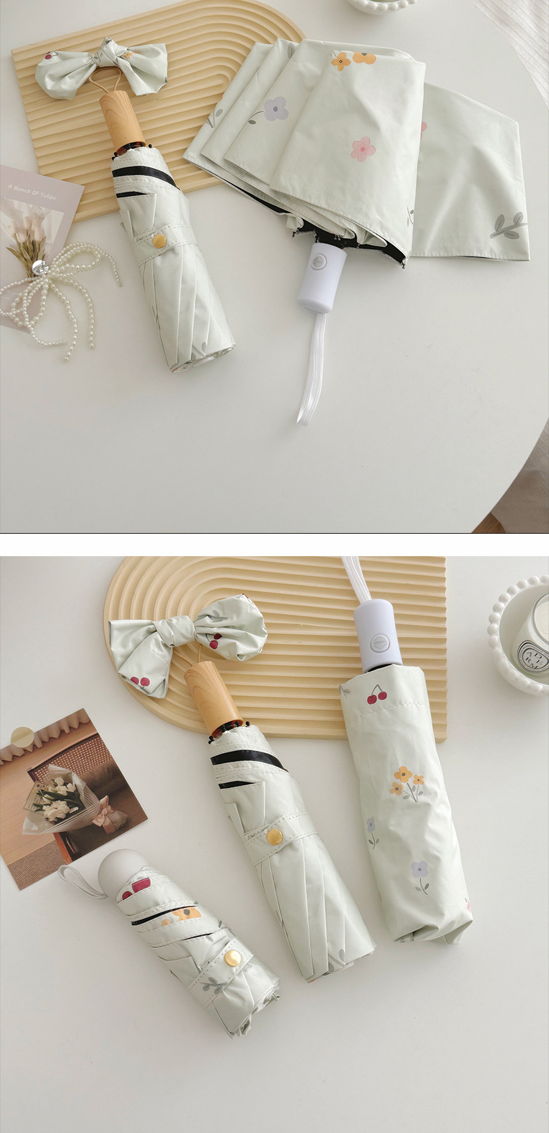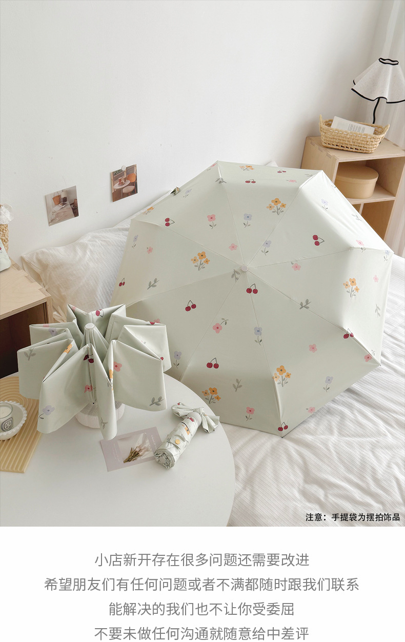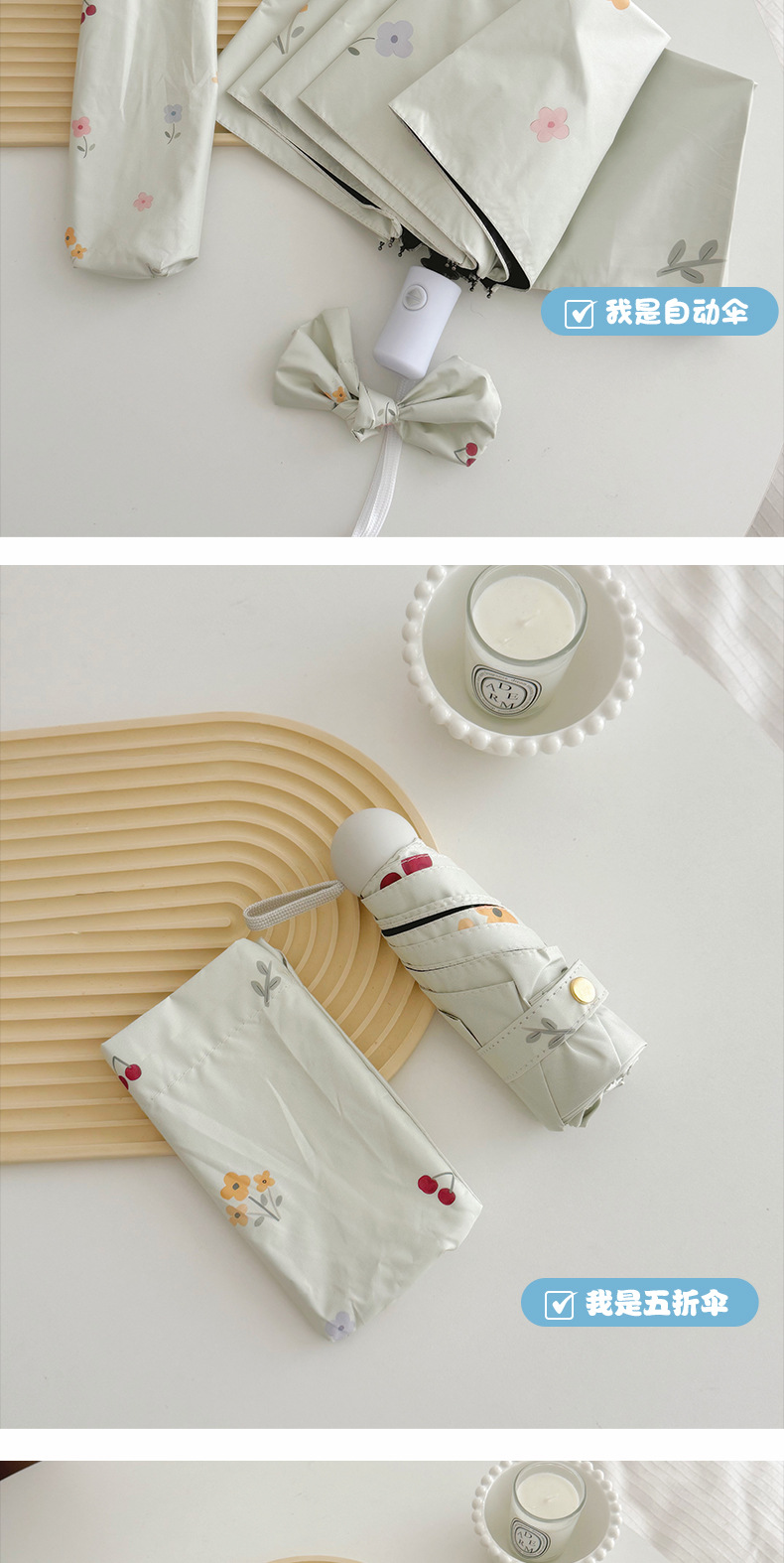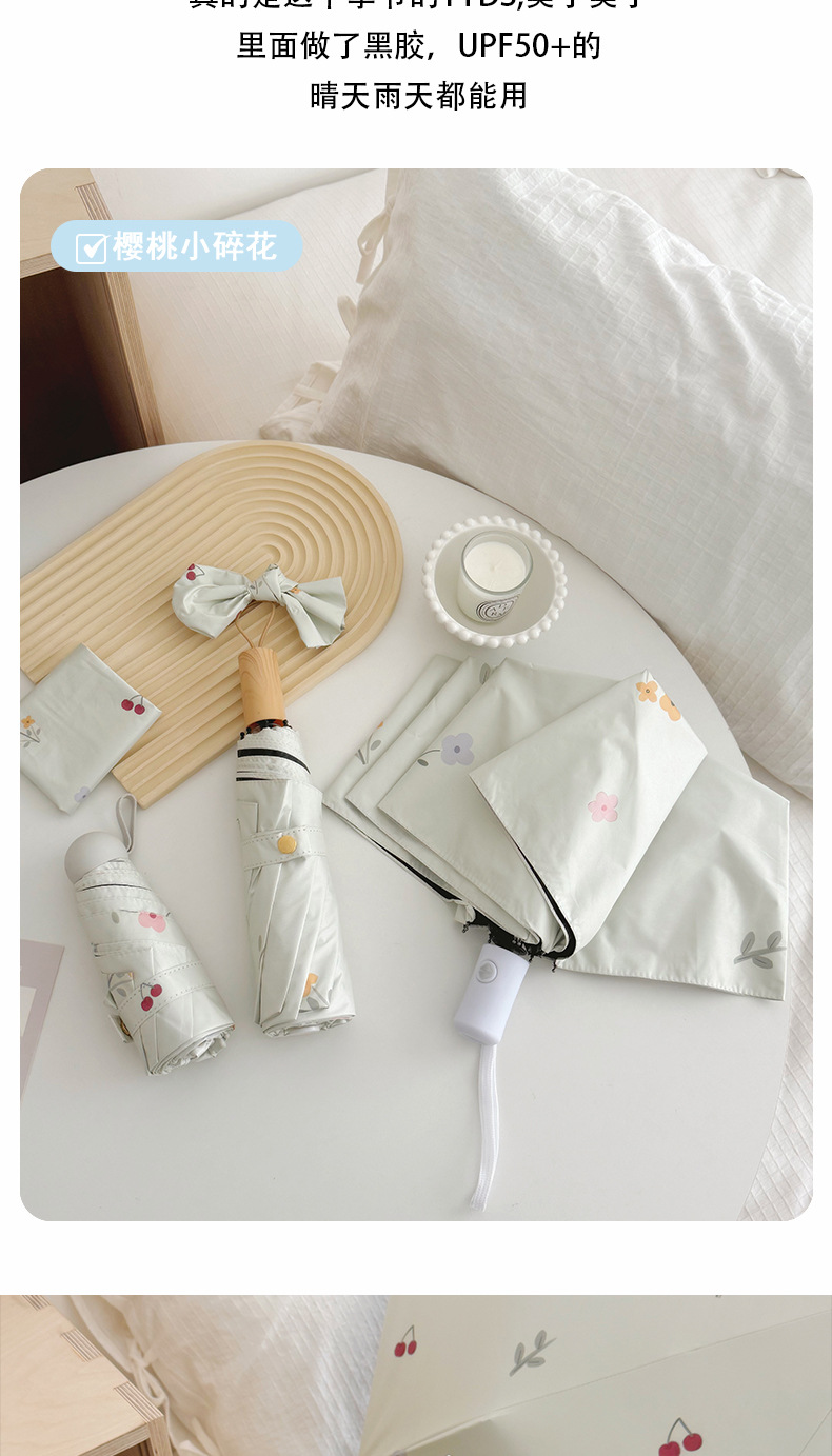 ins田园风碎花自动伞 防晒遮阳伞女学生三折晴雨两用伞折叠白色
