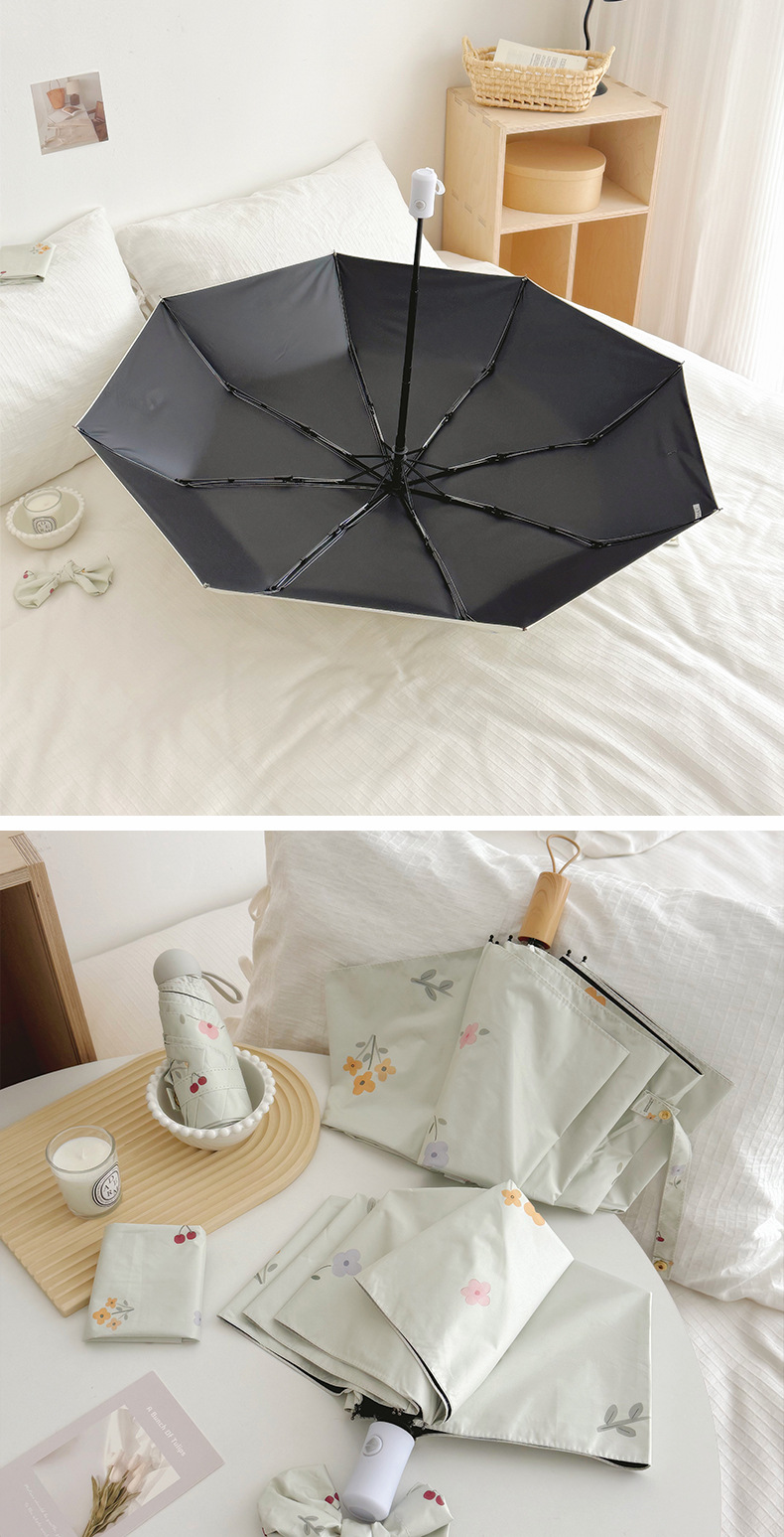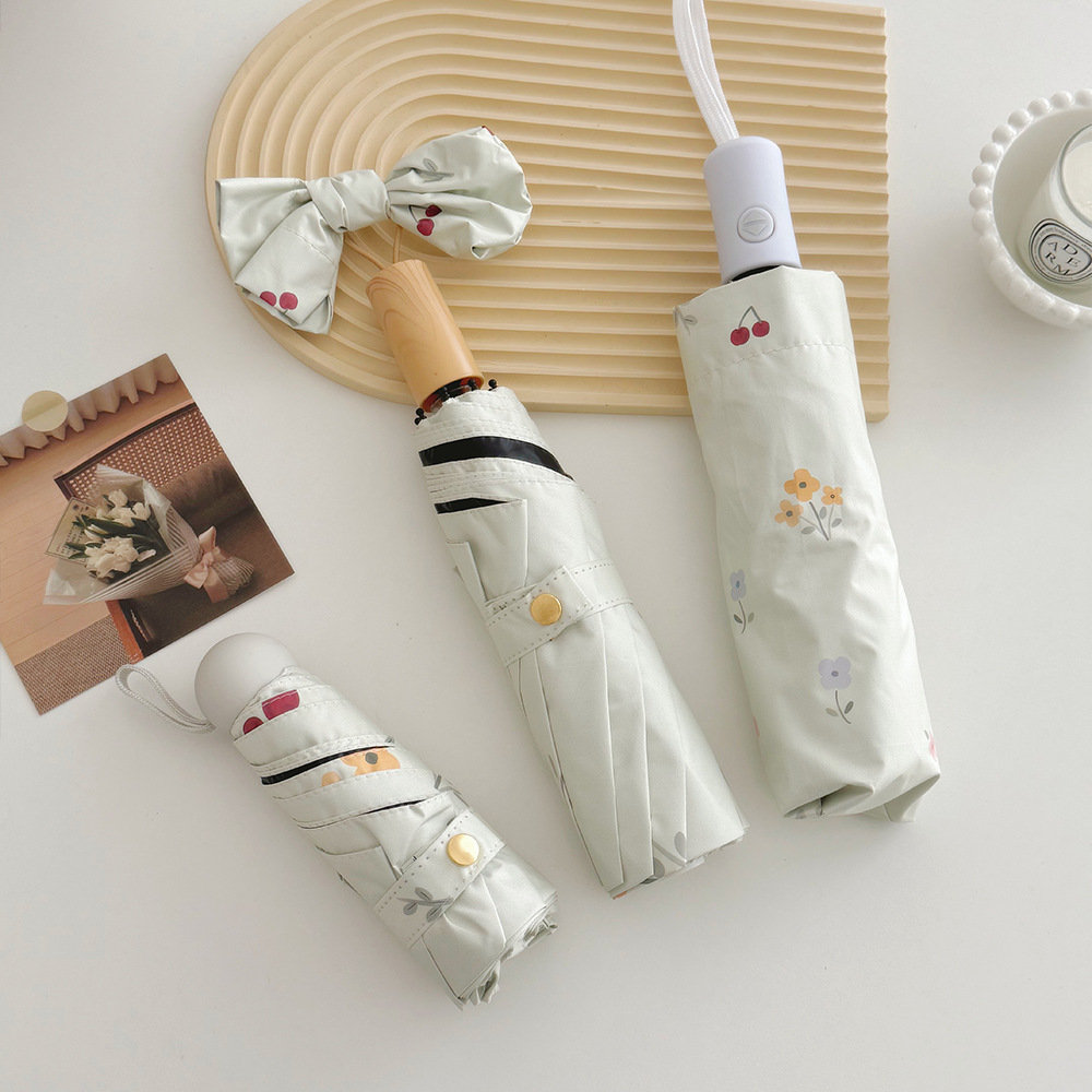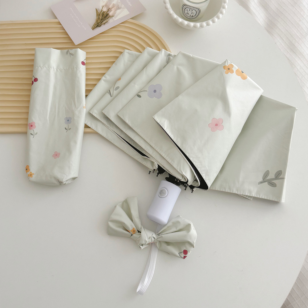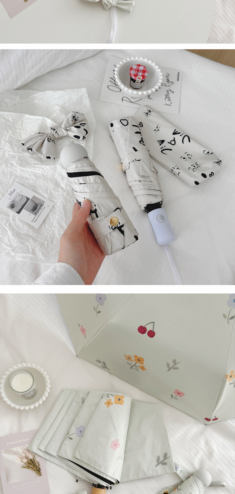 ins田园风碎花自动伞 防晒遮阳伞女学生三折晴雨两用伞折叠白色