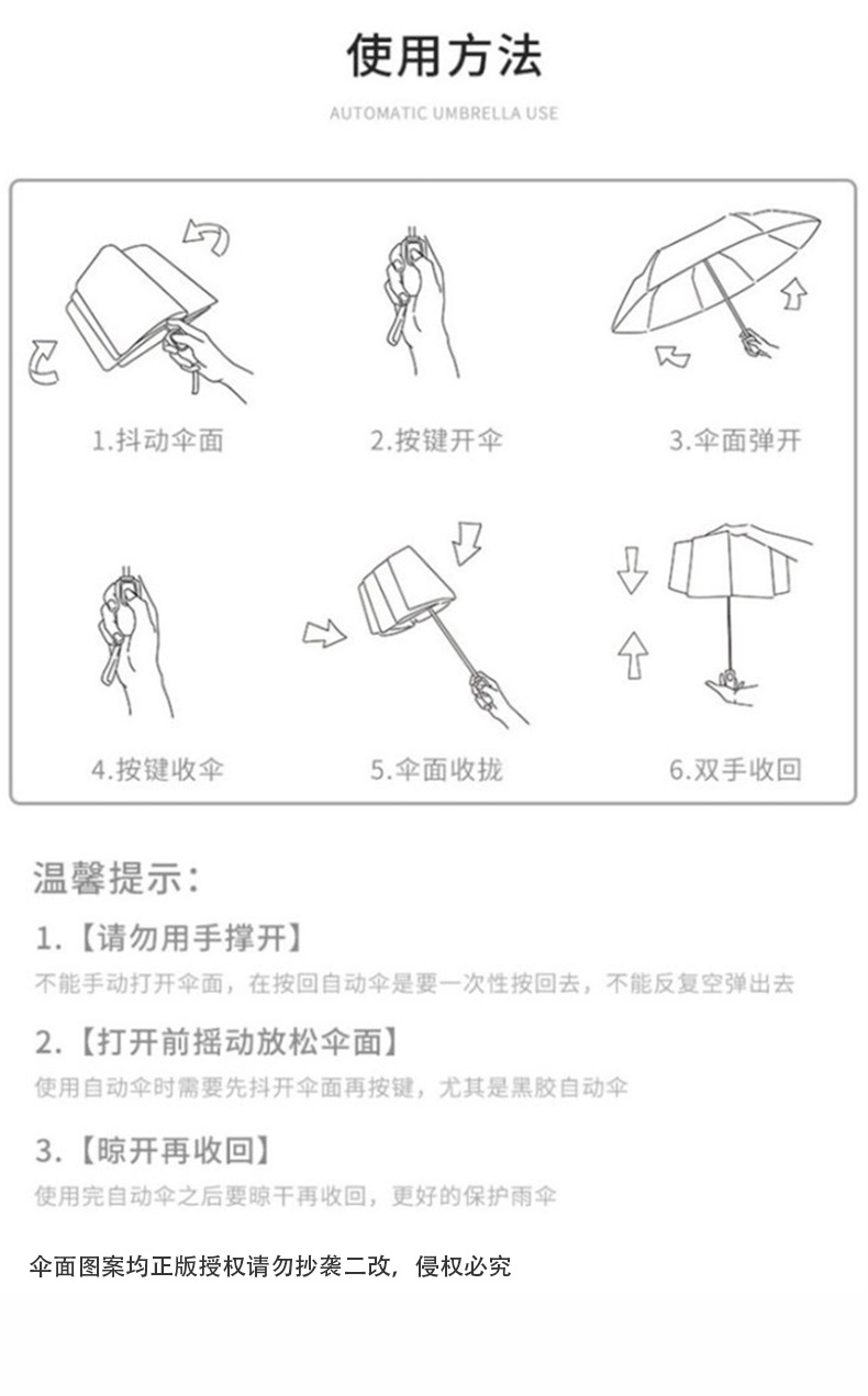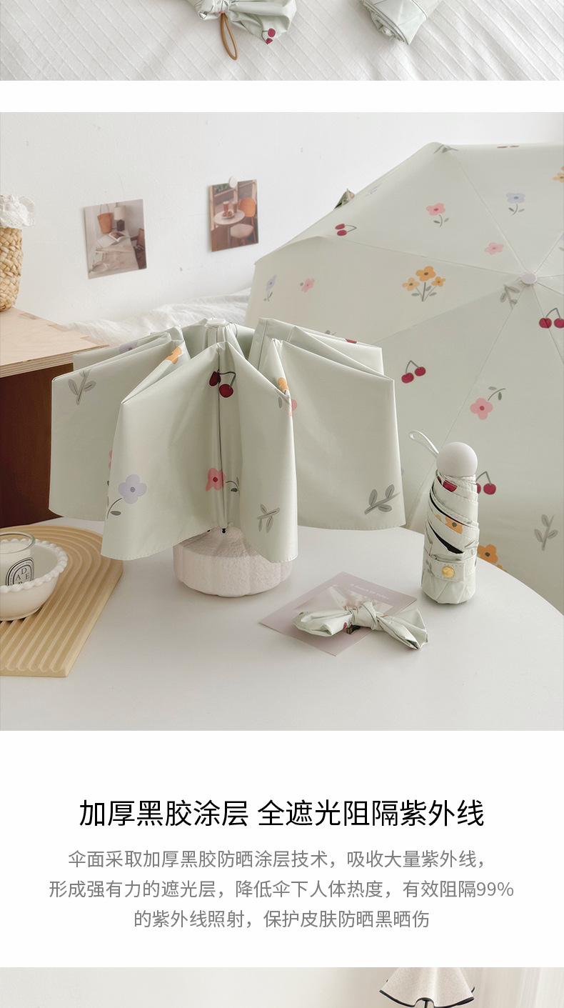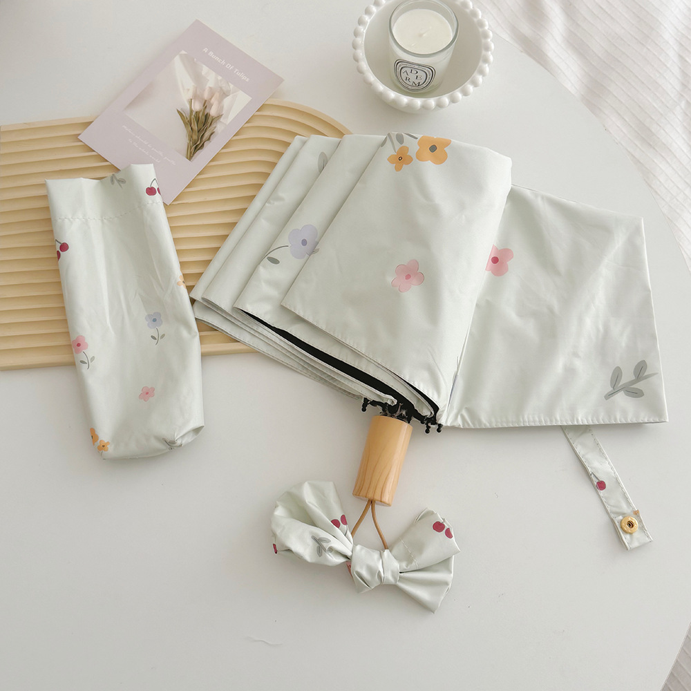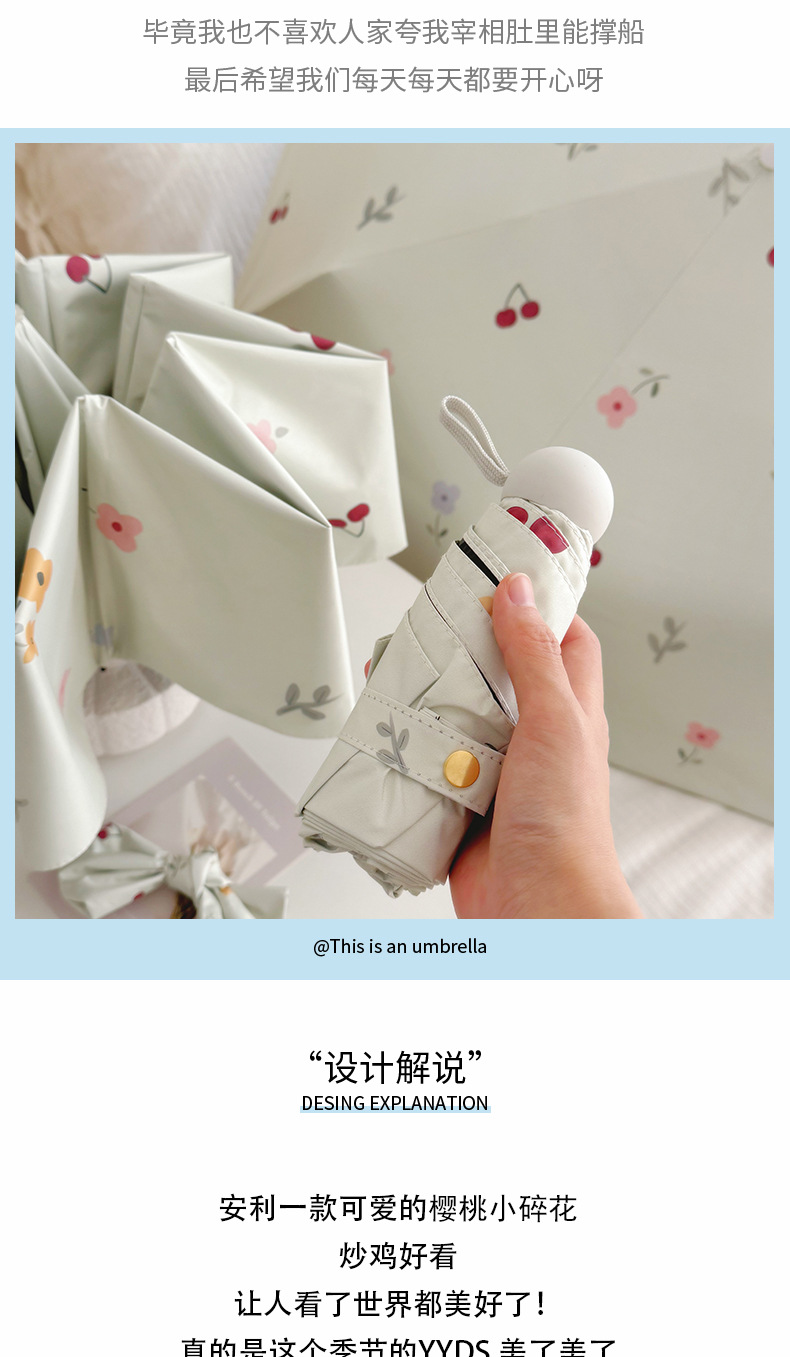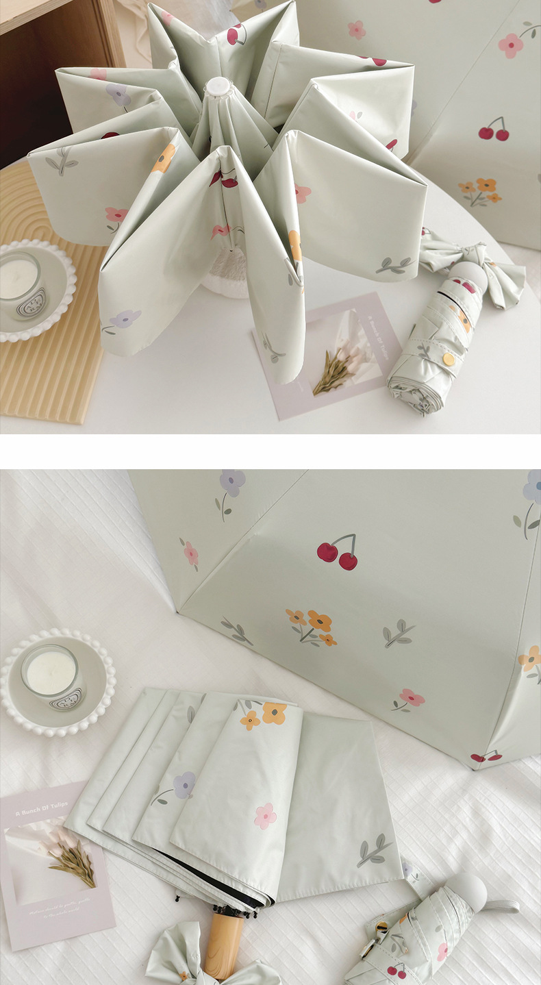ins田园风碎花自动伞 防晒遮阳伞女学生三折晴雨两用伞折叠白色