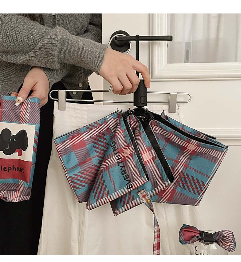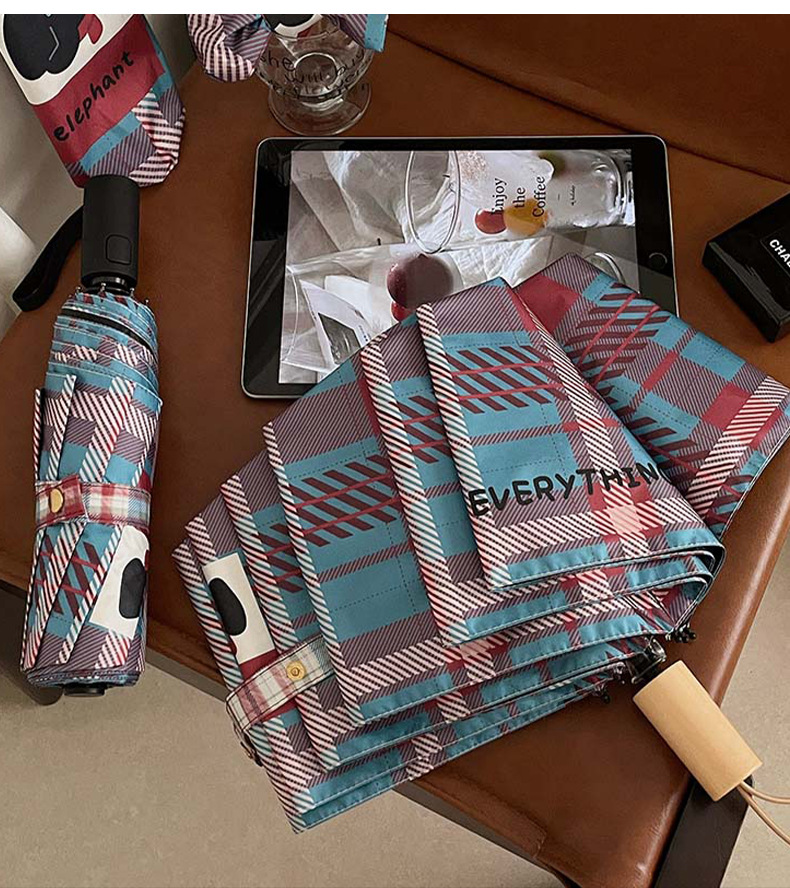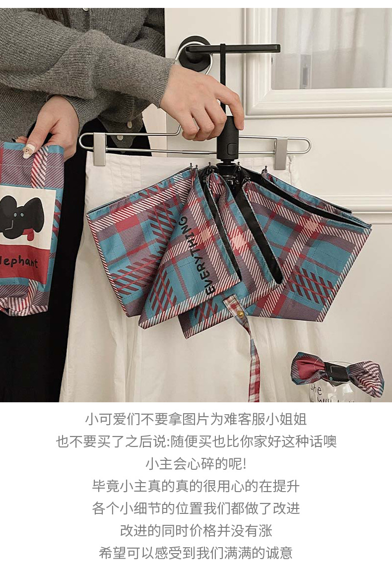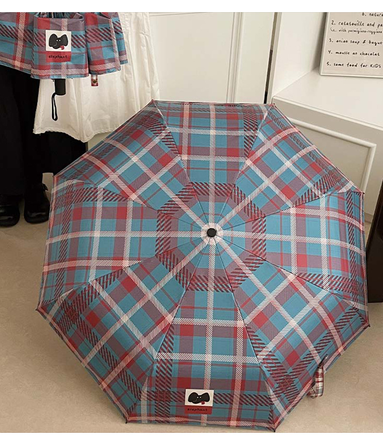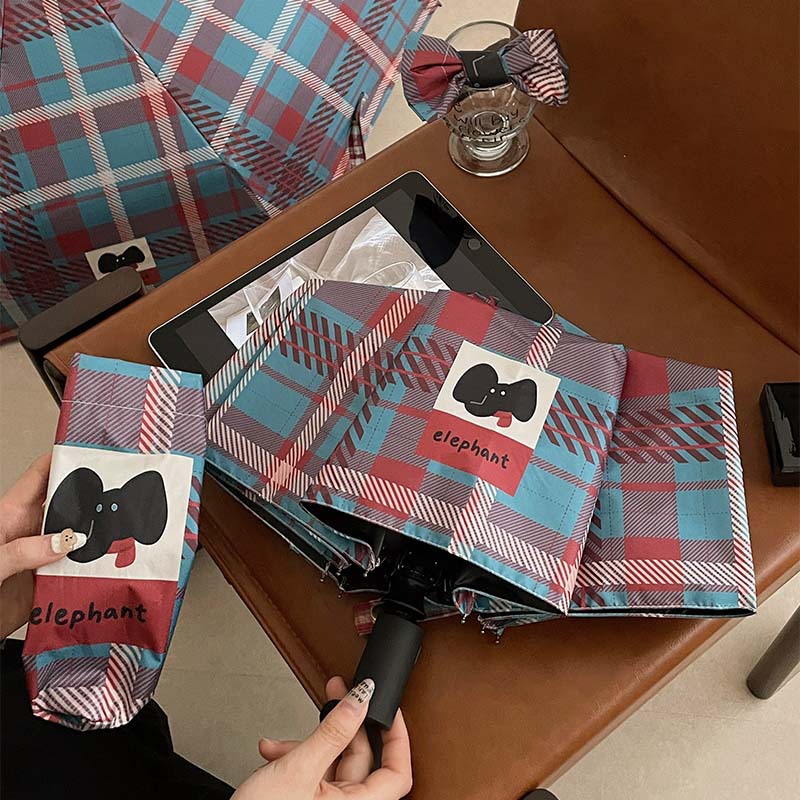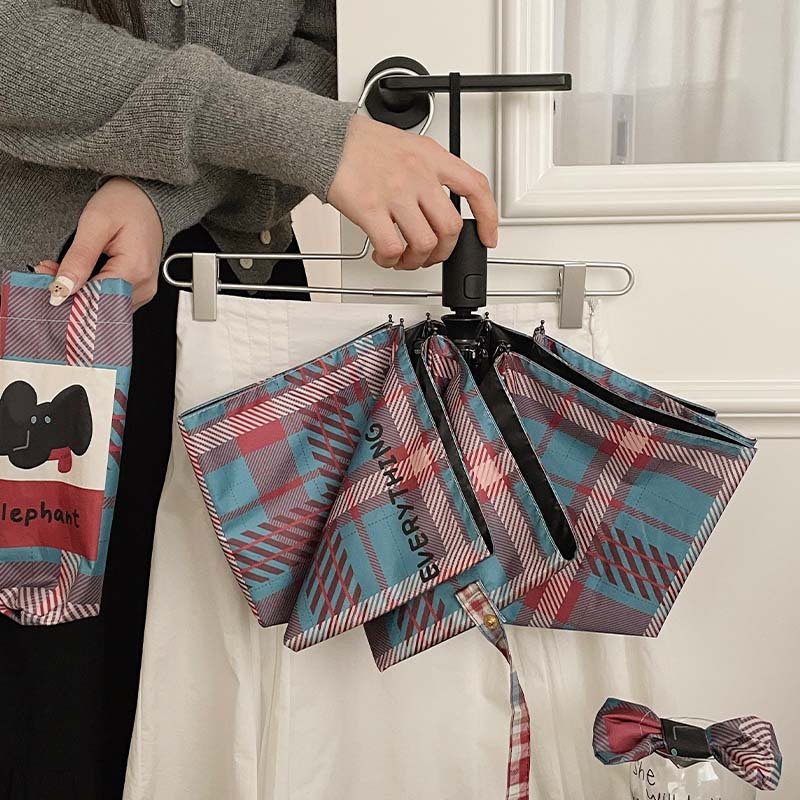 复古蓝粉格子折叠伞全自动卡通学生晴雨伞遮阳伞防晒黑胶太阳伞