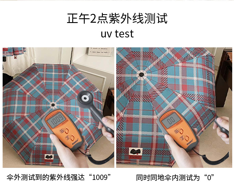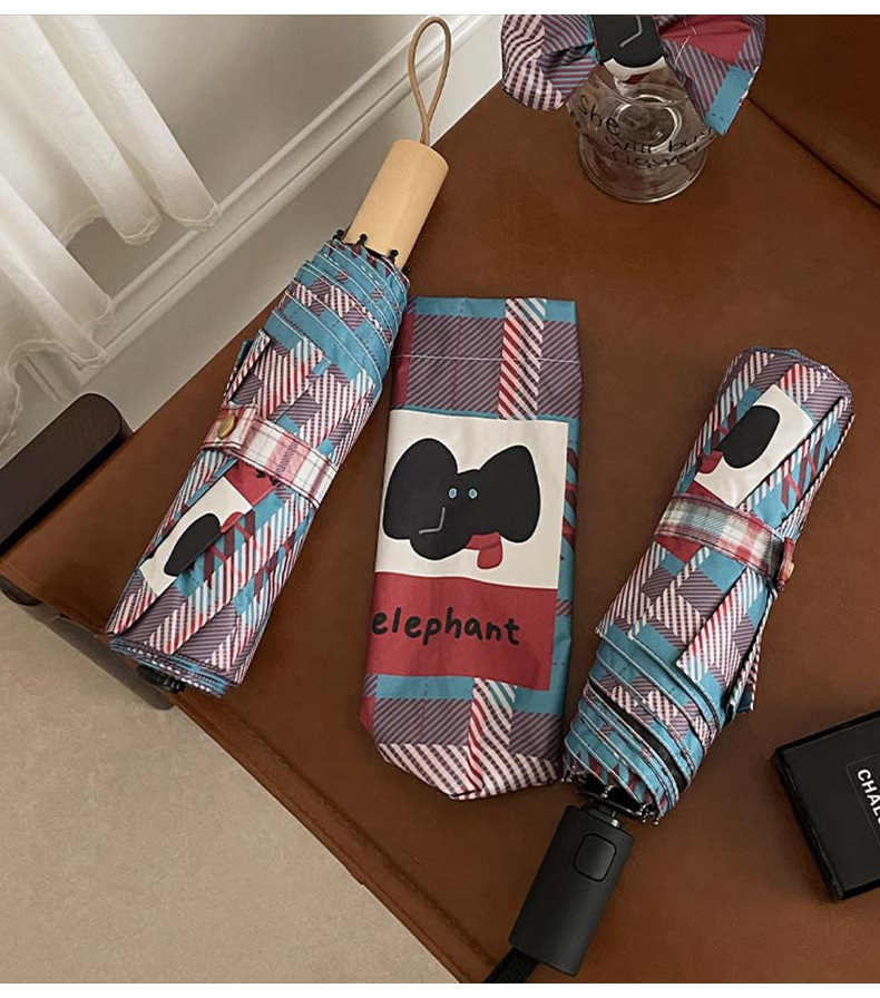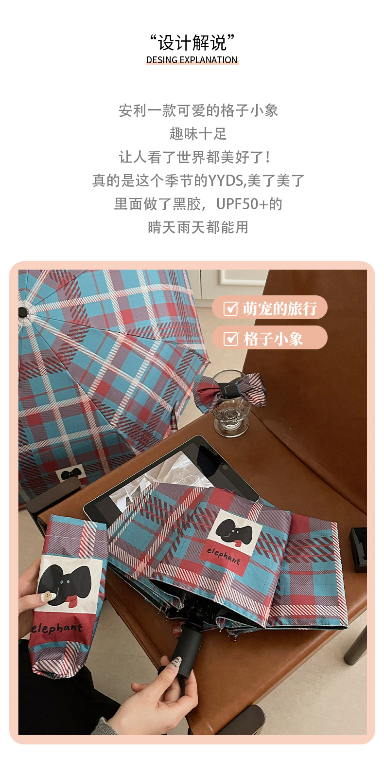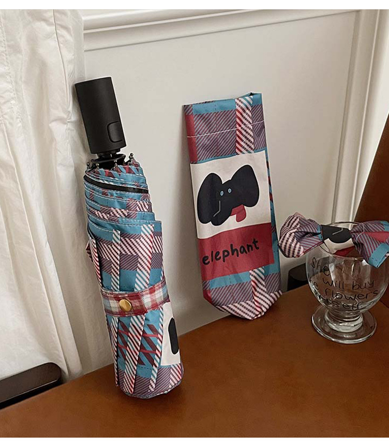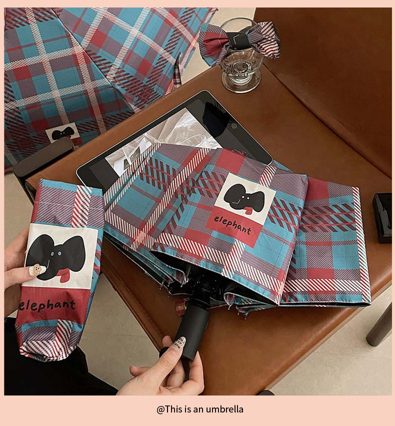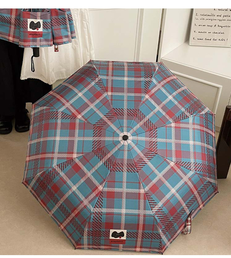 复古蓝粉格子折叠伞全自动卡通学生晴雨伞遮阳伞防晒黑胶太阳伞