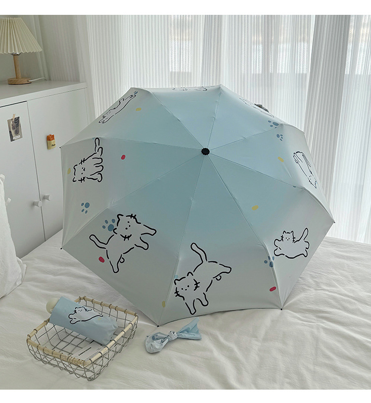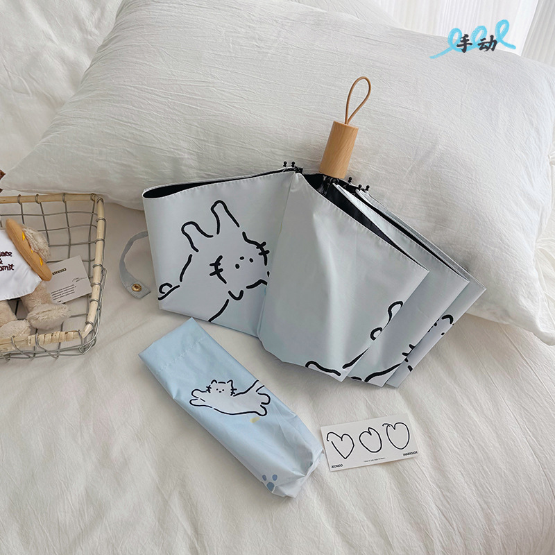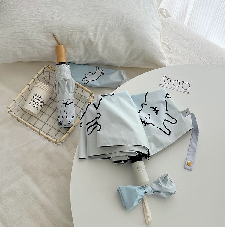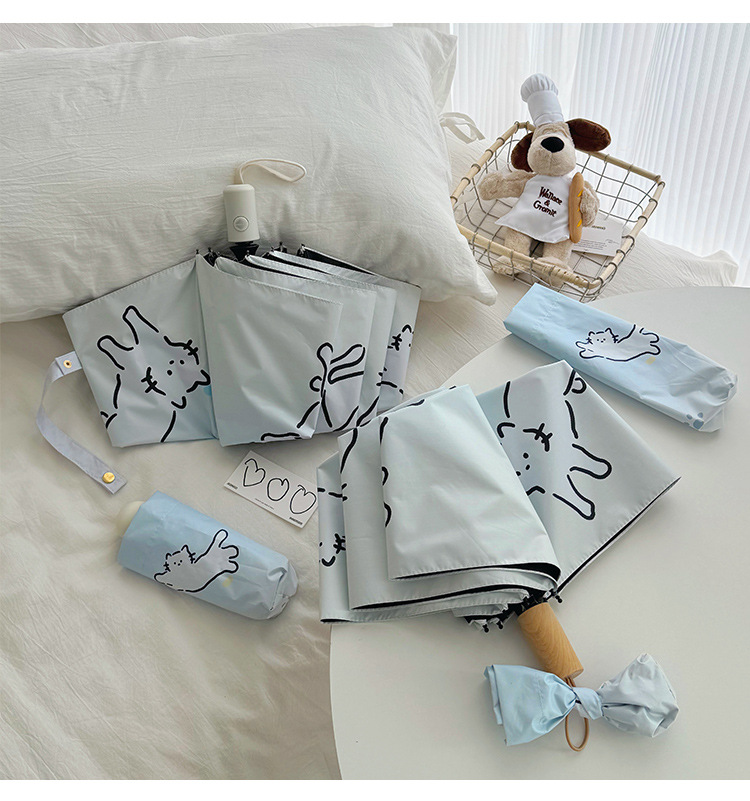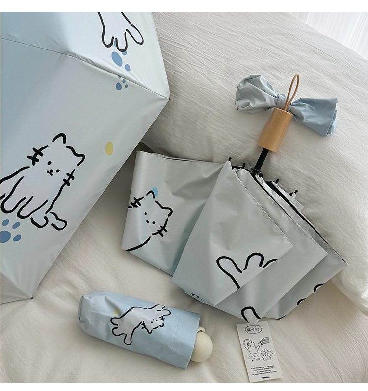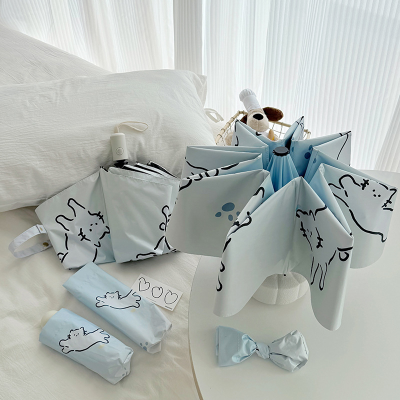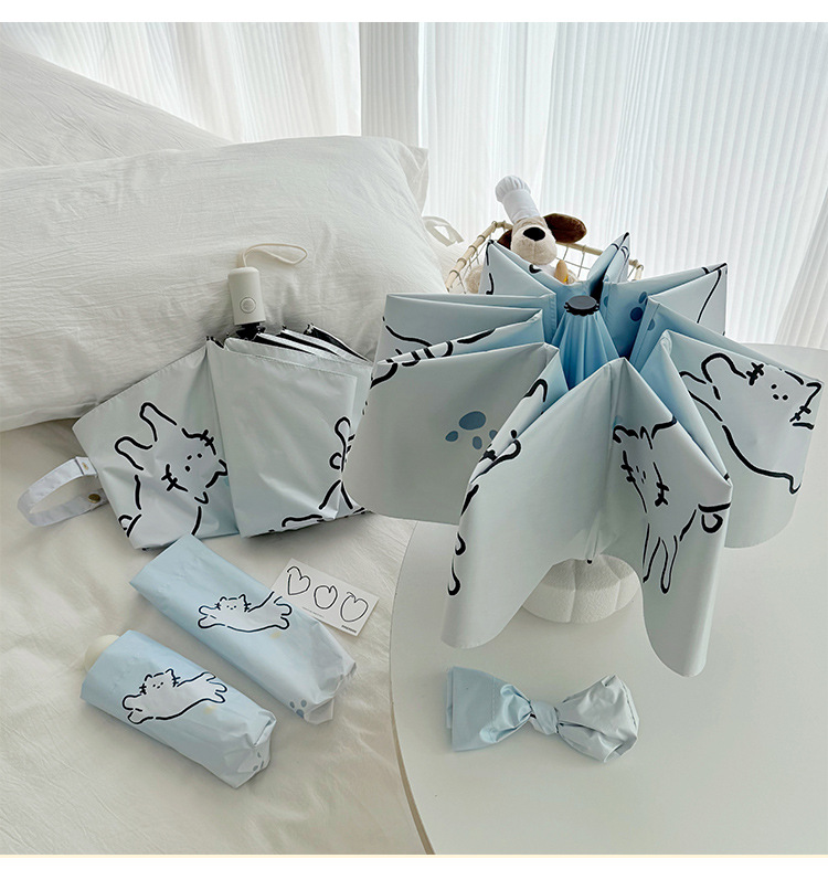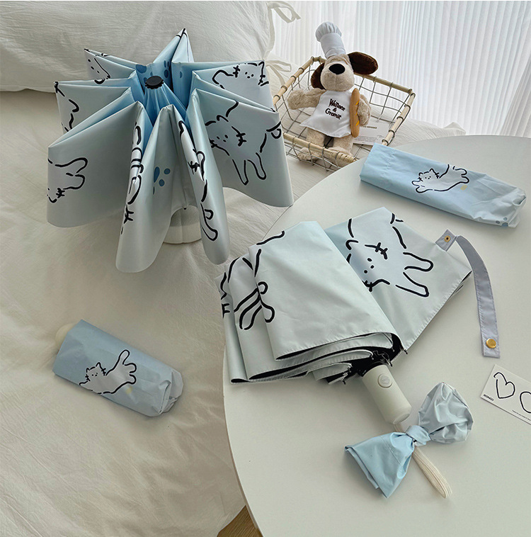 萌趣渐变线条狗迷你伞便携折叠伞手开晴雨伞两用防晒伞学生上学