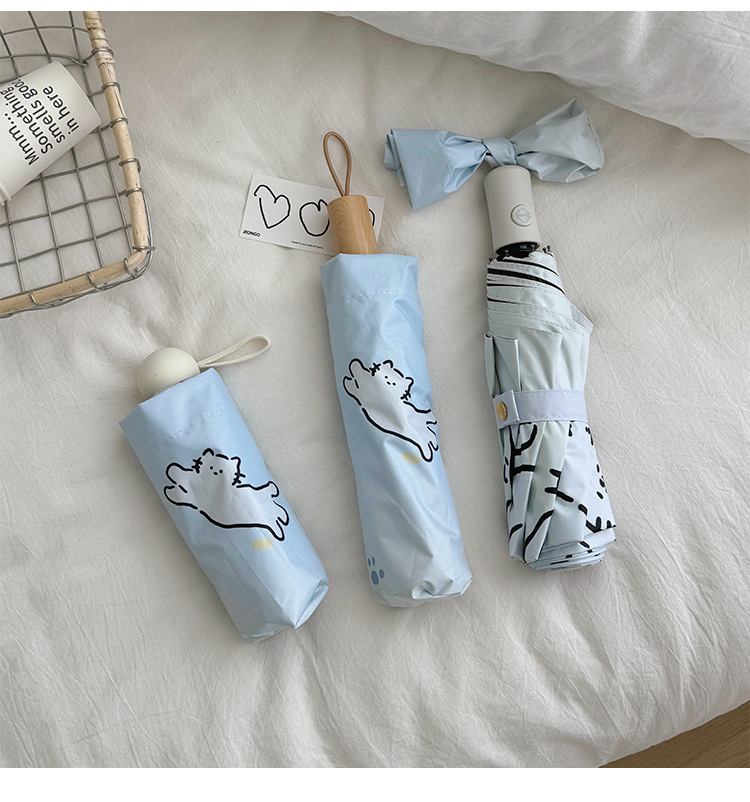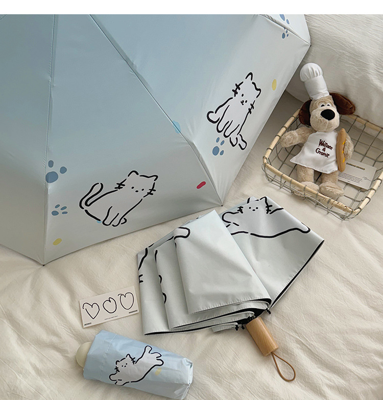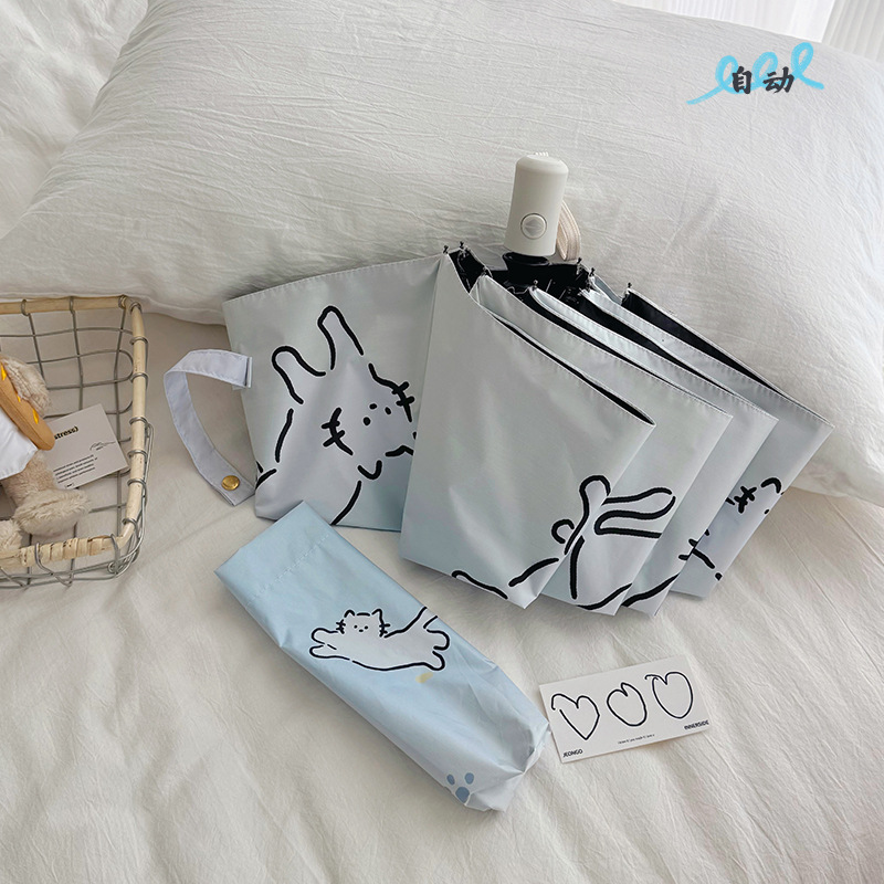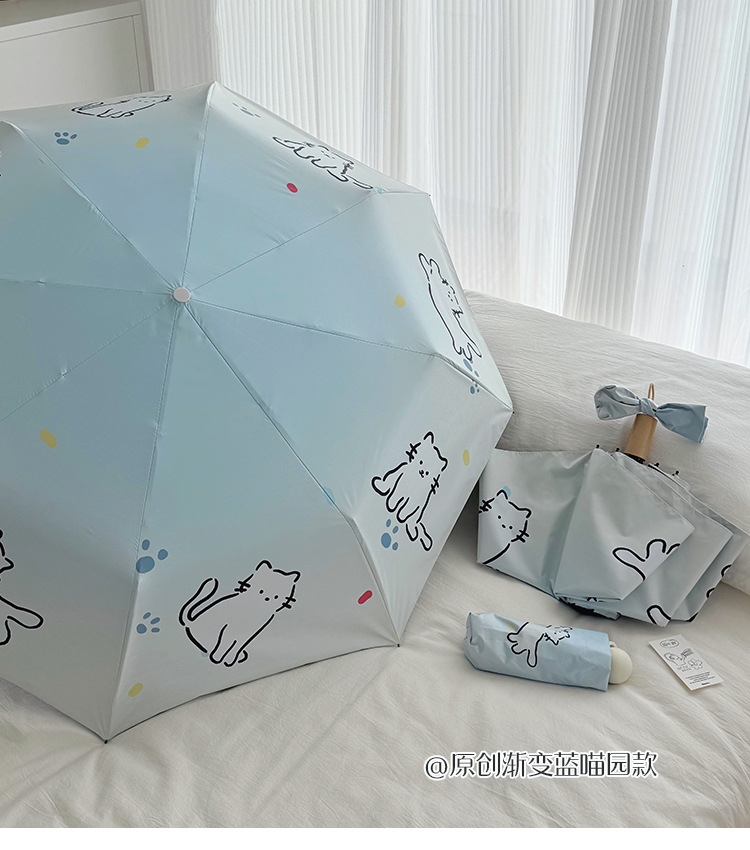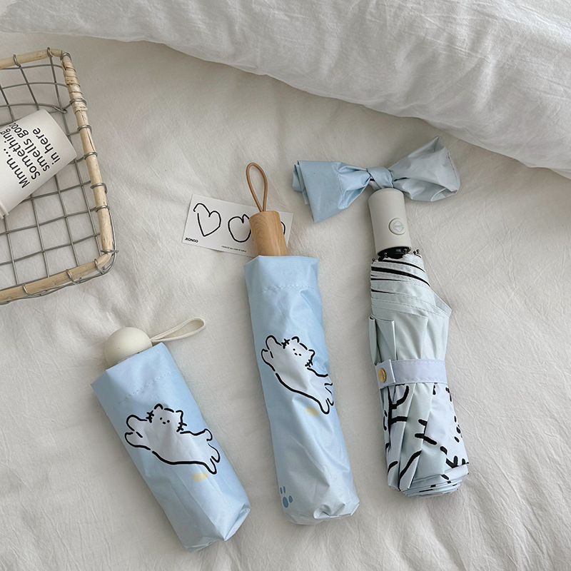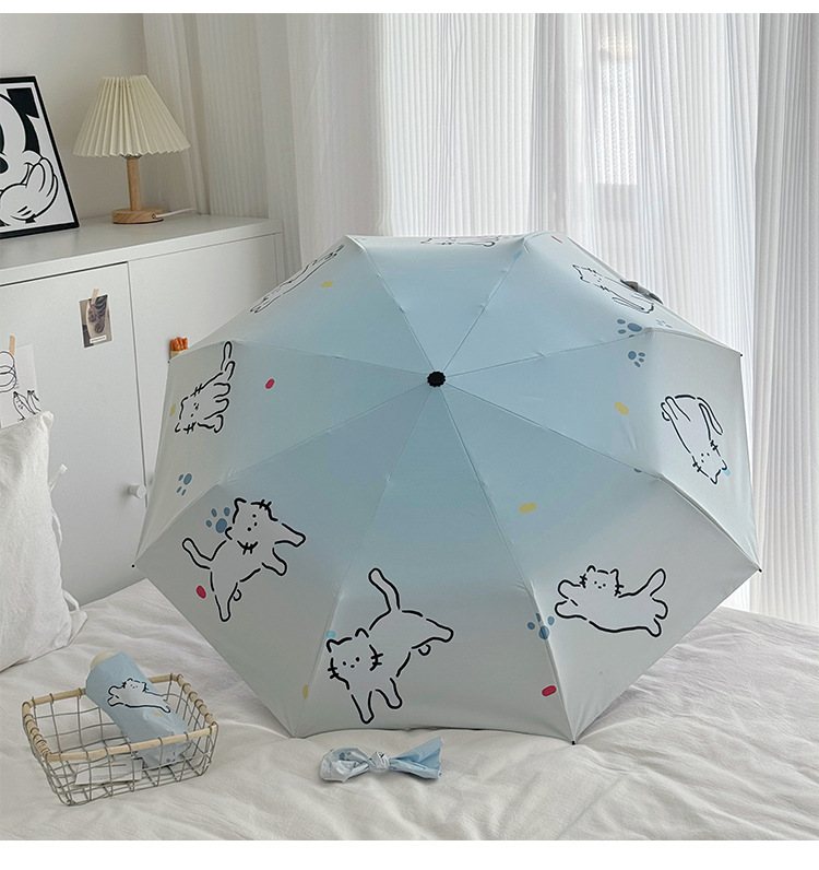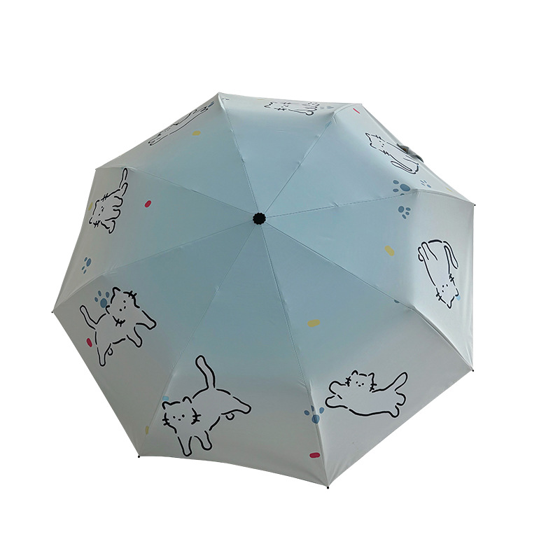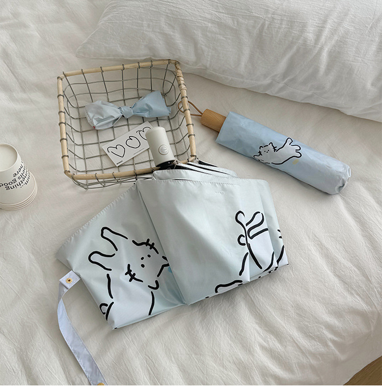 萌趣渐变线条狗迷你伞便携折叠伞手开晴雨伞两用防晒伞学生上学