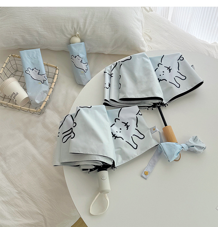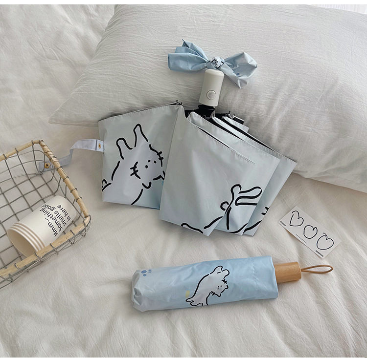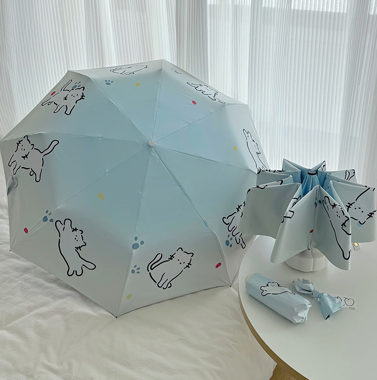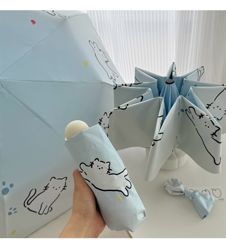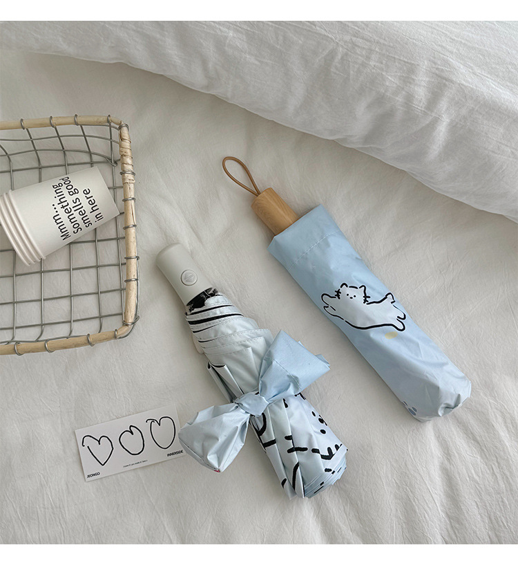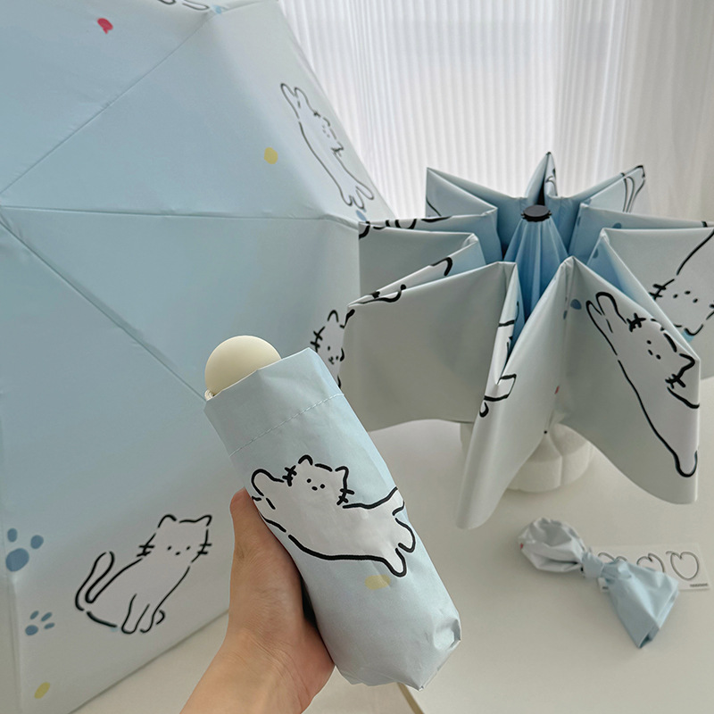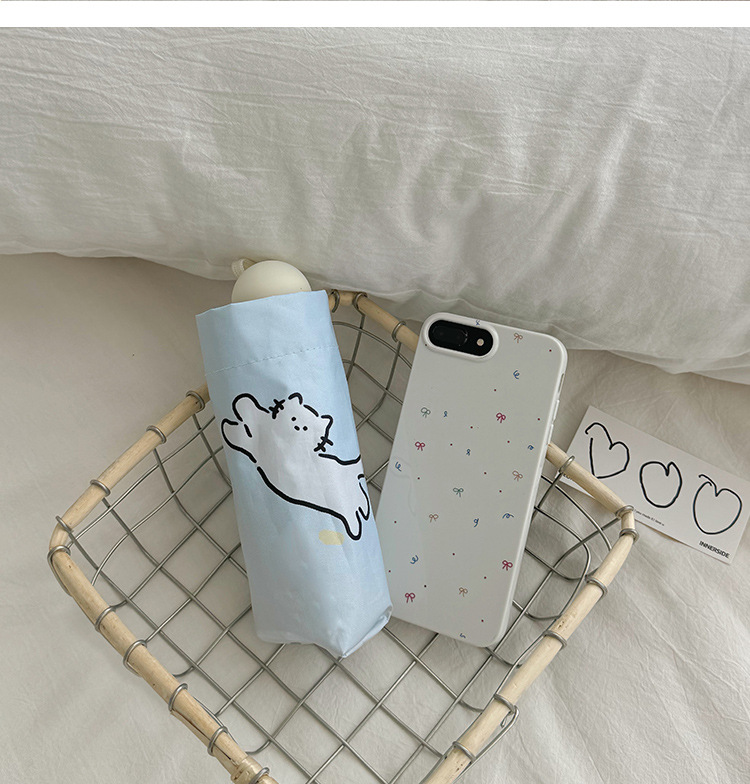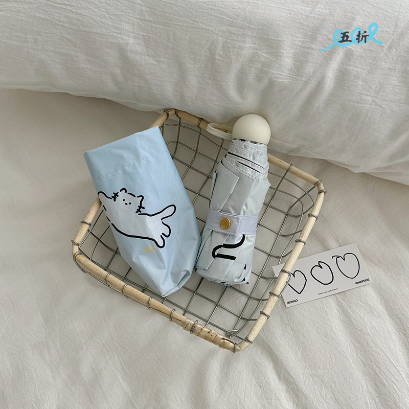 萌趣渐变线条狗迷你伞便携折叠伞手开晴雨伞两用防晒伞学生上学