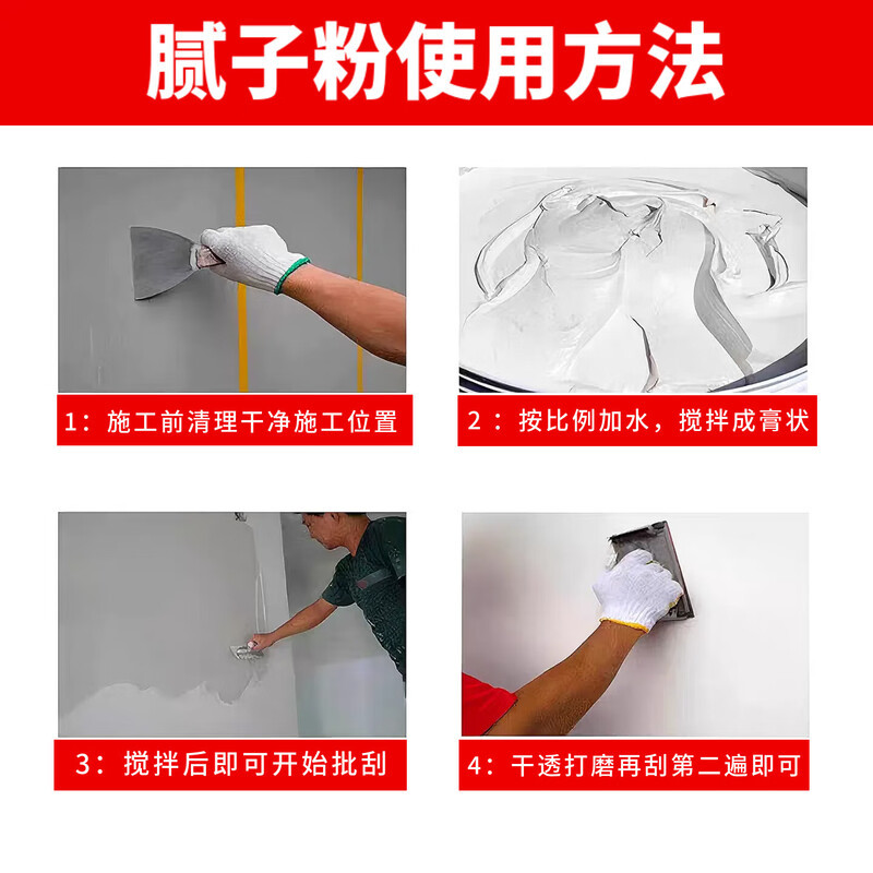 耐水腻子粉家用室内墙面修补净味环保防潮防霉修补找平翻新白色