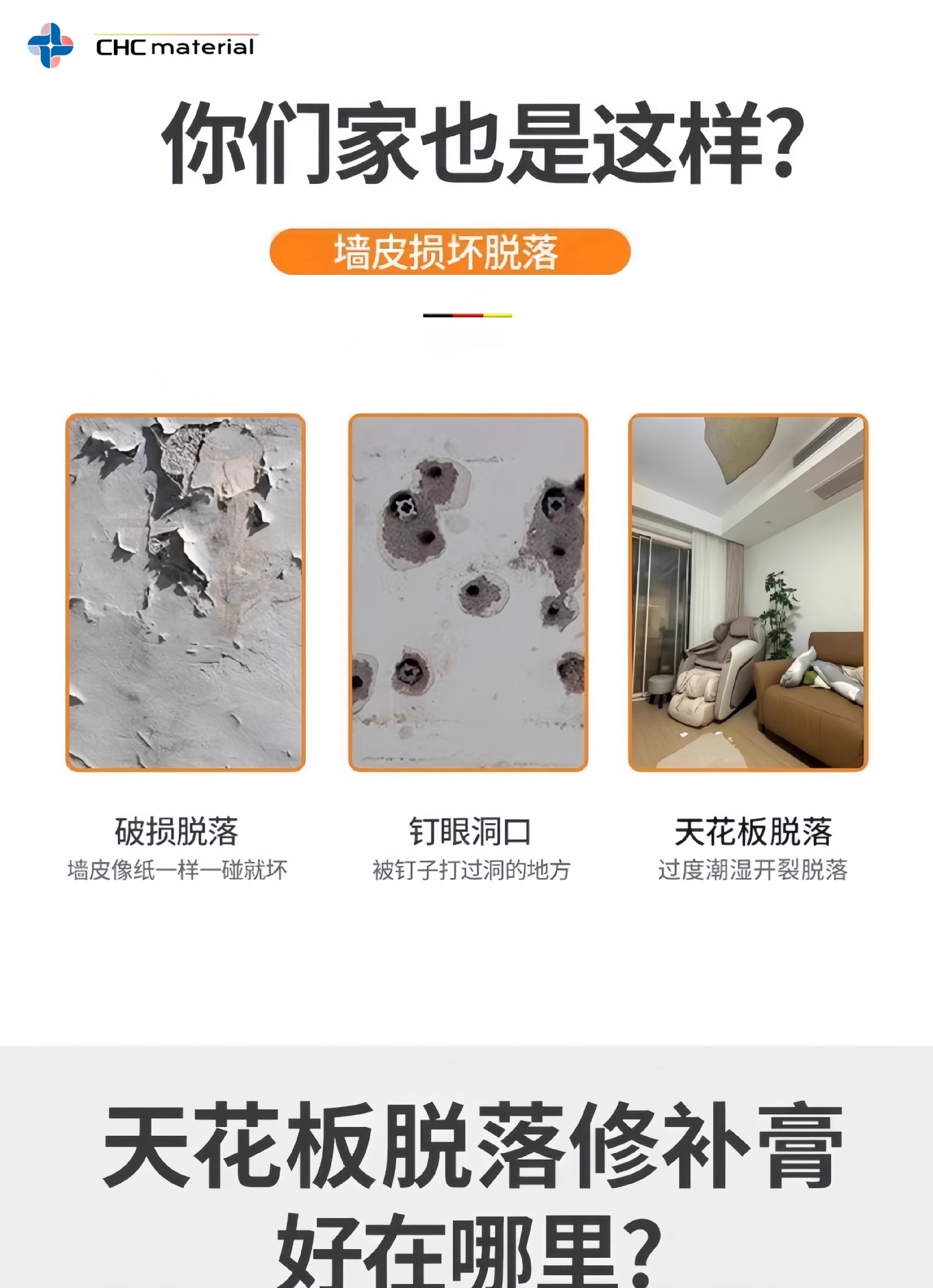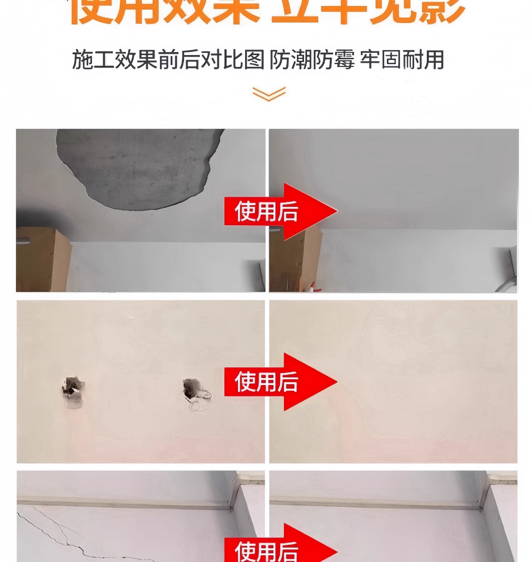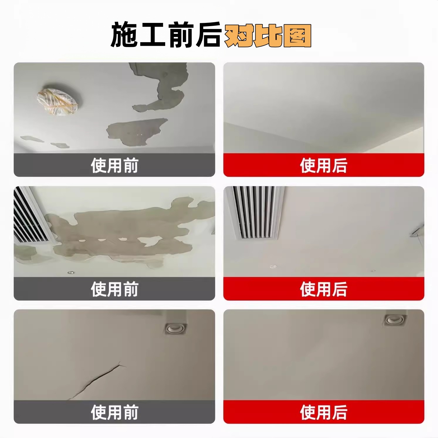 天花板脱落掉皮裂缝修补吊顶腻子白色乳胶漆墙面开裂补墙防水