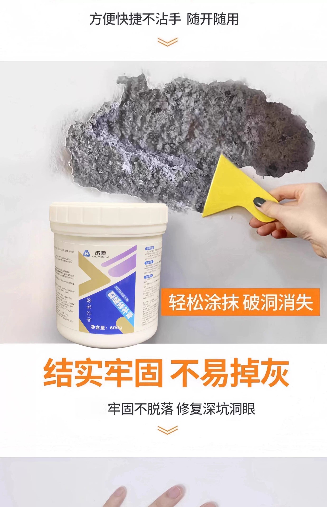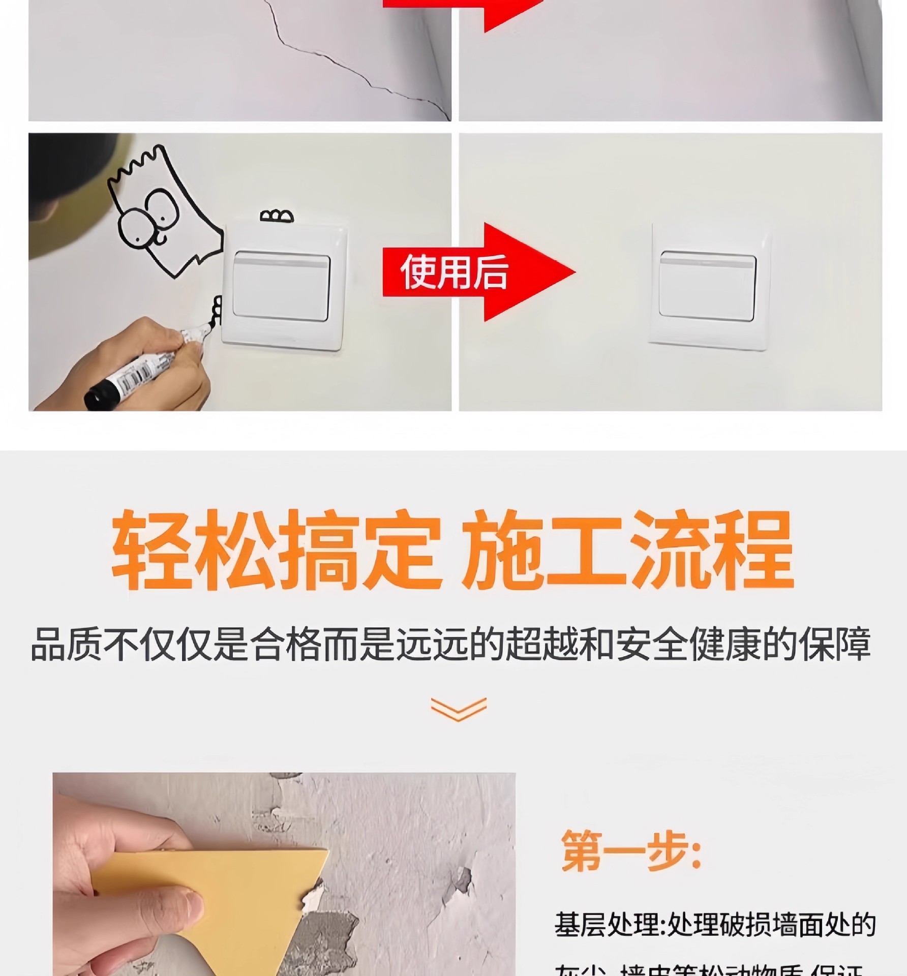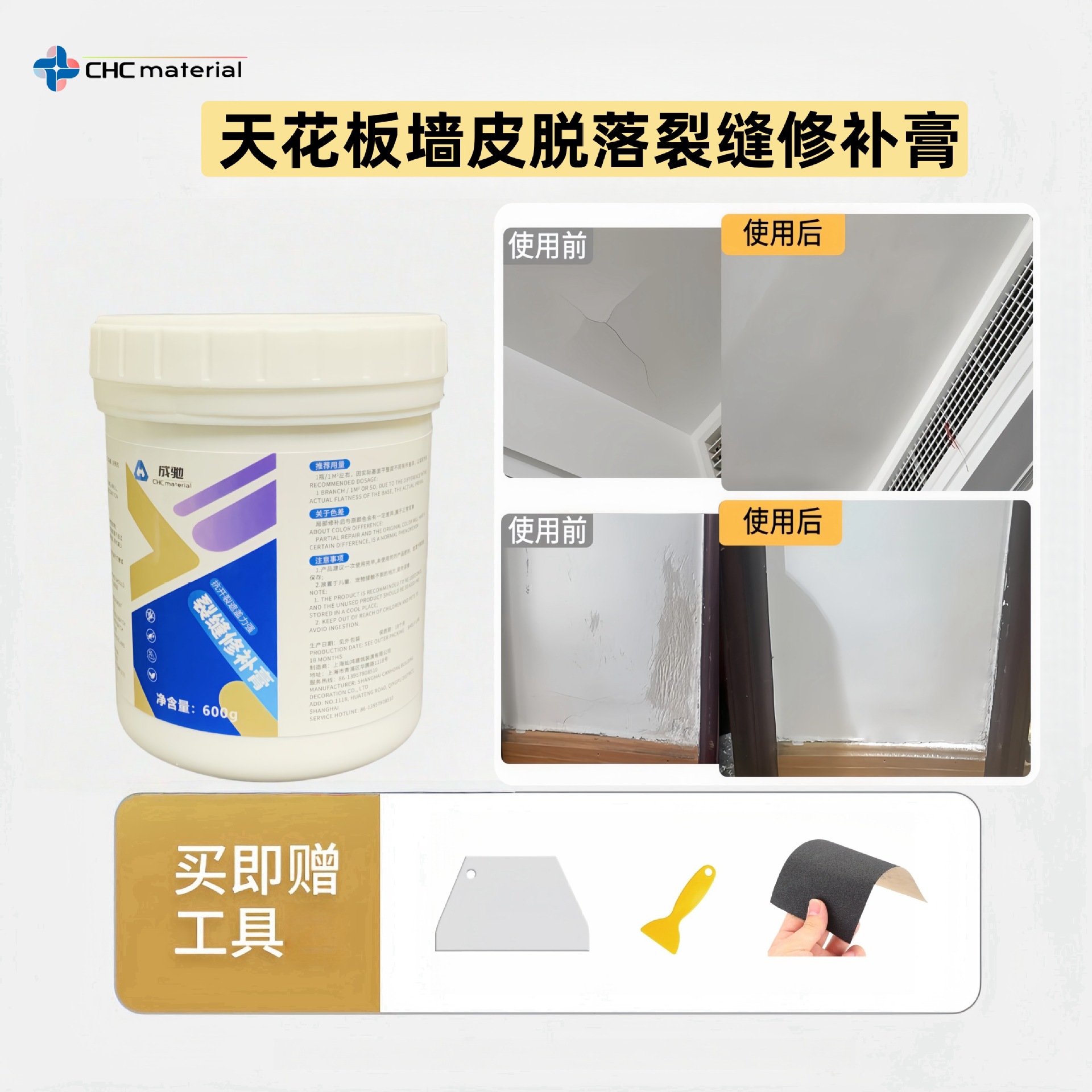 天花板脱落掉皮裂缝修补吊顶腻子白色乳胶漆墙面开裂补墙防水