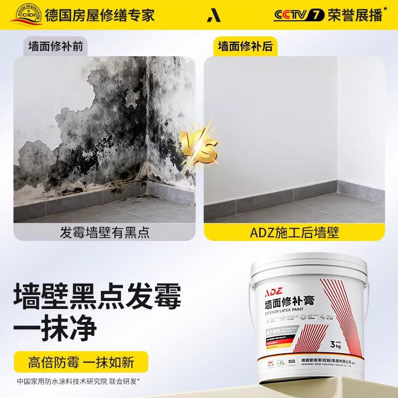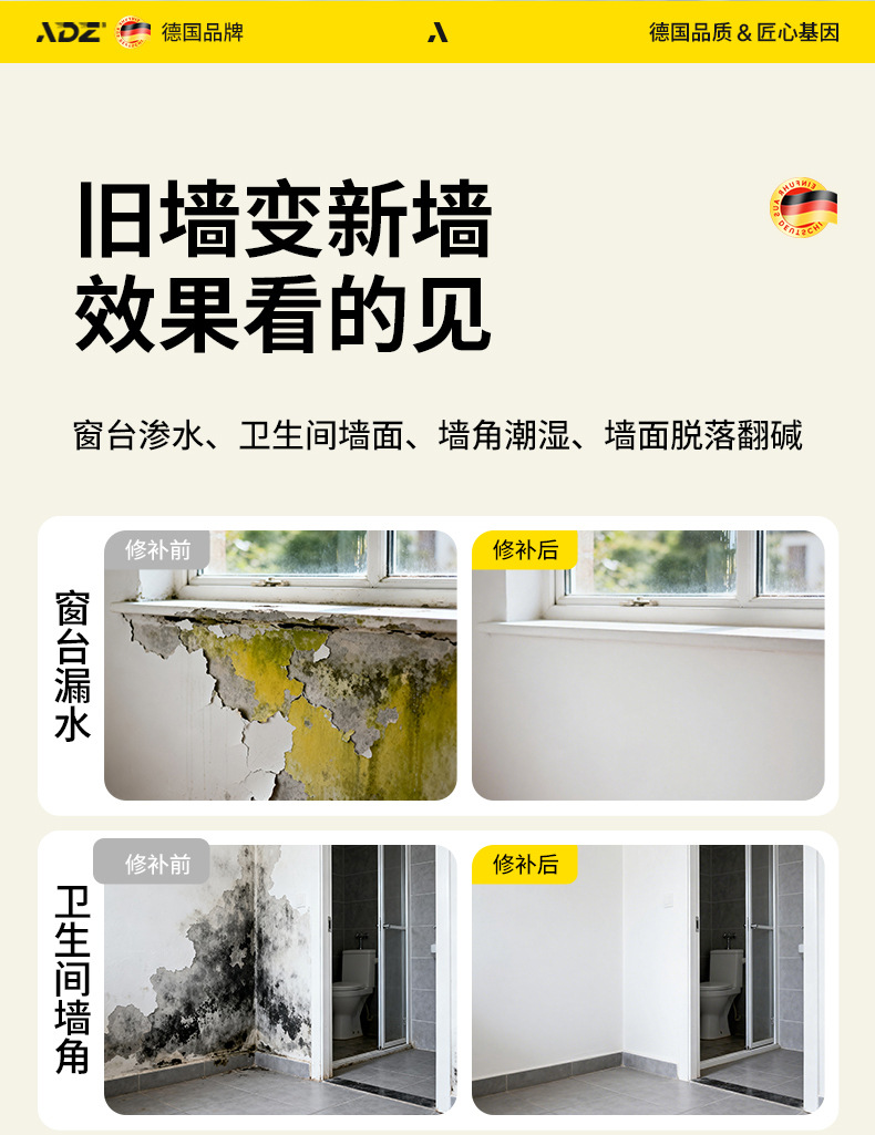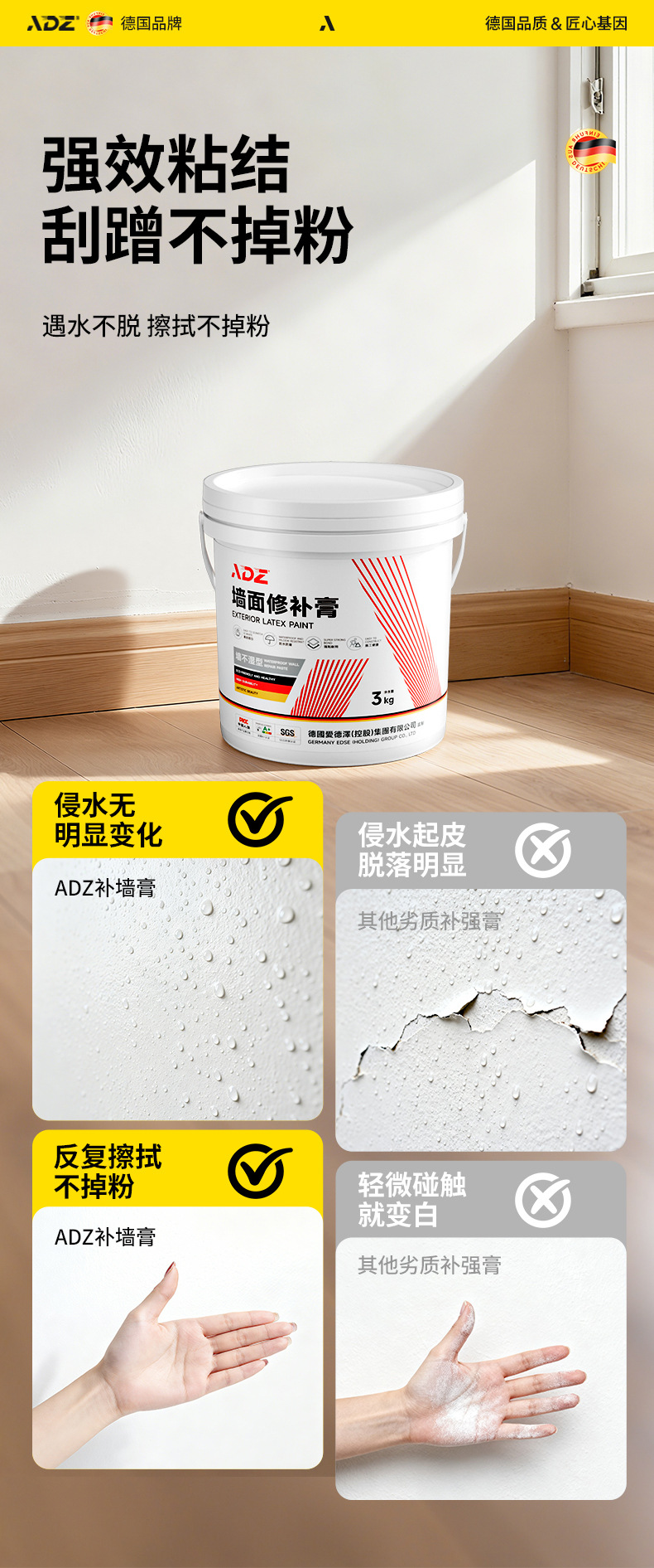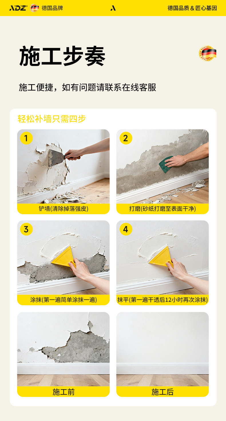 德国天花板补墙膏墙面修补防水白色家用墙面潮湿起皮大白墙腻子漆