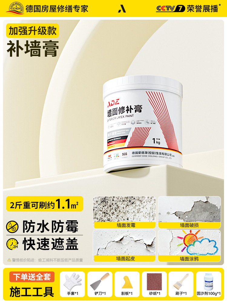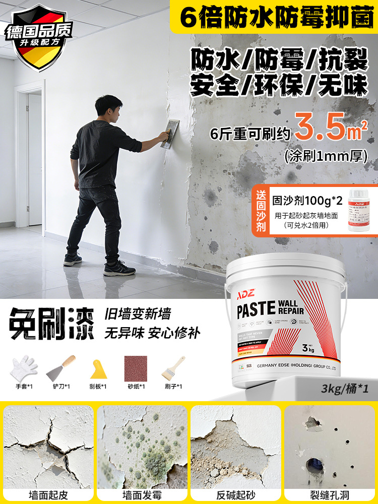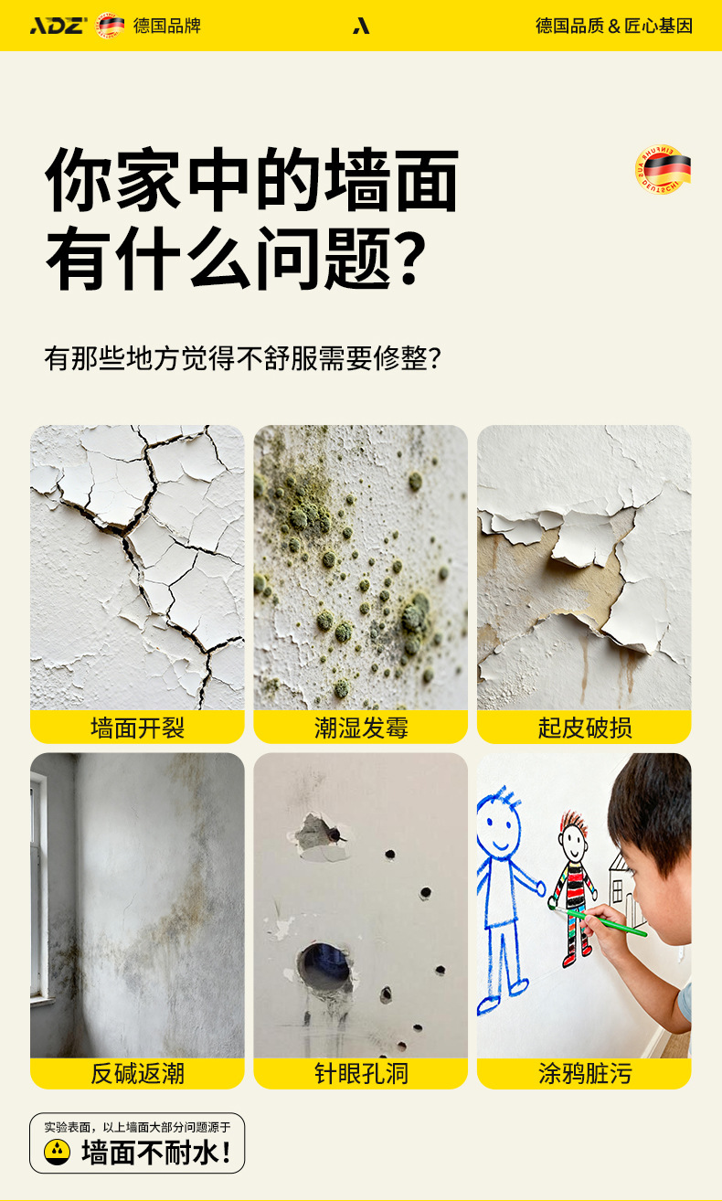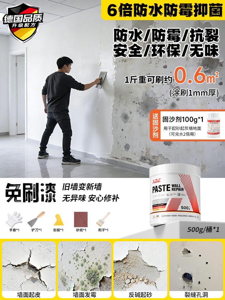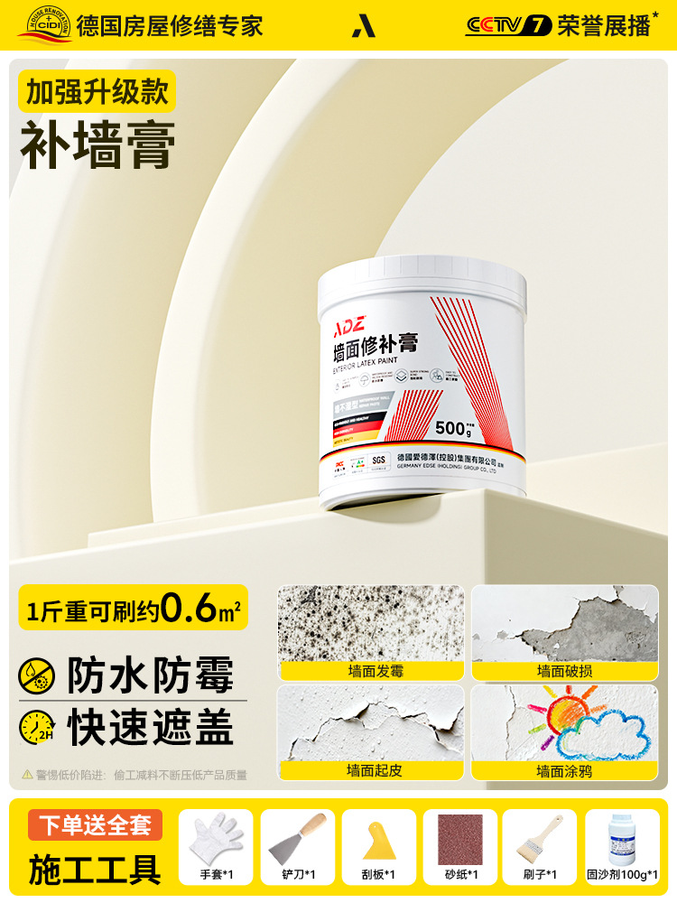 德国天花板补墙膏墙面修补防水白色家用墙面潮湿起皮大白墙腻子漆