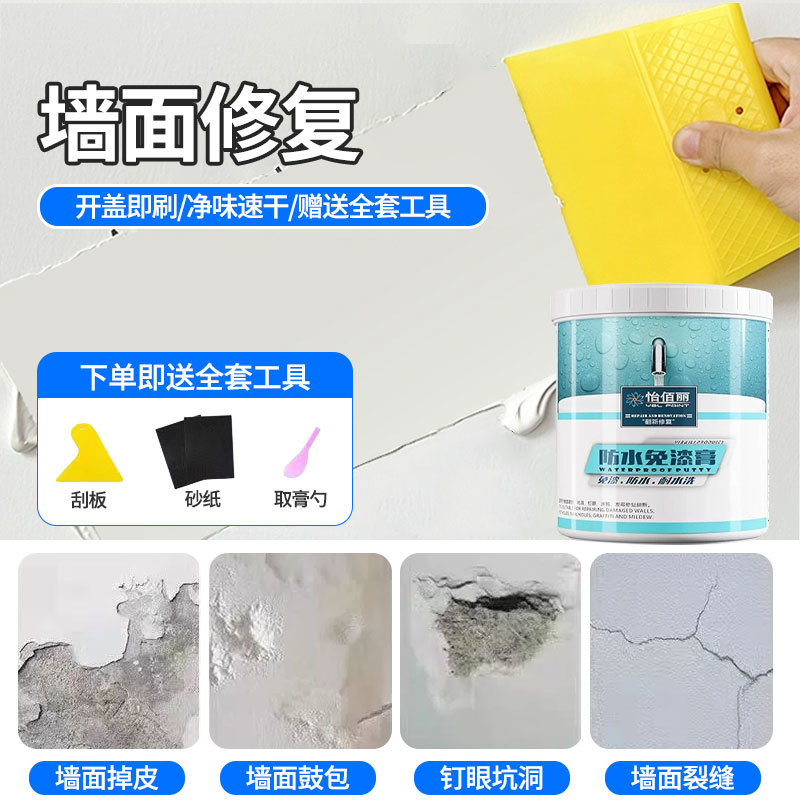 怡佰丽 600克防水补墙膏墙面修补白色防水腻子批墙腻子膏弹性腻子