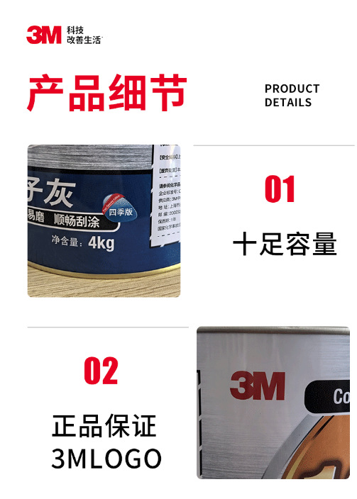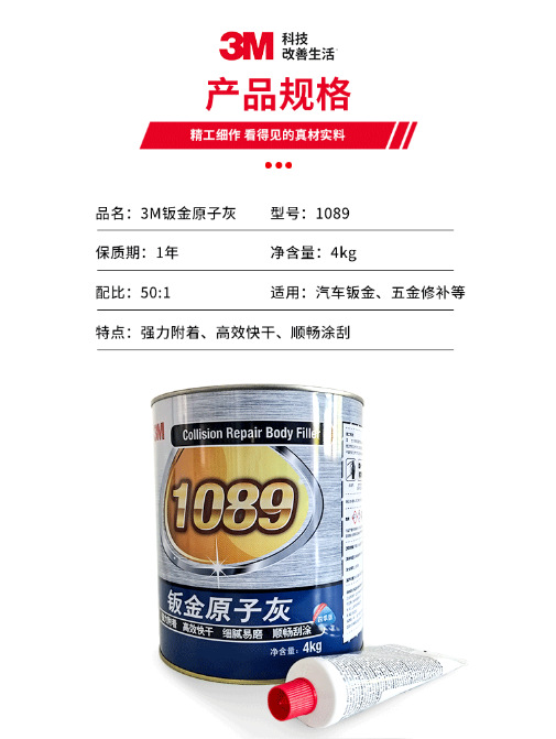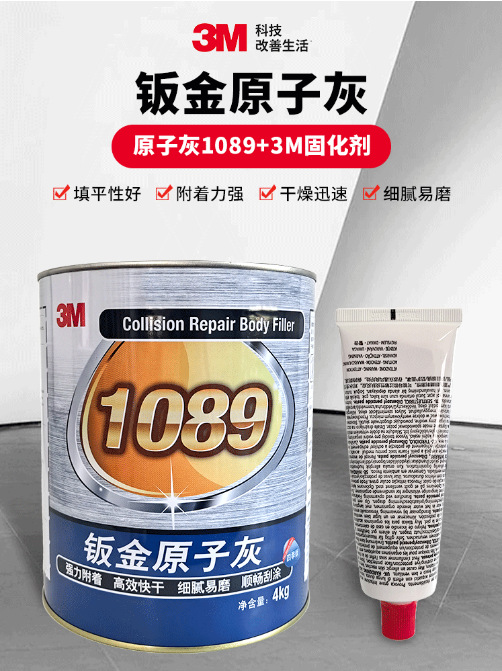 3M 1089钣金灰4kg耐高温金属腻子多功能汽车原子灰易磨快干合金灰
